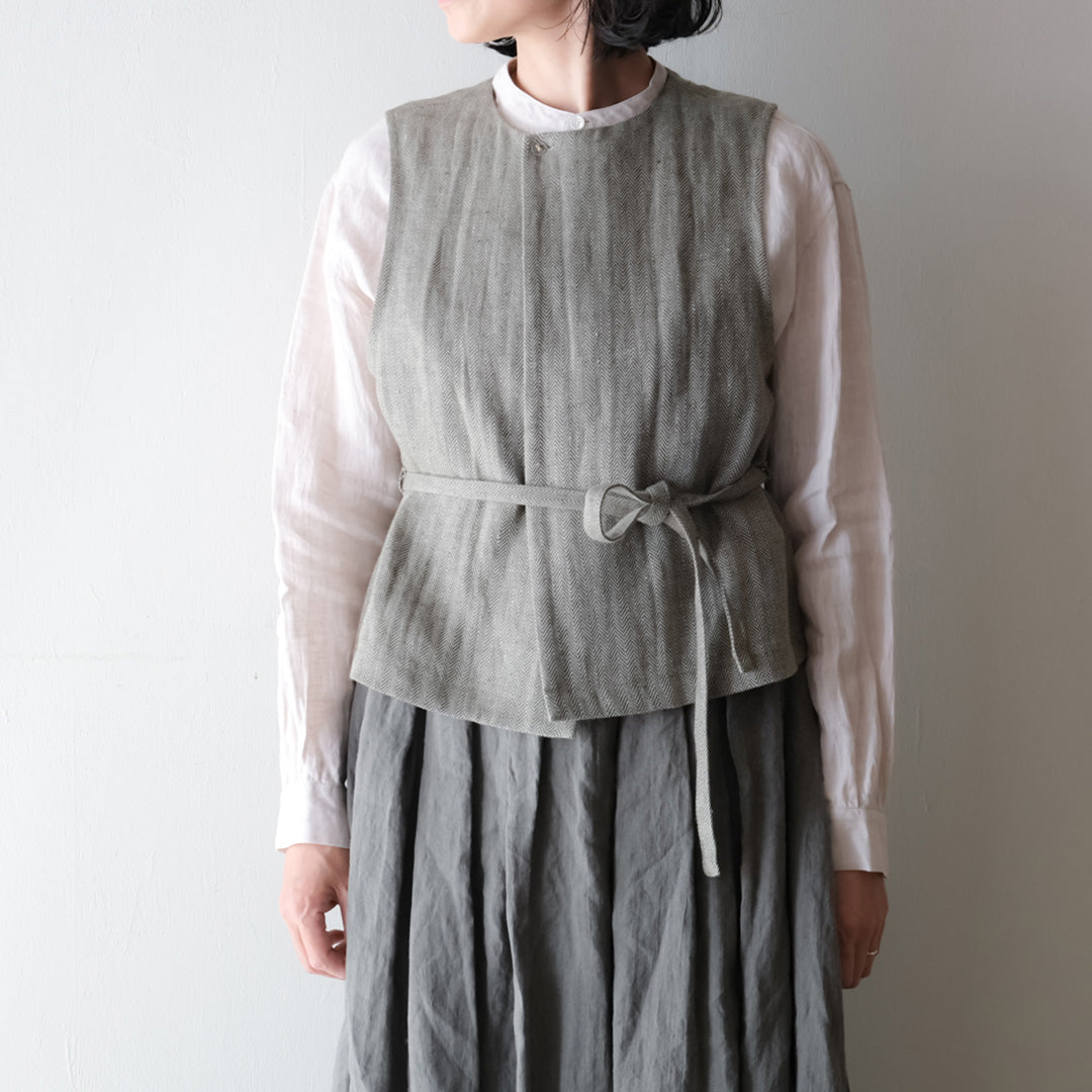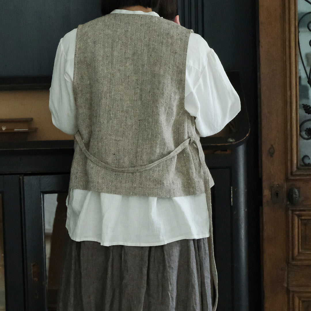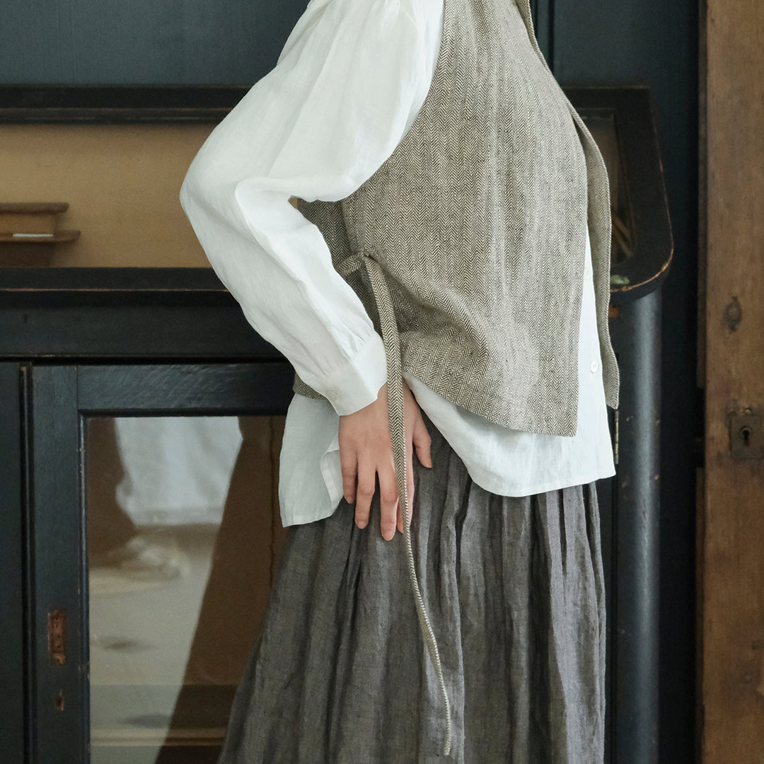 [SALUÉ]ハイウエストジレ/ヘリンボーンリネン