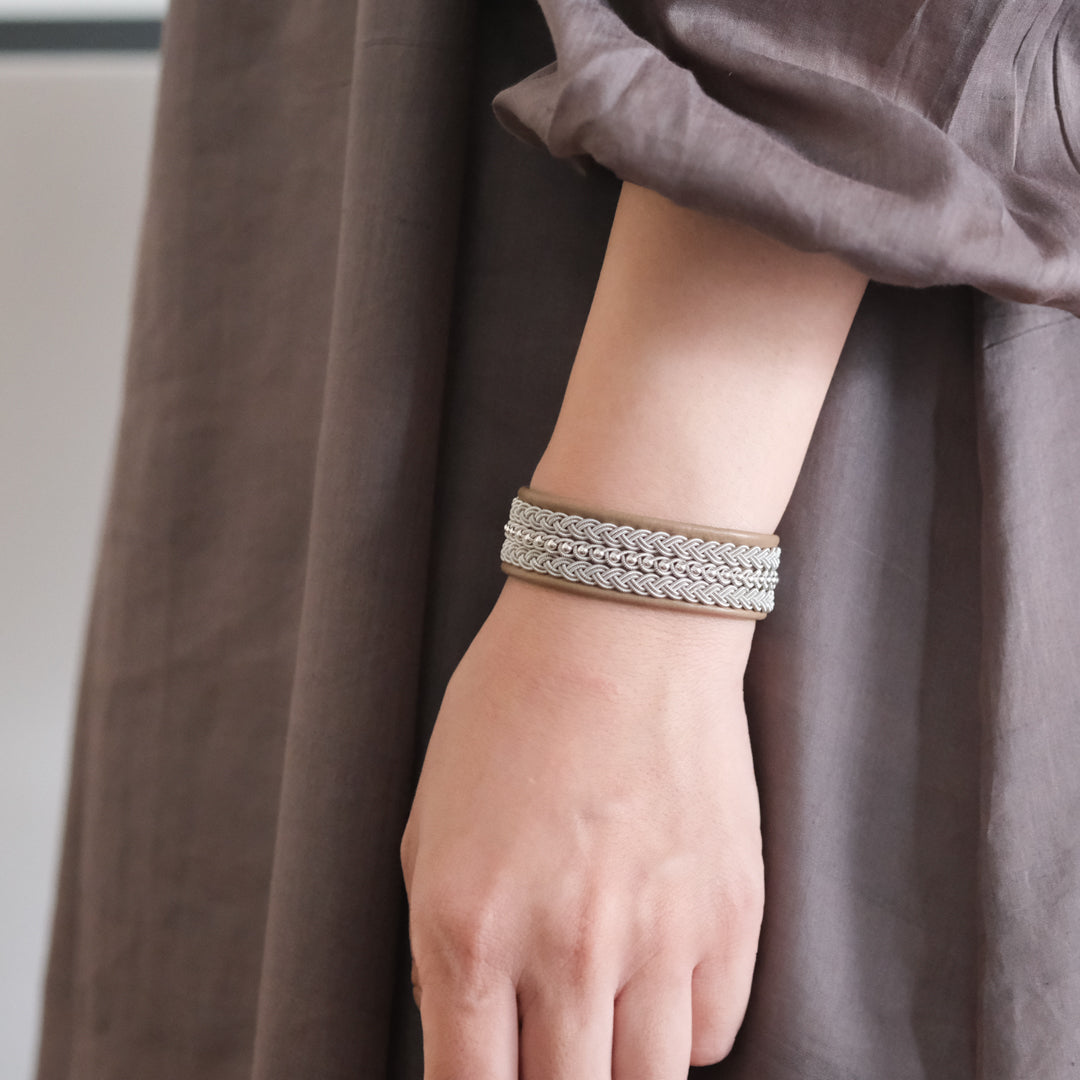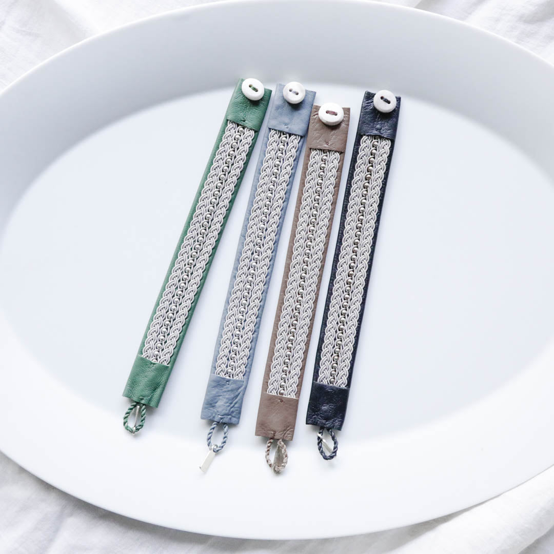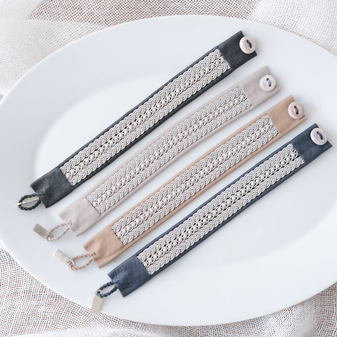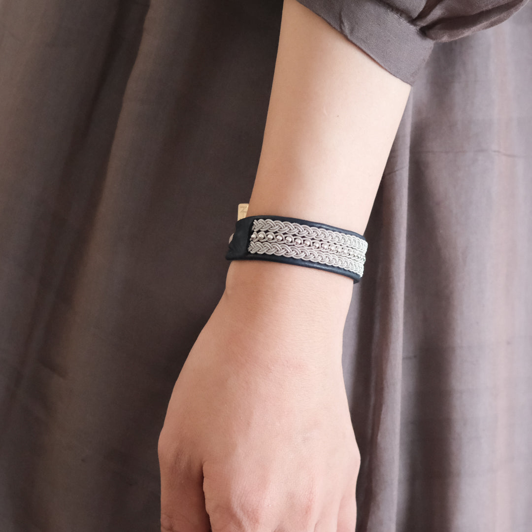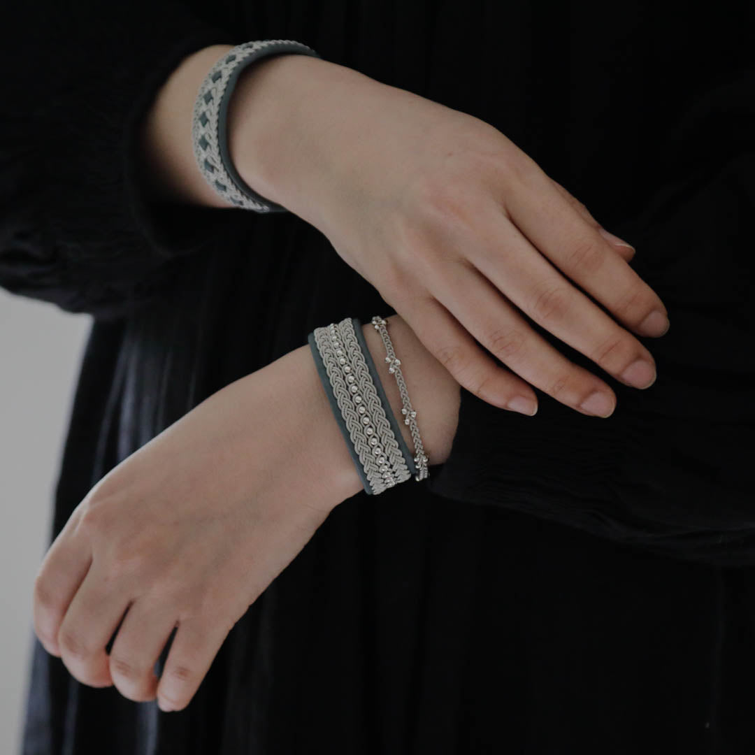 北欧の先住民サーミ族による伝統を取り入れた、YOHEI NOGUCHIのサーミブレスレットをご紹介します。こちらでご紹介するのは3つの編み列にビーズを合わせた華やかなデザインです。