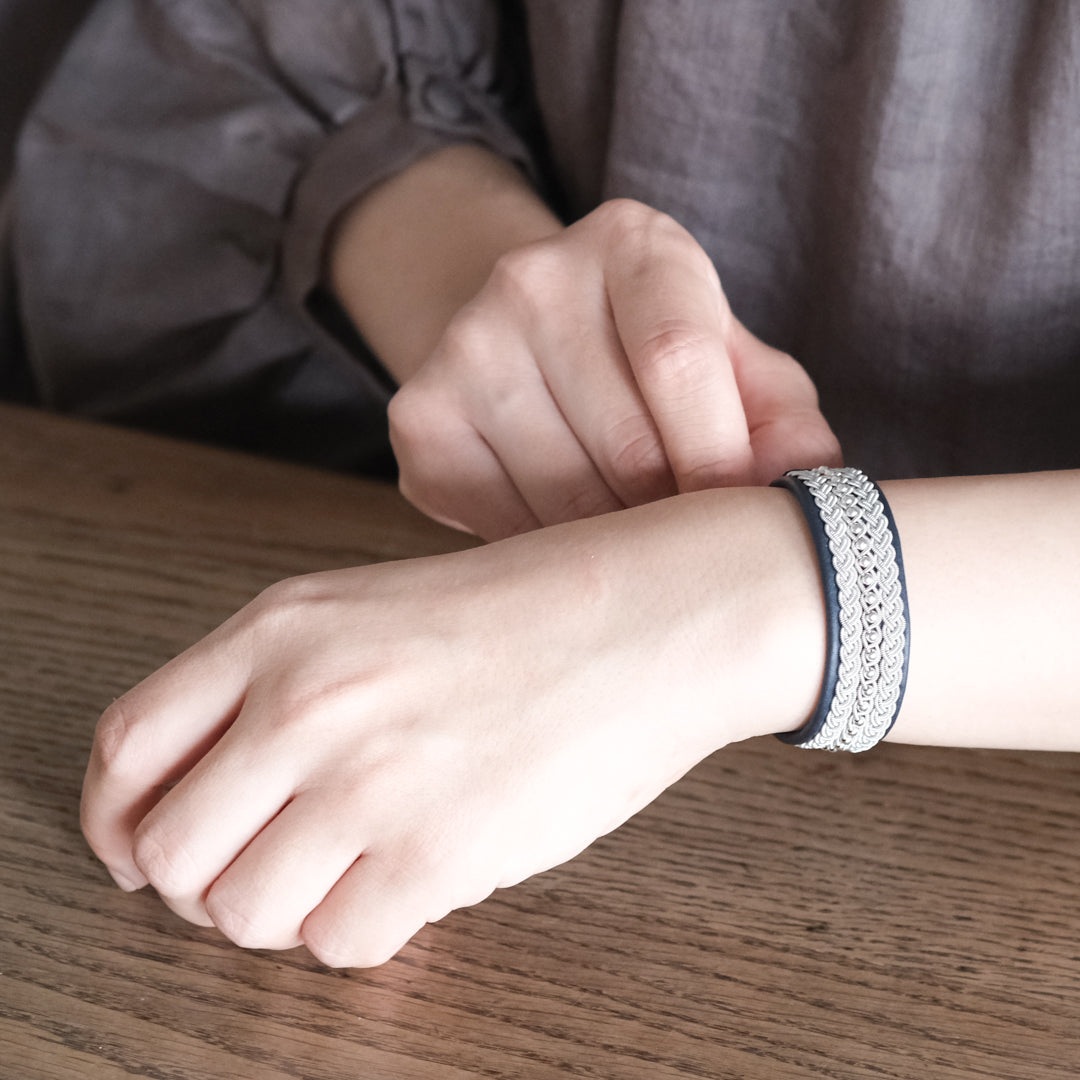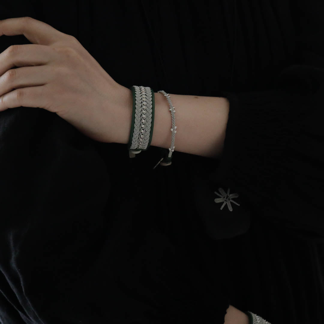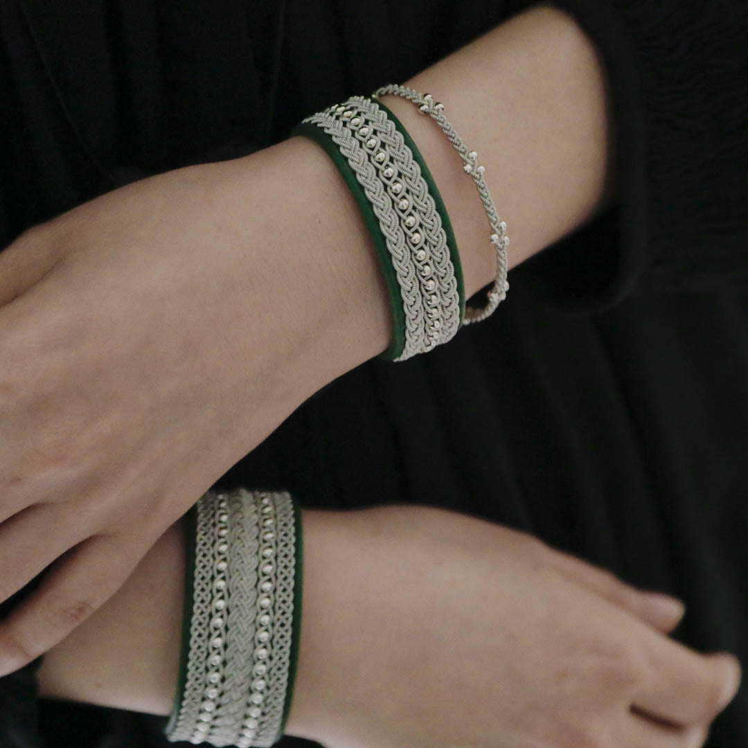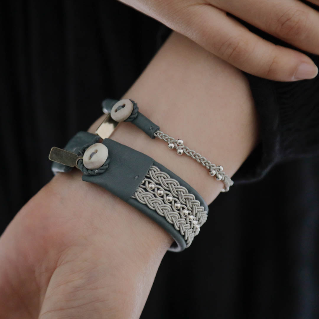 北欧の先住民サーミ族による伝統を取り入れた、YOHEI NOGUCHIのサーミブレスレットをご紹介します。こちらでご紹介するのは3つの編み列にビーズを合わせた華やかなデザインです。