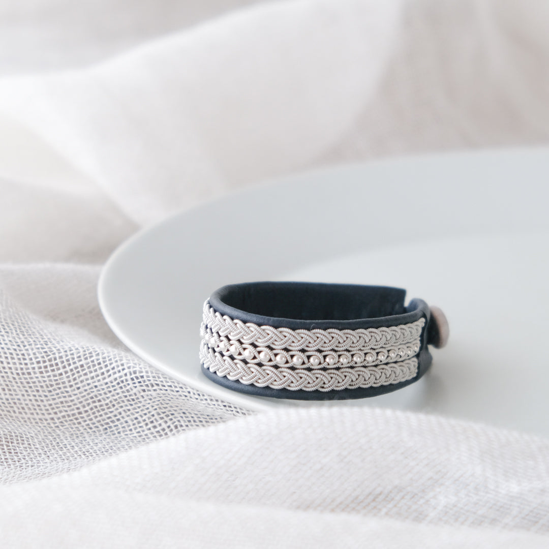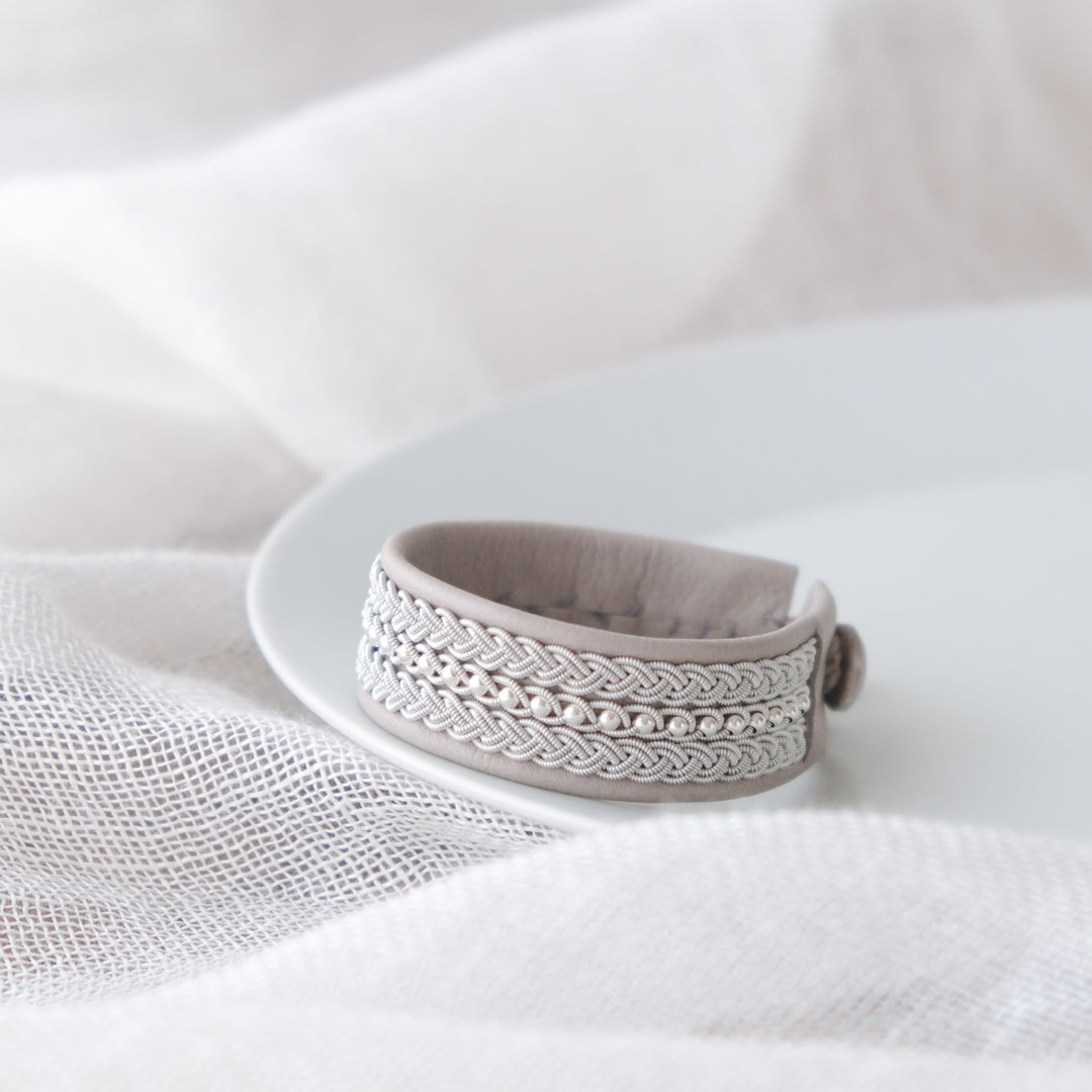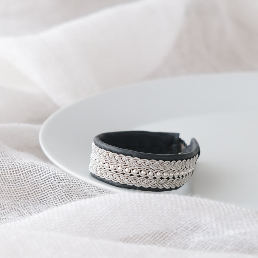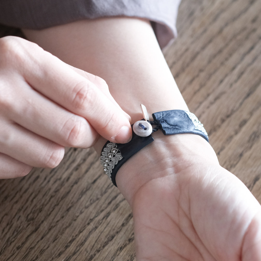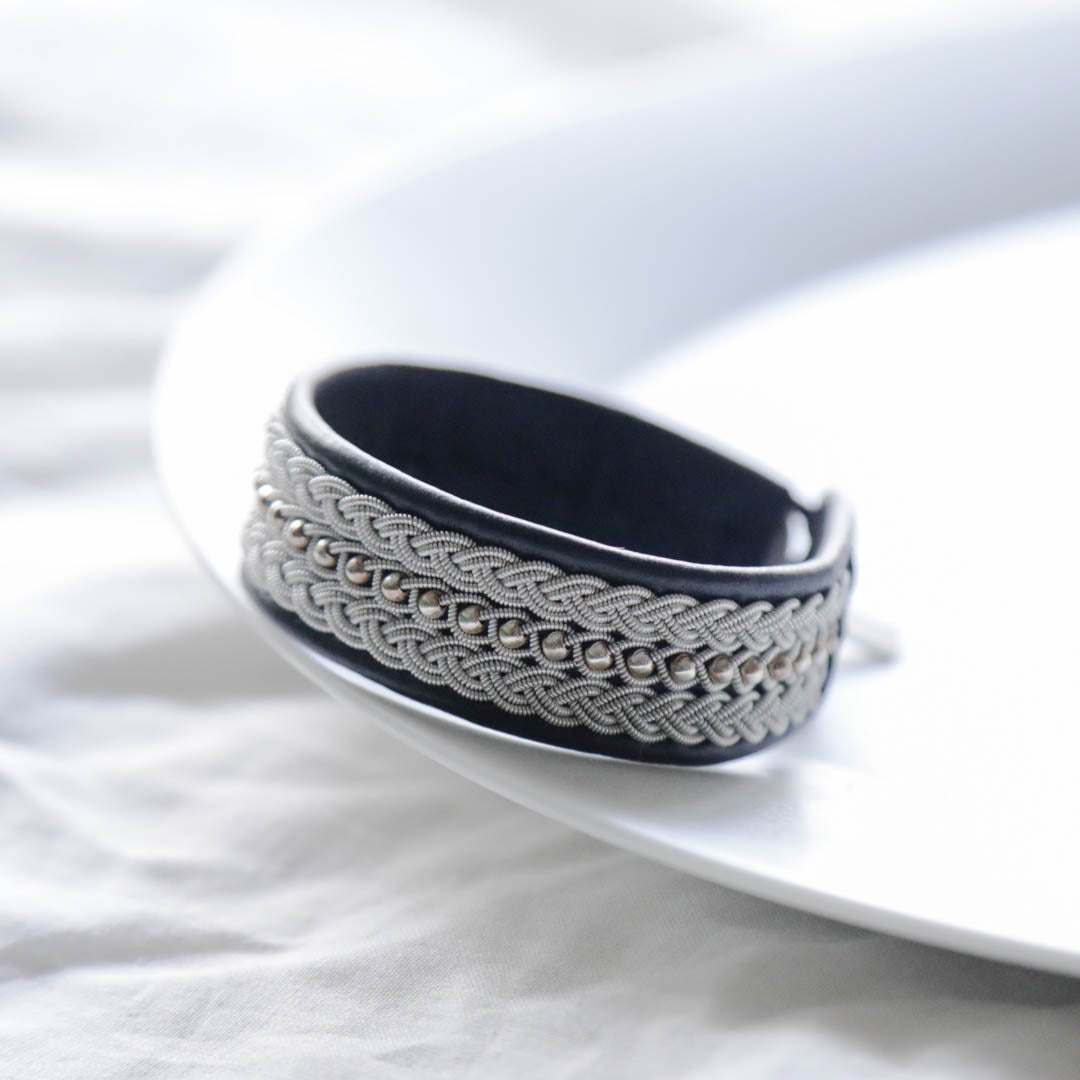 北欧の先住民サーミ族による伝統を取り入れた、YOHEI NOGUCHIのサーミブレスレットをご紹介します。こちらでご紹介するのは3つの編み列にビーズを合わせた華やかなデザインです。