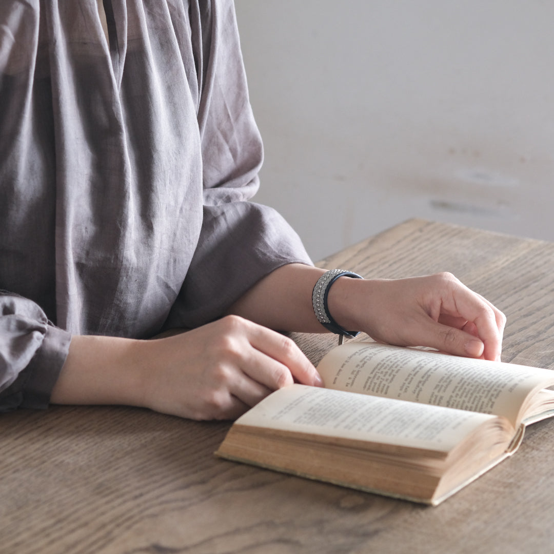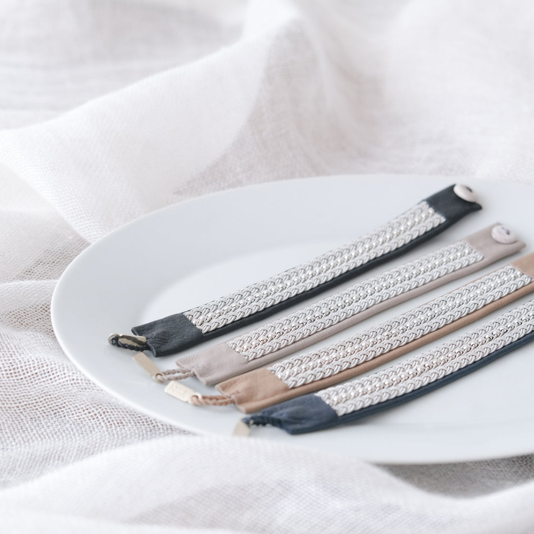 野口さんのおすすめは革の色を揃えること。重ね付けをしたり、左右につけたりその日の装いに合わせておしゃれをお楽しみください。
