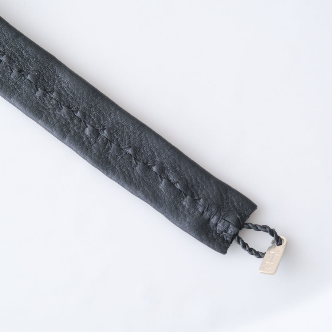 留め具部分に使われているトナカイの革は、使いはじめからやわらか。しっとりと肌になじみます。経年変化していくのでその様子もお楽しみください。