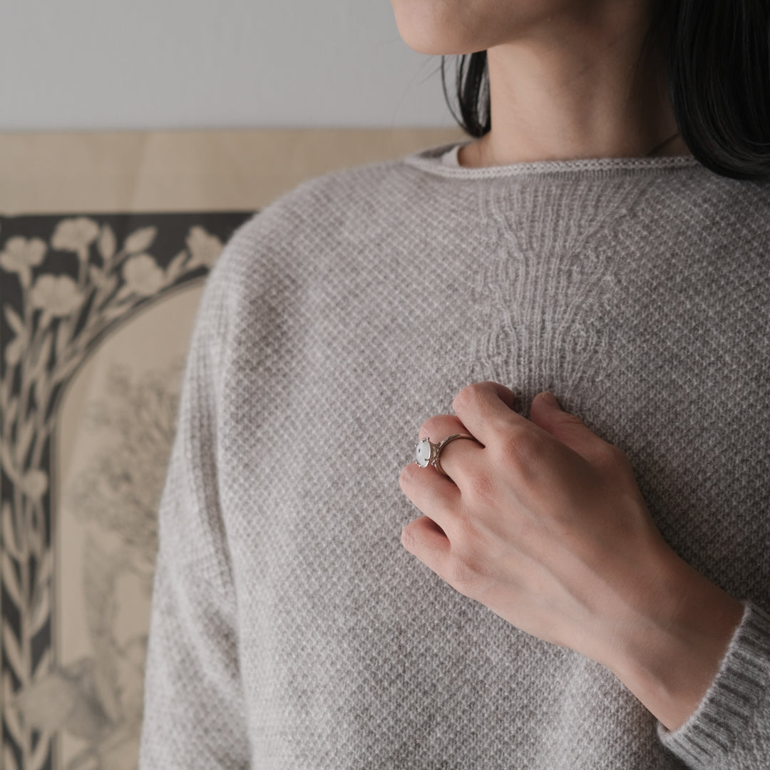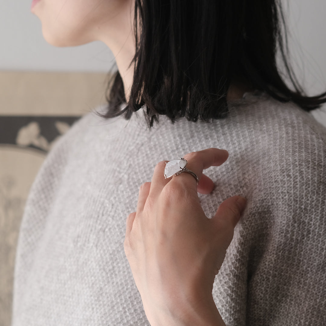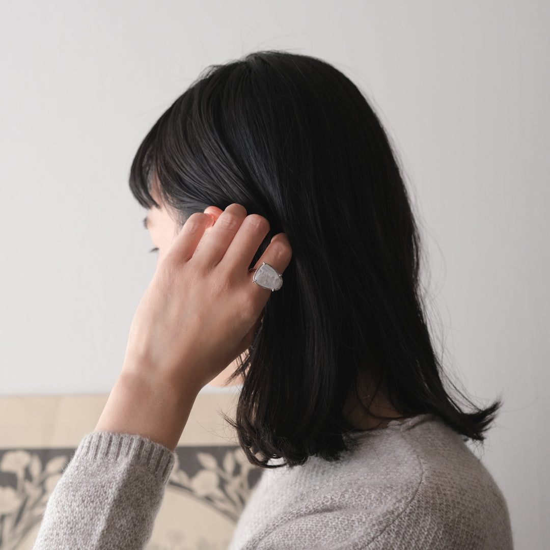 「どの角度から見た時に、石が美しくみえるのか」装身具LCFのものづくりは、石との対話からはじまります。手元に華を添える1点ものの指輪をご紹介します。