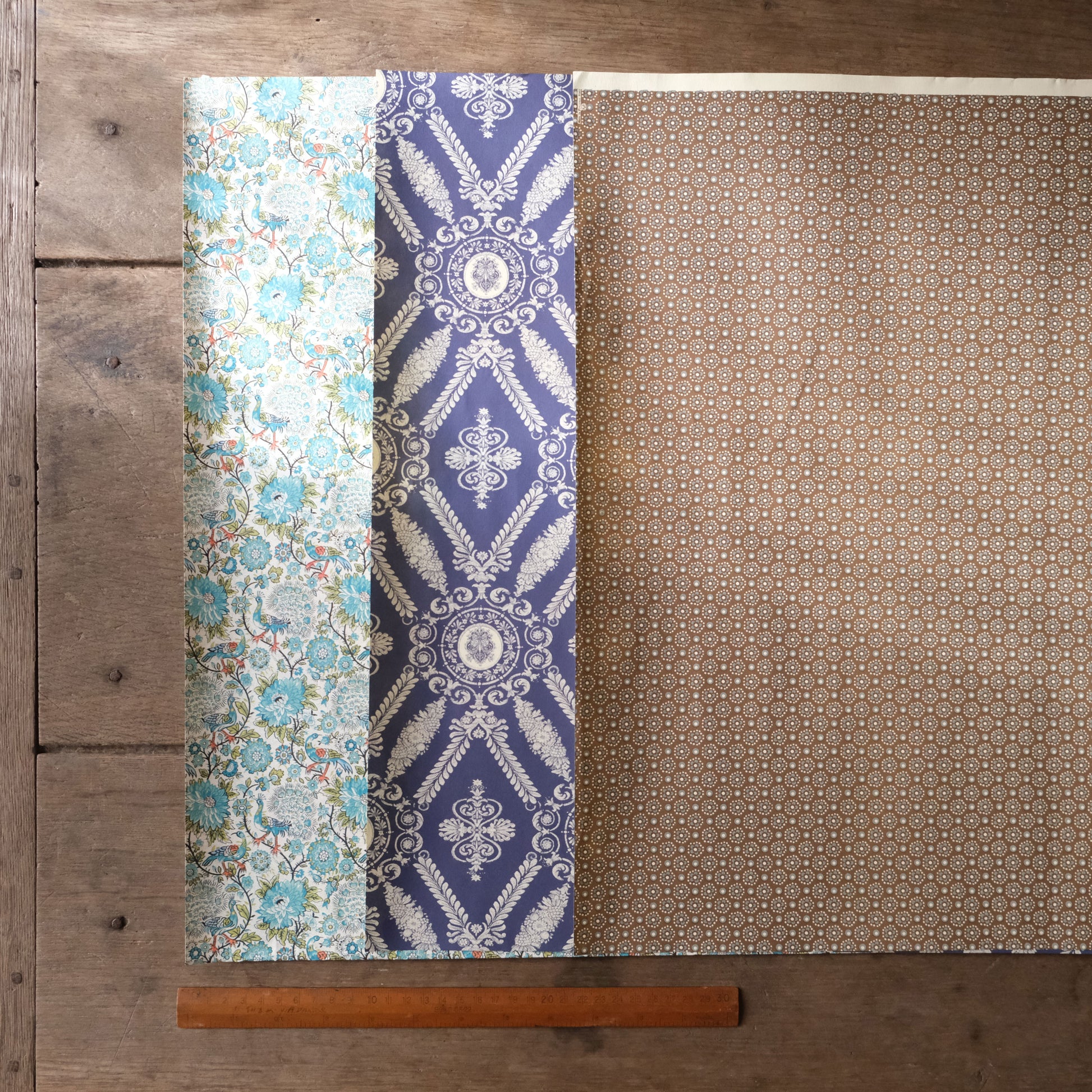 繊細な点描の草花に合わさる優美なユリの紋章の柄