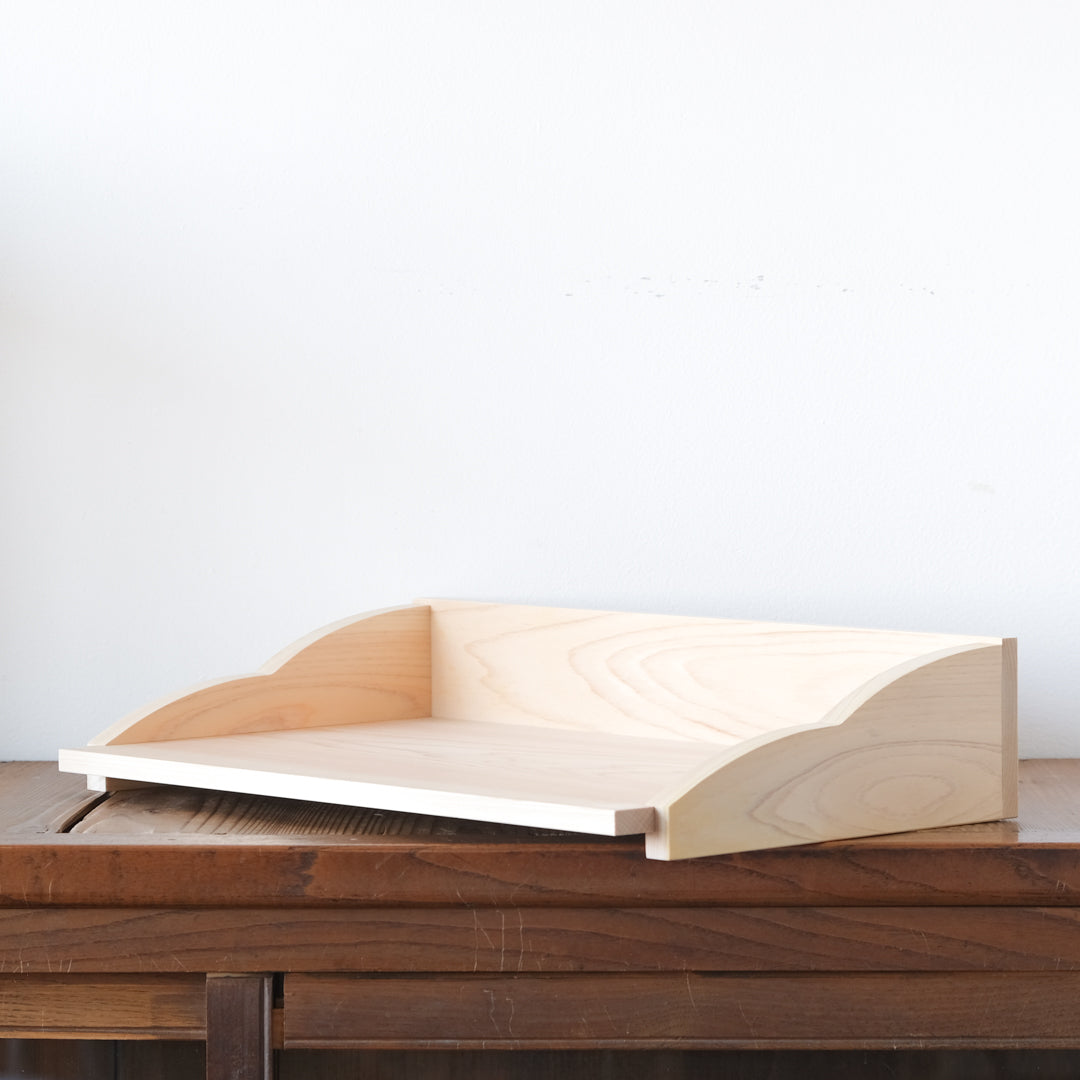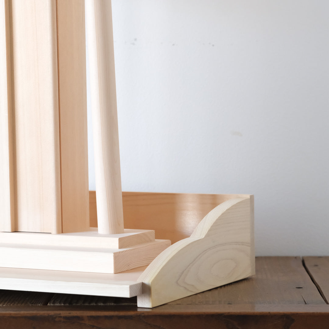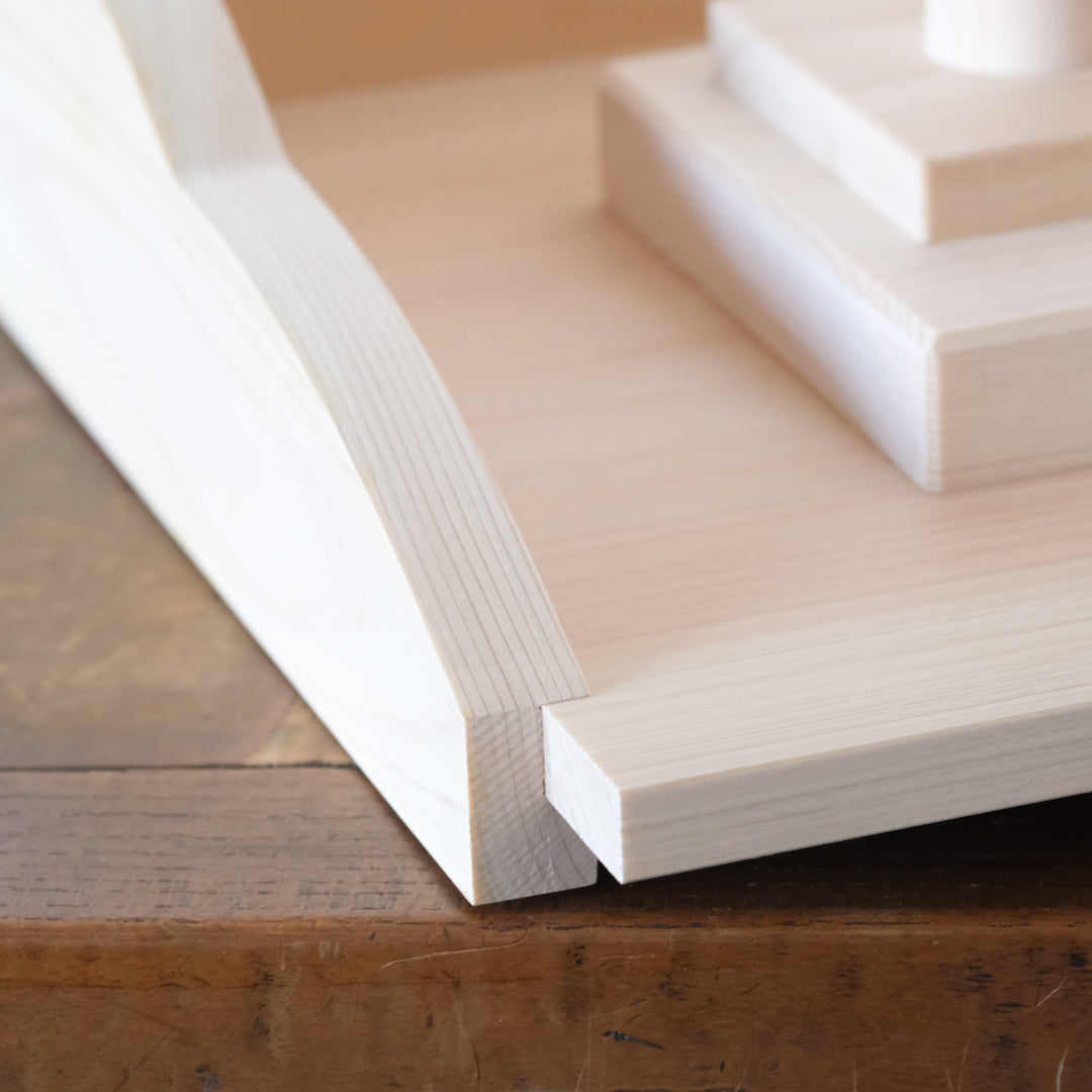 woodpeckerの置き型神棚「GIRIDO」用の棚板。なめらかで美しい木肌の国産ひのきを素材に、岐阜県の工房で宮大工がつくっています。