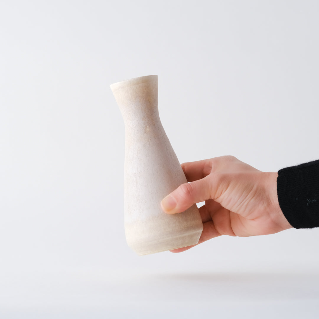 大久保りささんがつくるカラフェ型の花器。すっと上に伸びる凛としたフォルムです。