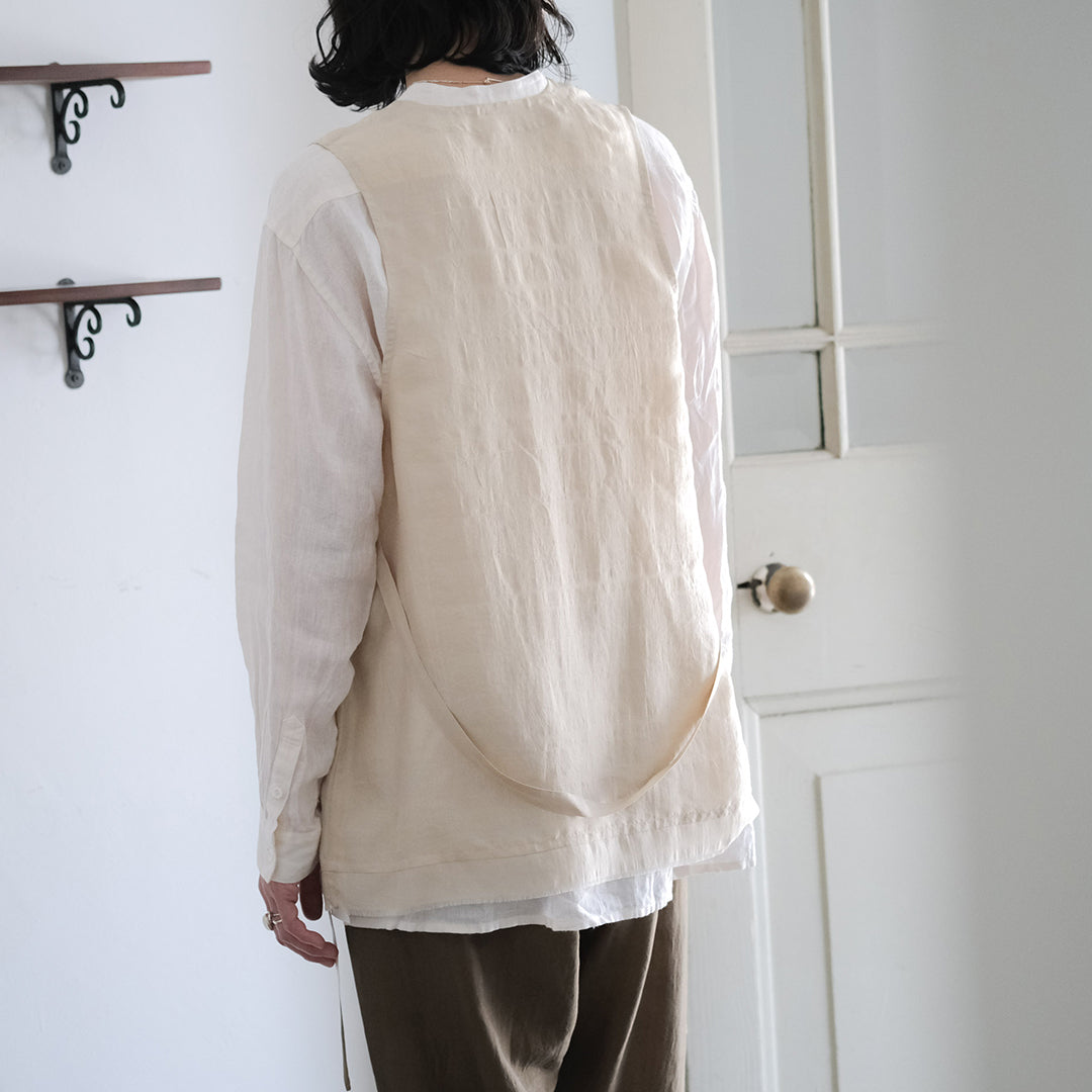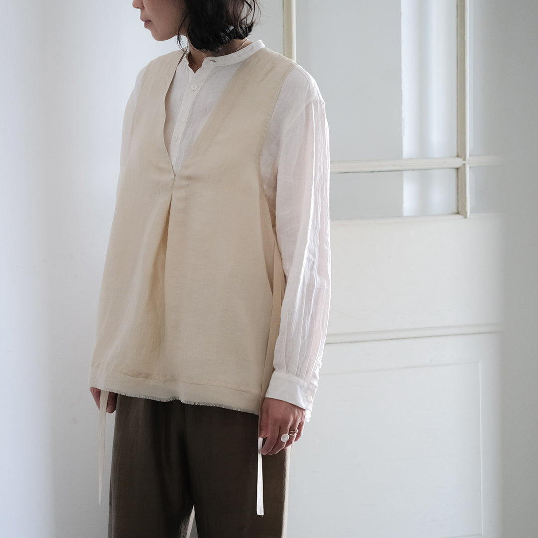 ▲ビスケット シャツ:[SALUÉ]ユニセックスバンドカラーシャツ/ライトウェイトリネン アンティークホワイト