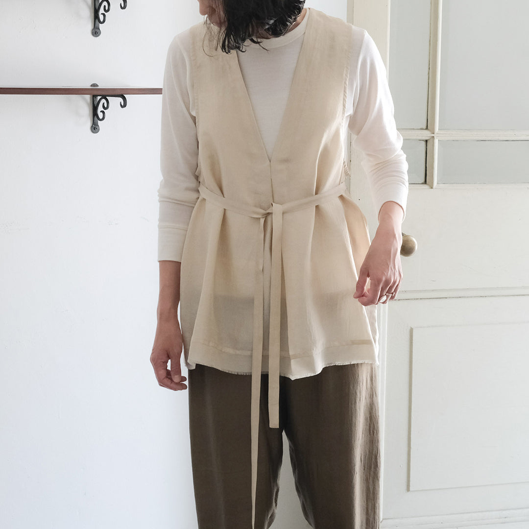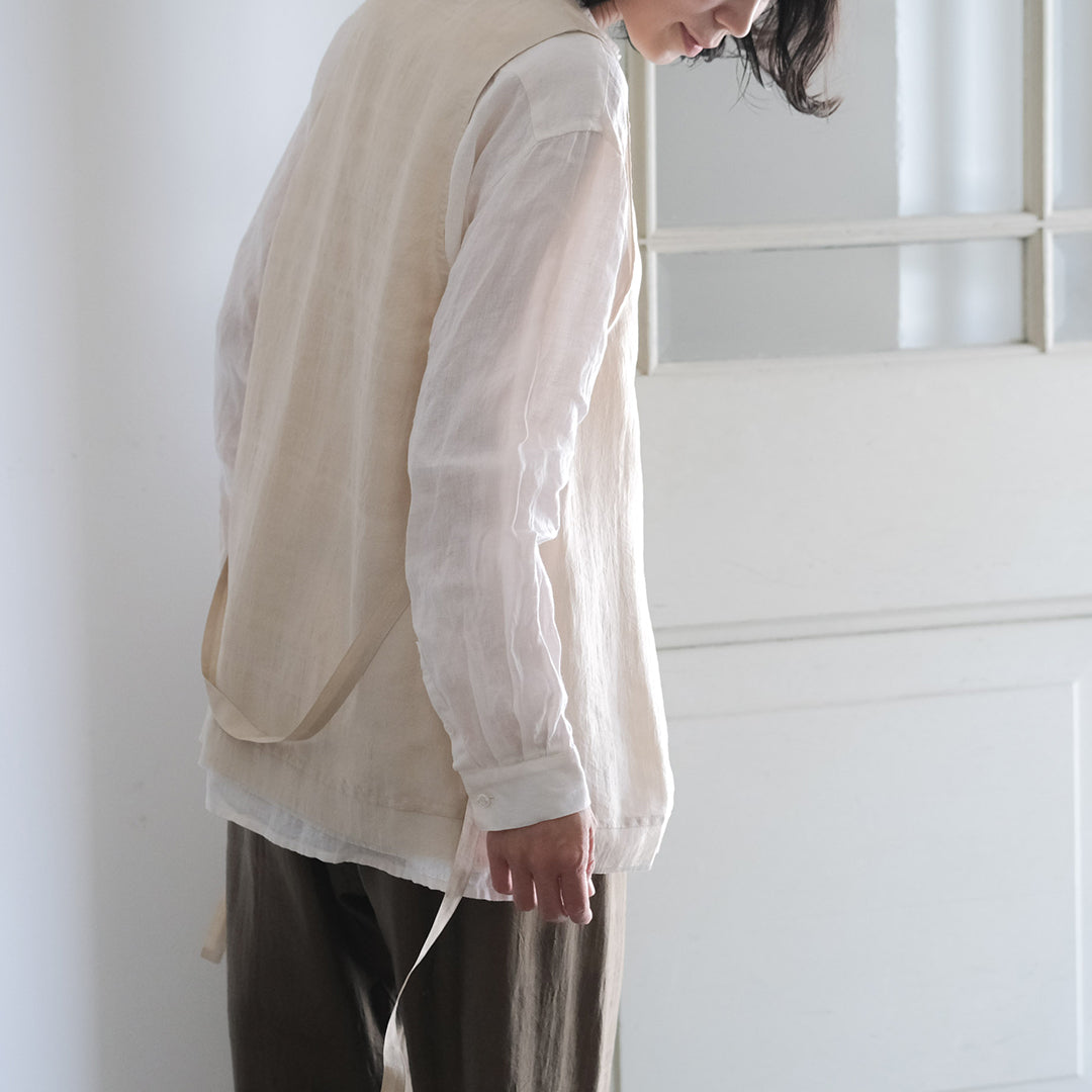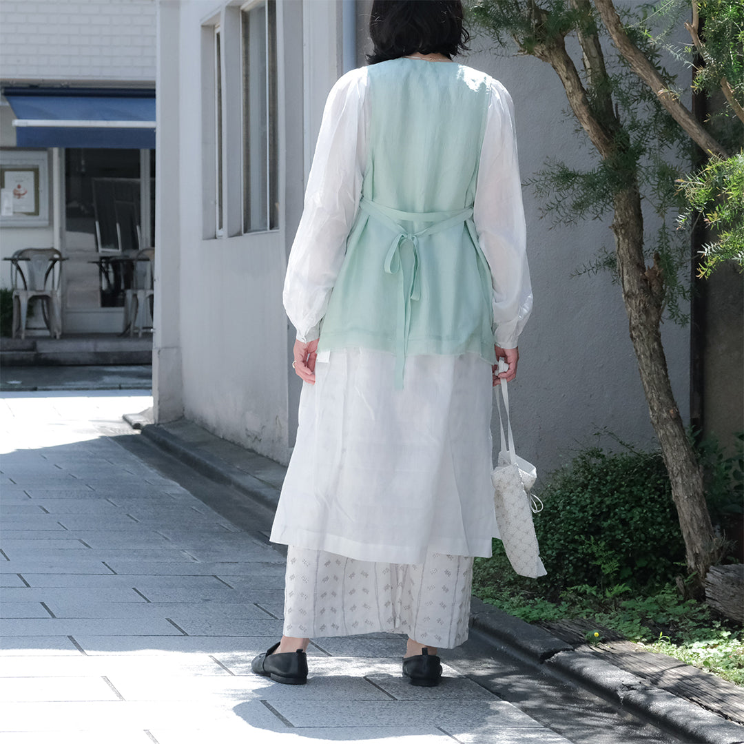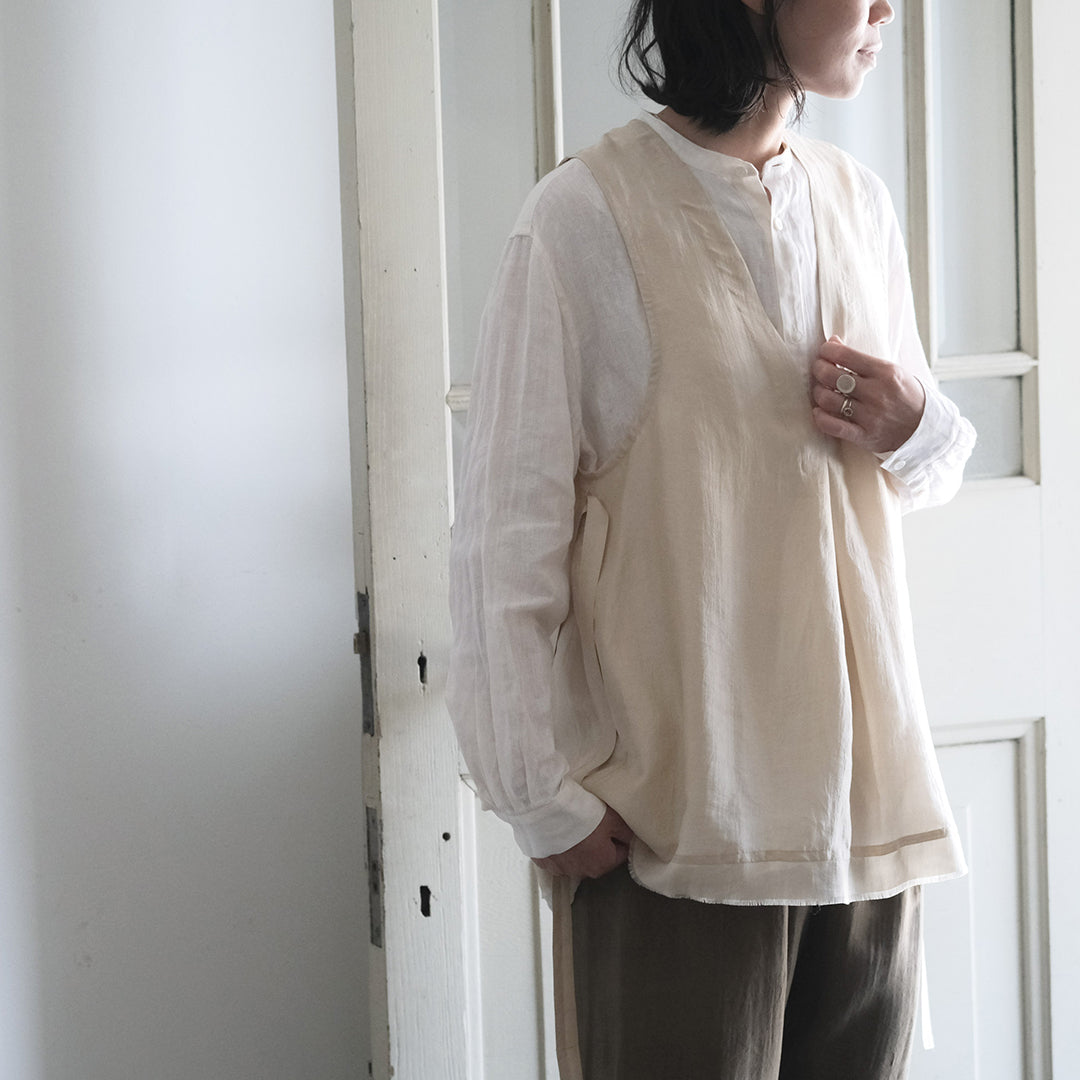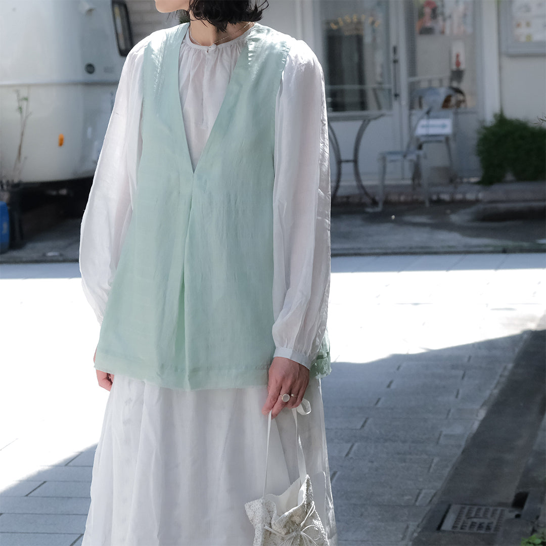 軽やかな素材感なので、夏場はノースリーブの上に重ねて素肌と合わせてさらりと着るのも素敵です。