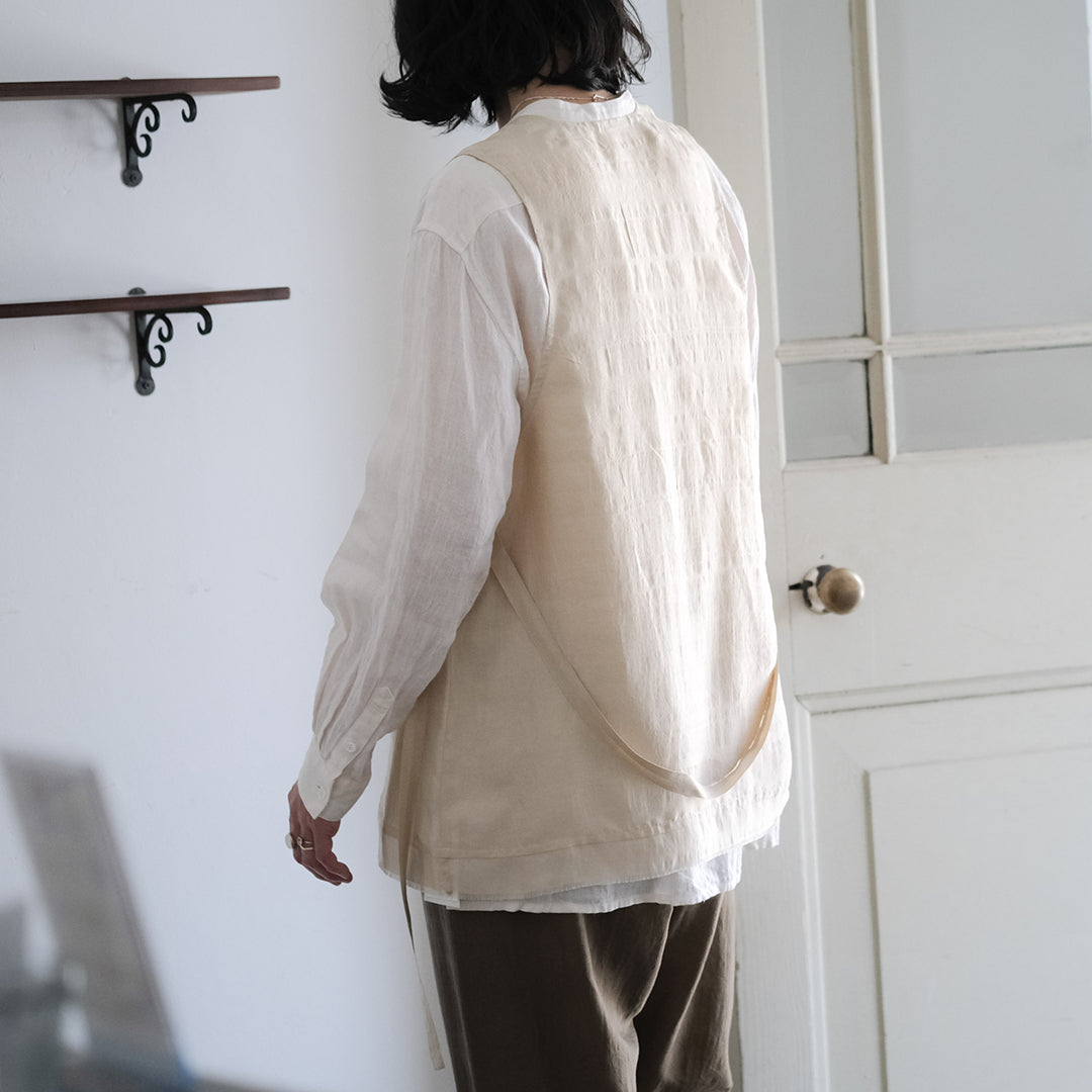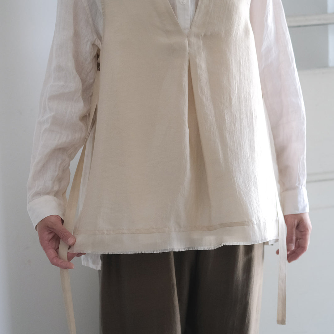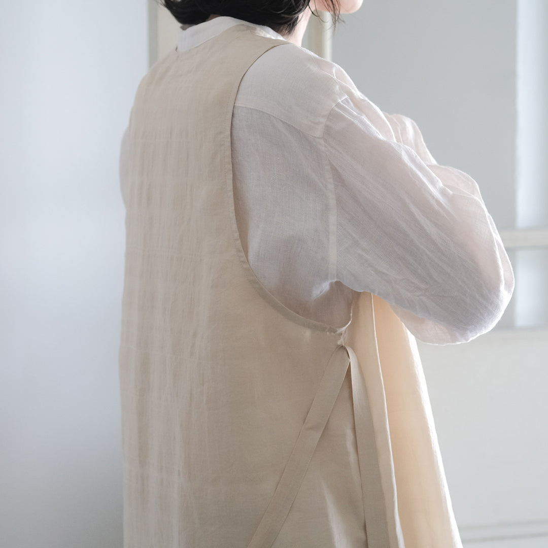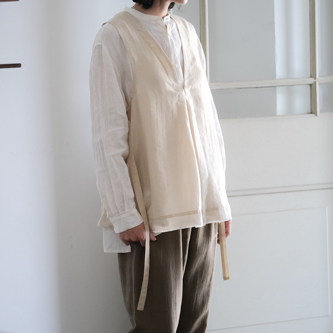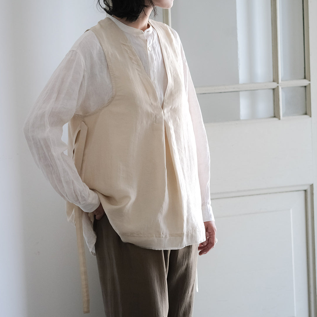 軽やかな素材感なので、夏場はノースリーブの上に重ねて素肌と合わせてさらりと着るのも素敵です。