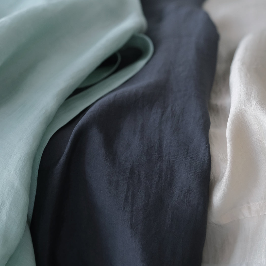 ▲シルク100%の生地は薄く繊細。インドの手織りシルクのため、うっすらと織りの模様が見えるのが特徴です