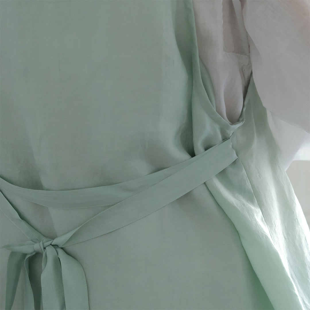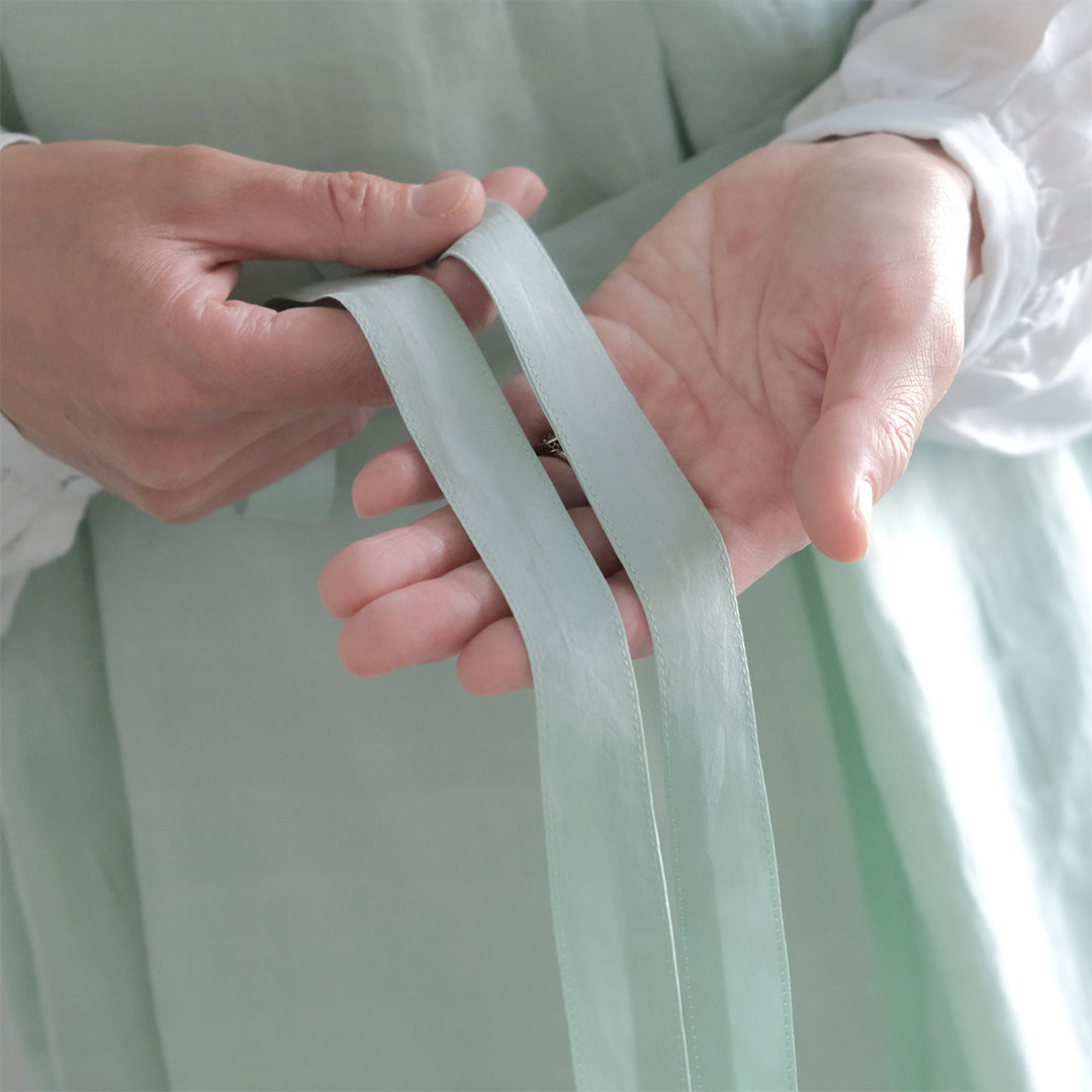 ウエストには細い紐が通っていて、そのまま垂らしたり、前や後ろ、お好きな場所でさらりと結んで。