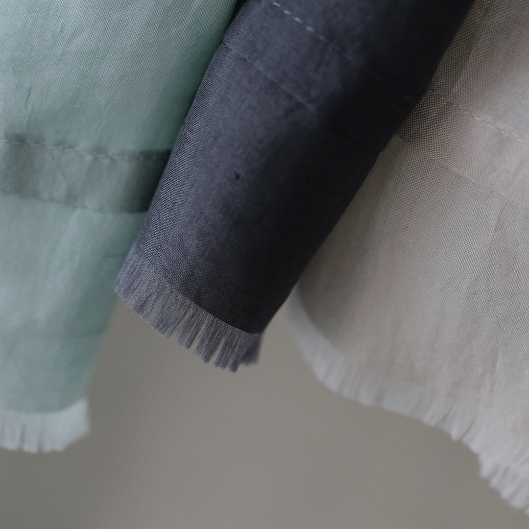 裾は切りっぱなしで糸が抜かれ、フリンジのようになっています。上品さの中のほどよいアクセントに。