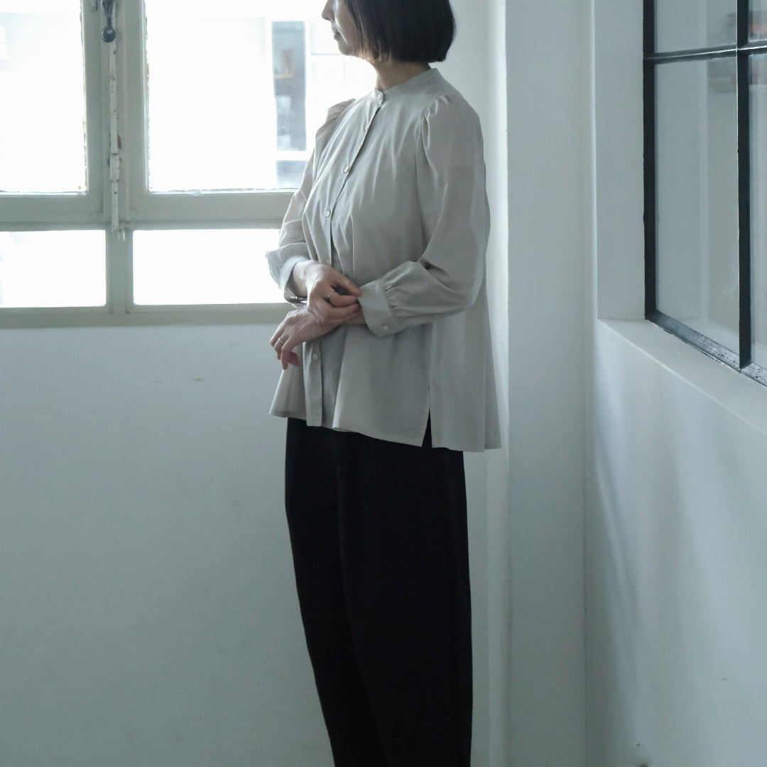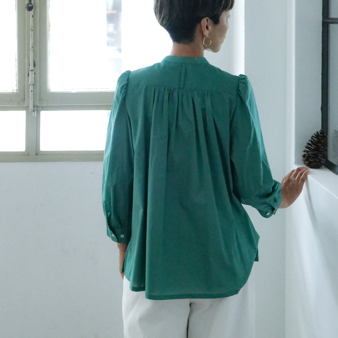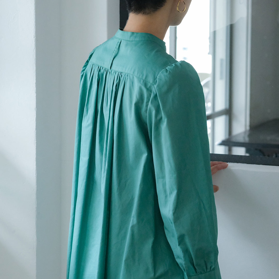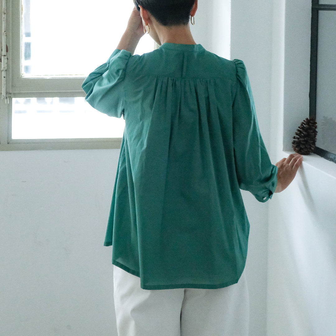 生地を変えたり色を増やしたりしながらつくり続けている、SALUÉ人気のパフスリーブシャツ。こちらでご紹介しているパフスリーブシャツロングはリネンのものに比べ少し長い丈が特長。リネンのものと比べ、薄さ・軽さに優れています。
