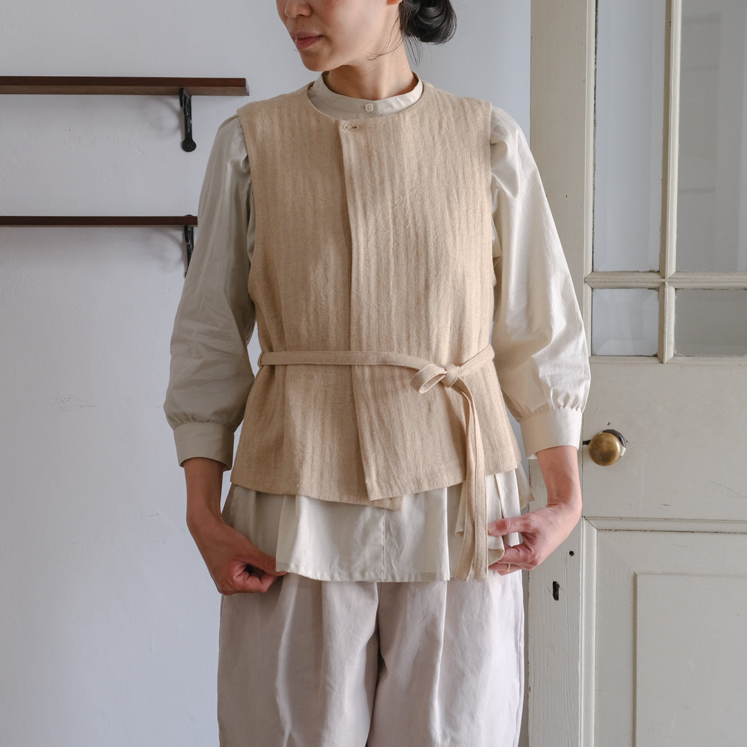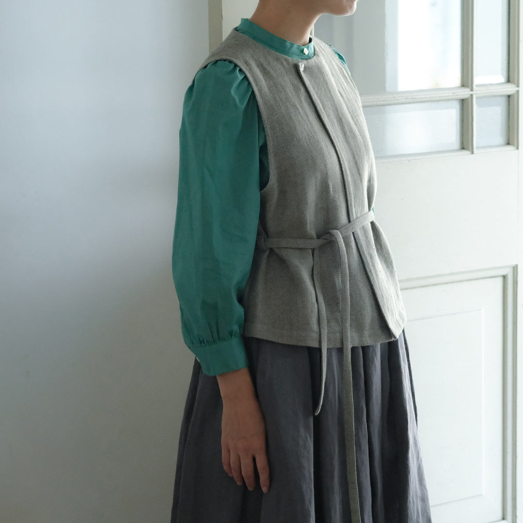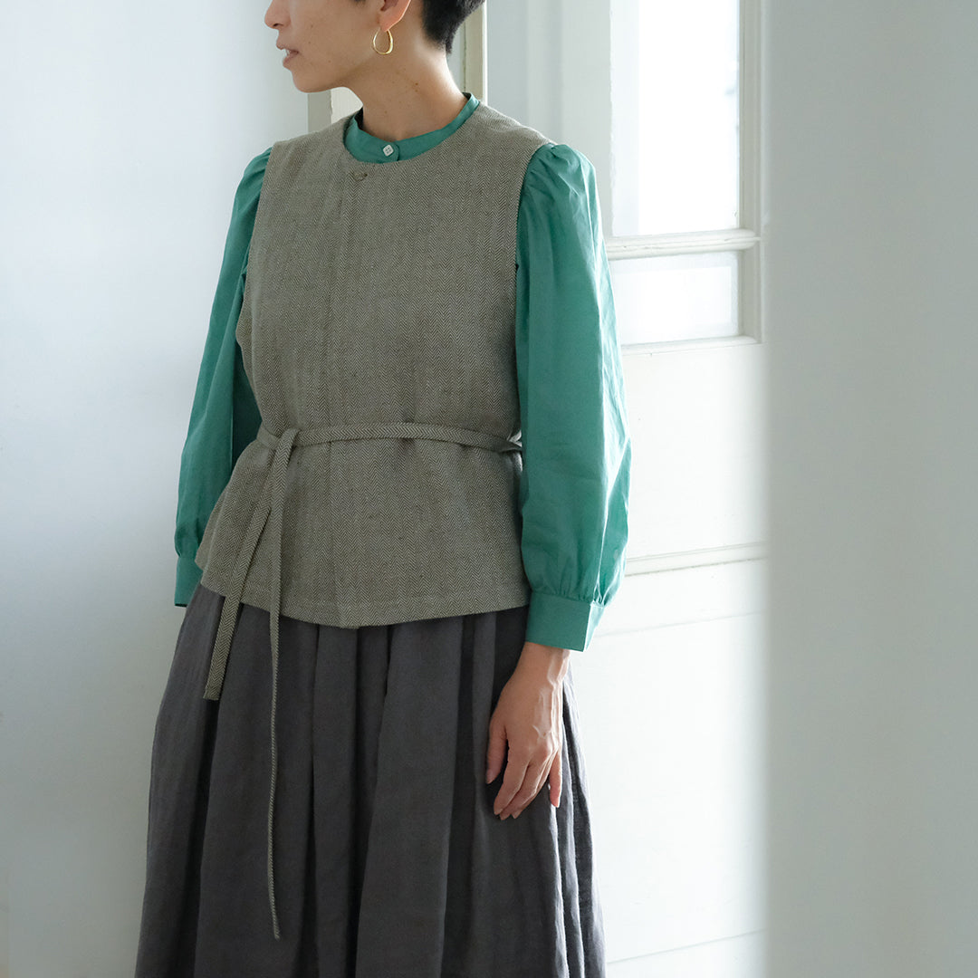 生地が薄手なのでインして着てももたつきません。インするとスマートな印象に。コットン素材のパフスリーブシャツは、リネンよりも袖山の形がきれいに出るのでジレを重ねて袖を見せるスタイリングもおすすめです。
