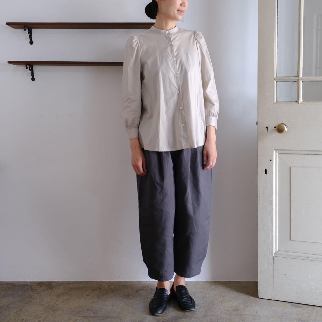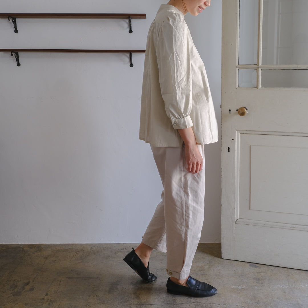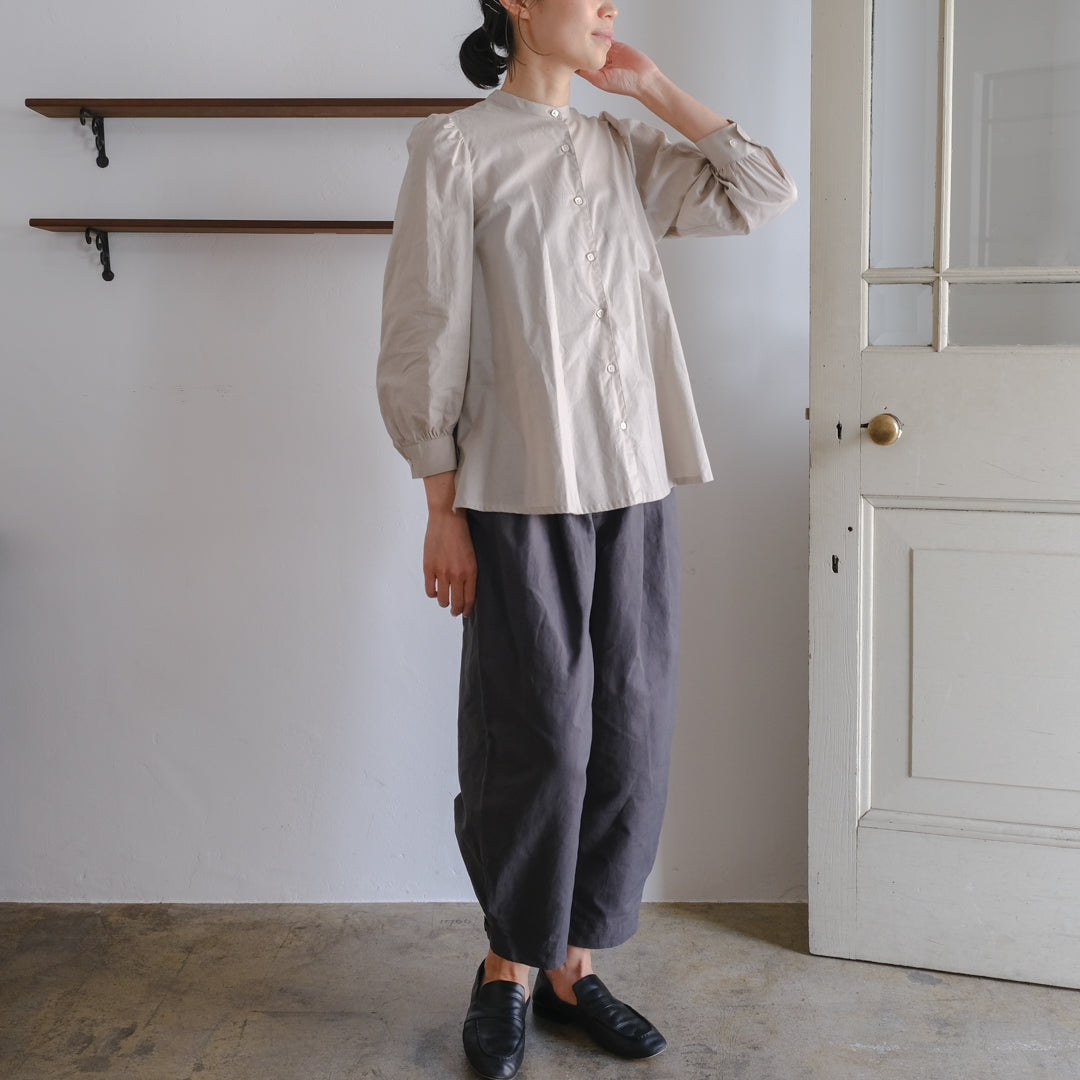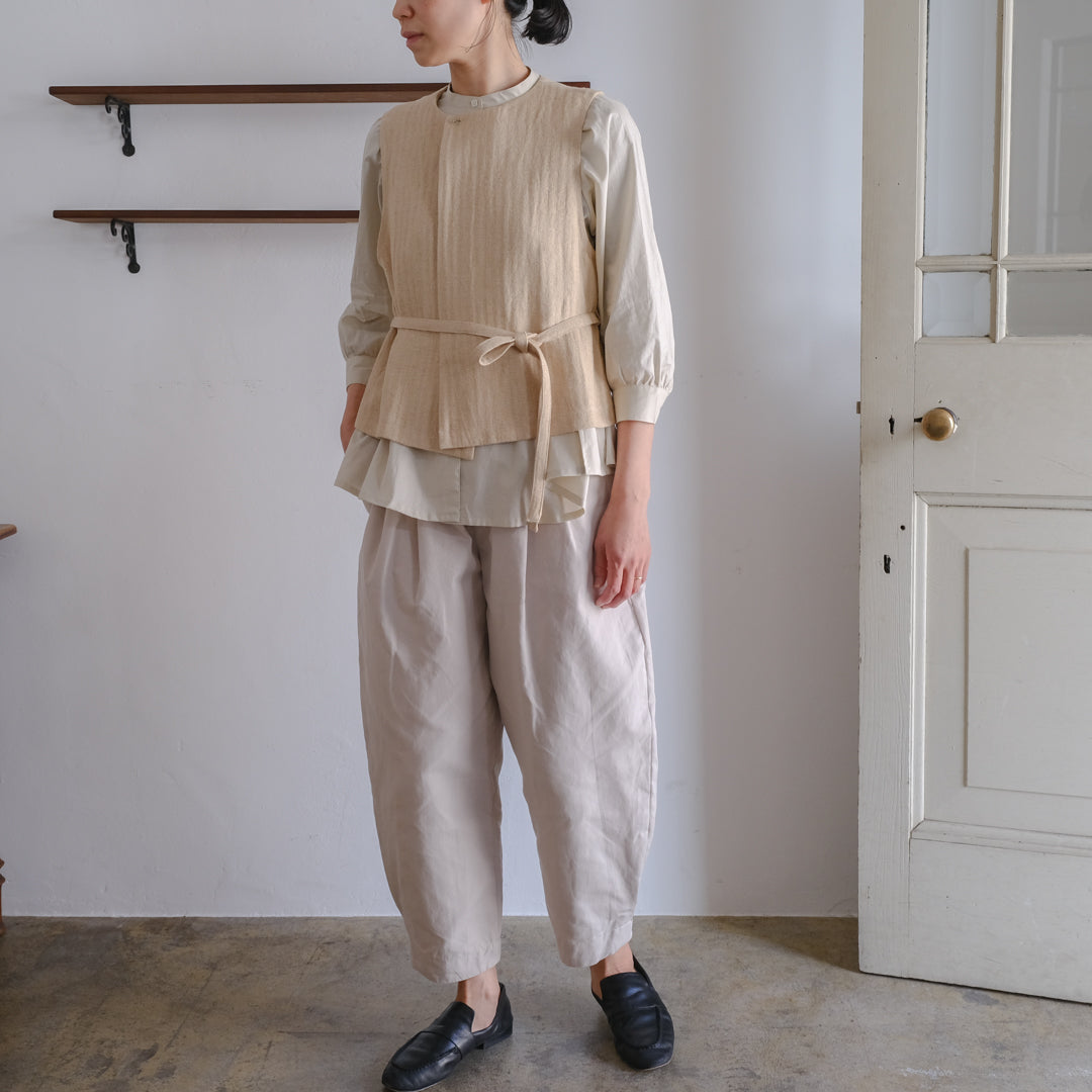 ▲ライトグレージュ、エッグチノパンツ/コットンリネン(チャコール)に合わせて