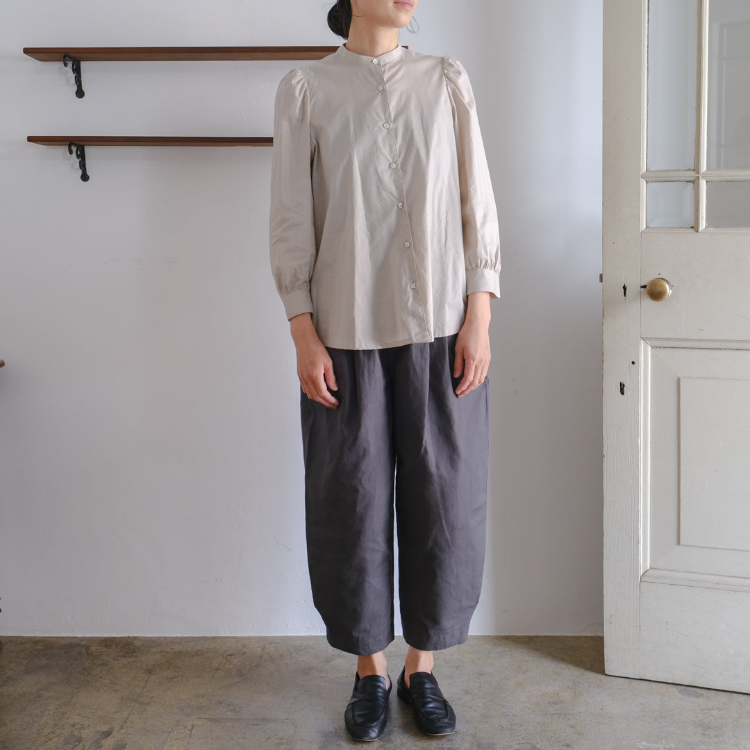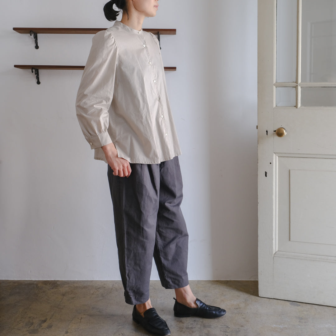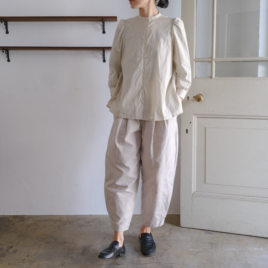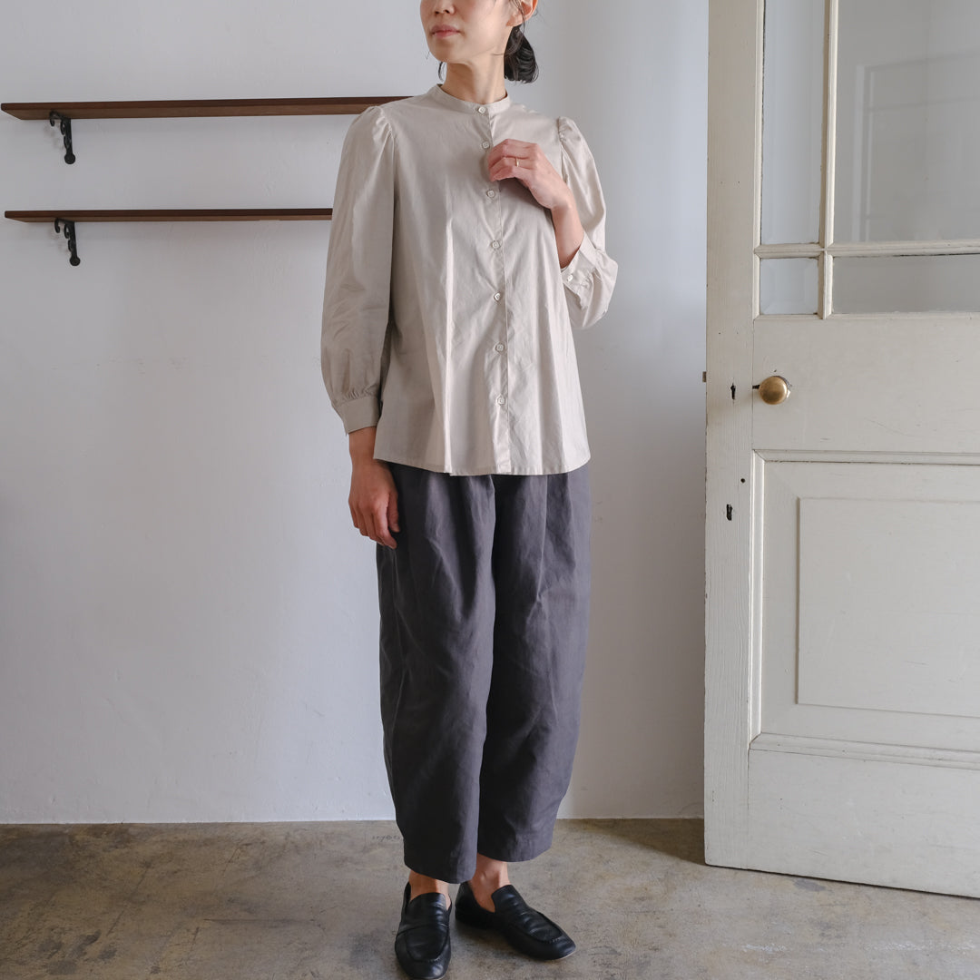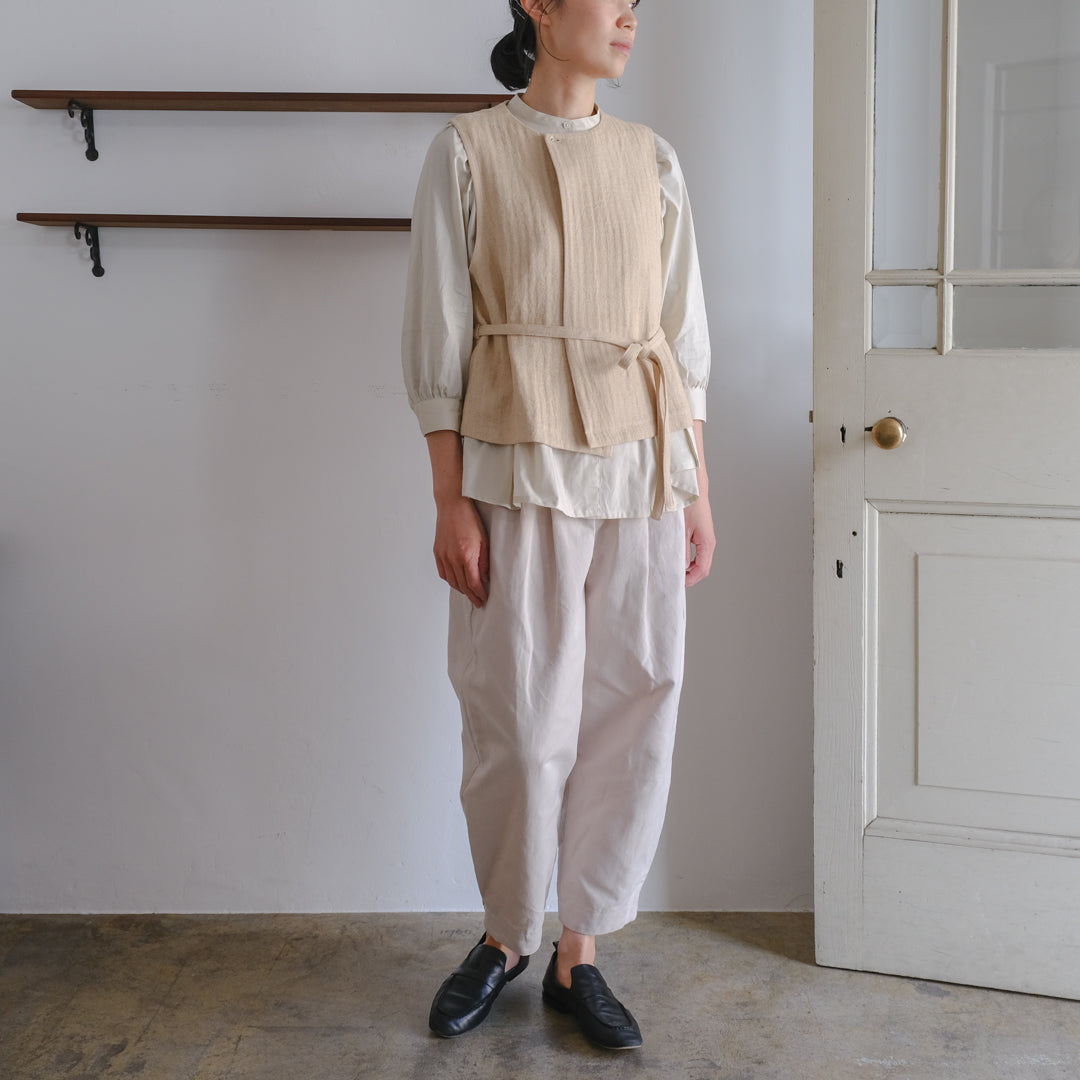 ▲ライトグレージュ、エッグチノパンツ/コットンリネン(チャコール)に合わせて
