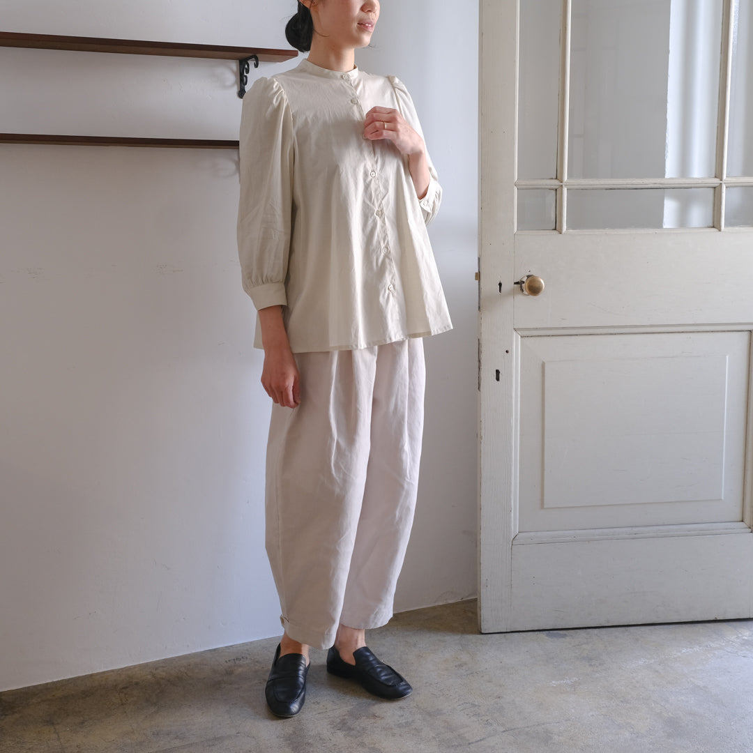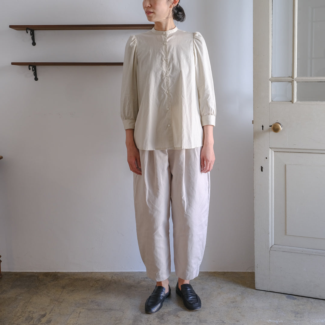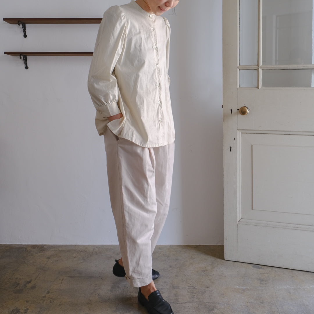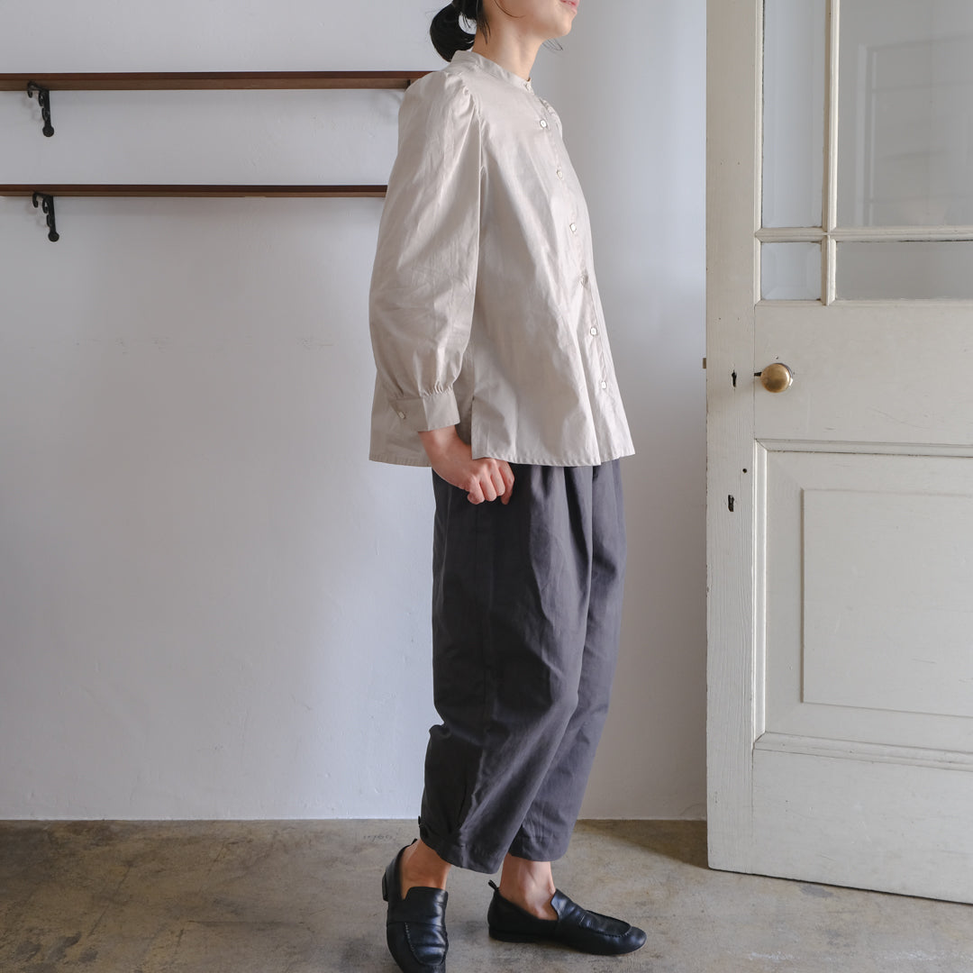 ▲ライトグレージュ、エッグチノパンツ/コットンリネン(チャコール)に合わせて
