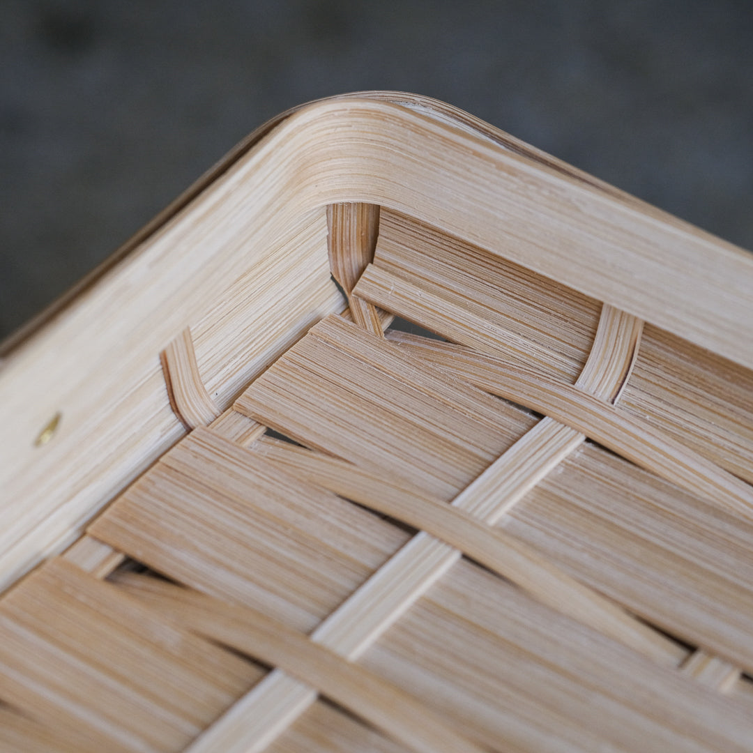竹を細く割ったひごを組み合わせて太さの緩急をつけ、バランスよく編まれています。▲チェックやボーダー柄を連想させる編み目