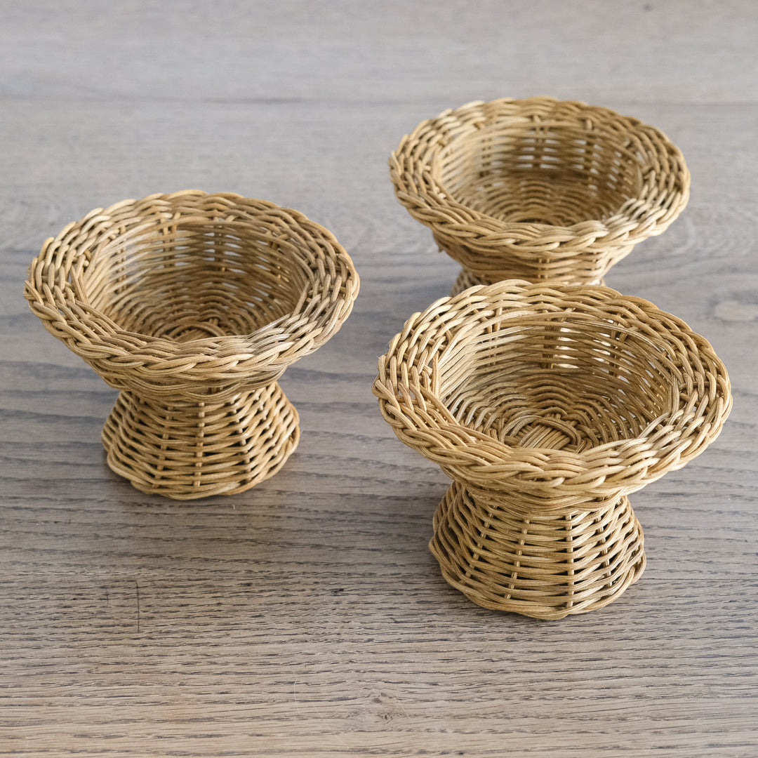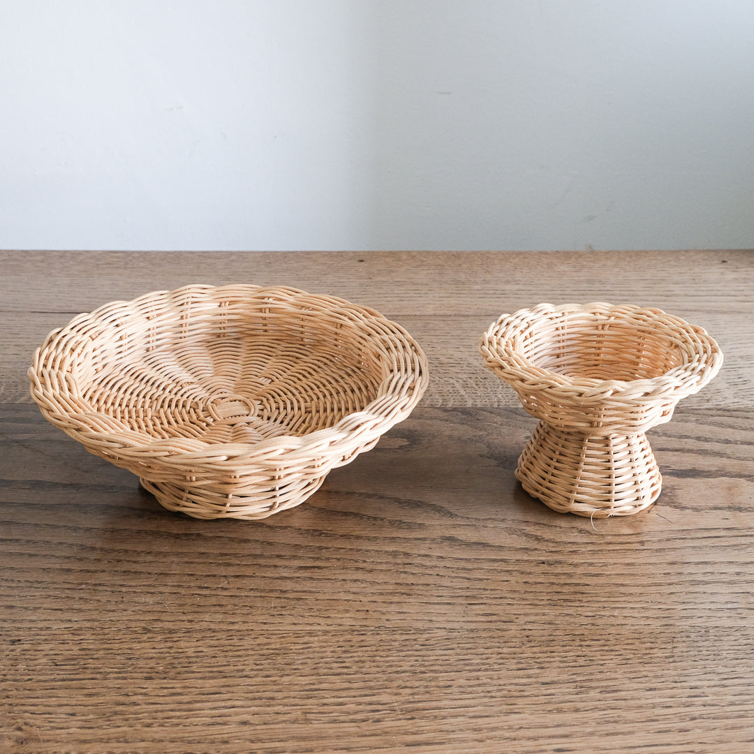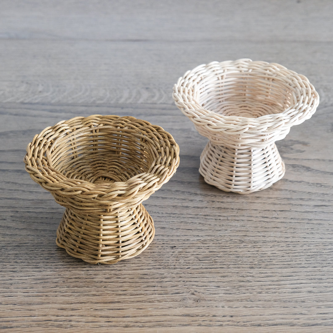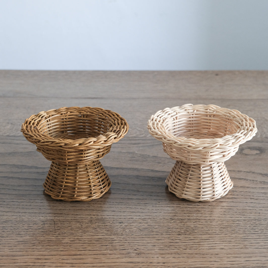 どこにおいても目をひくコンポートは、テーブルの上やインテリアのアクセントになります。 どこに置いてもすっとなじむのが籐のいいところ。 雑貨を飾ったり、食卓にちょっとしたおやつを置くだけで絵になるのはコンポートのなせる業。載っているだけで特別な存在感を醸し出します。