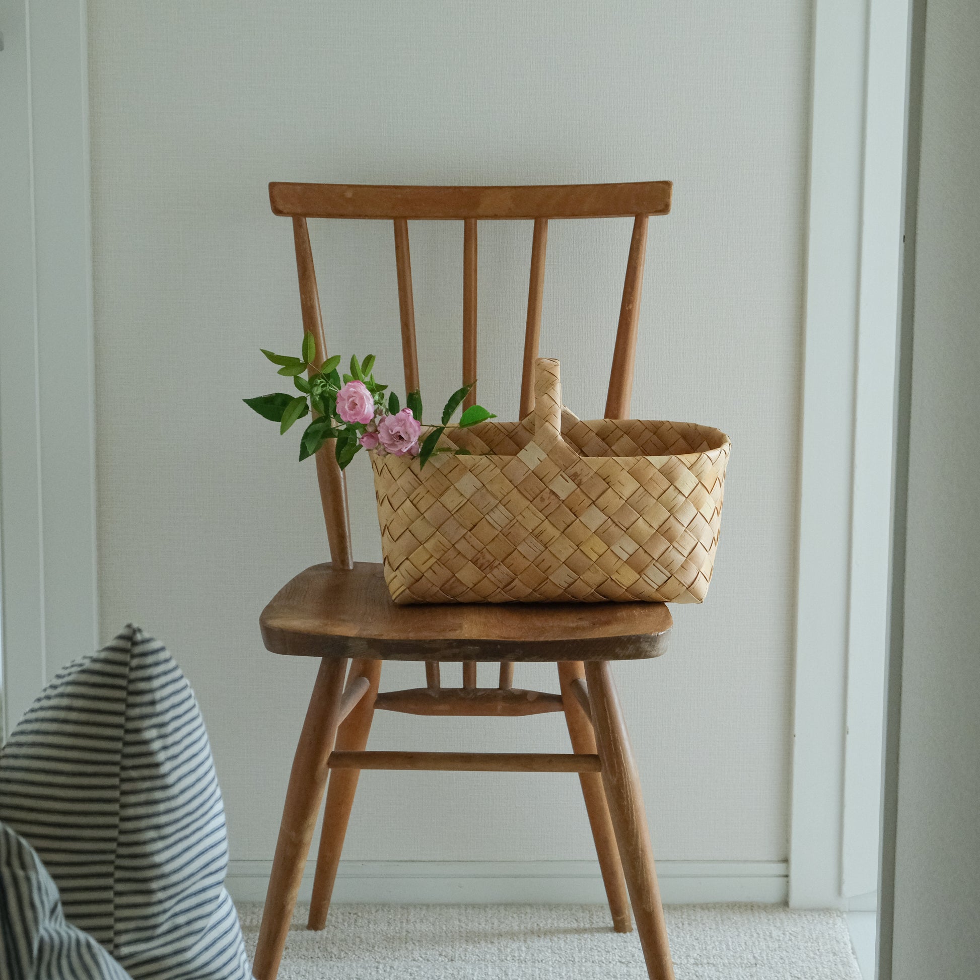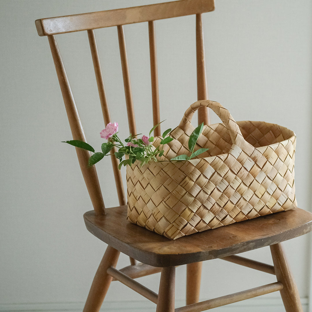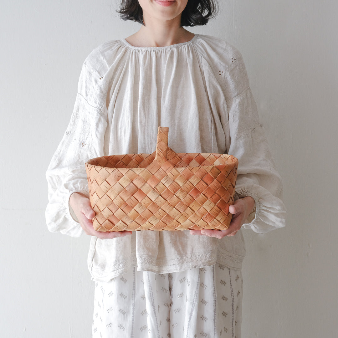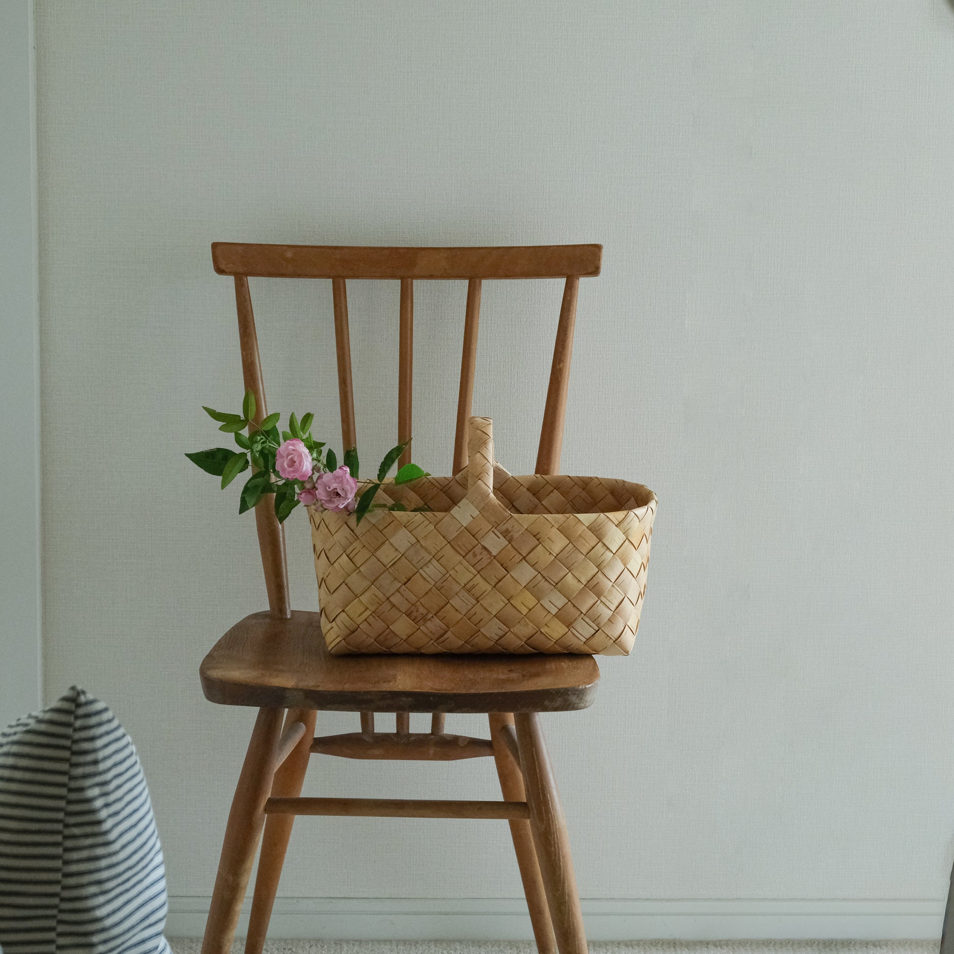 しなやかな白樺の木の皮でしっかりと編まれたかごは、時間の経過をゆっくりと感じさせ、日常の一つひとつを丁寧に大切にしたくなるようなやさしい空気をまとっています。