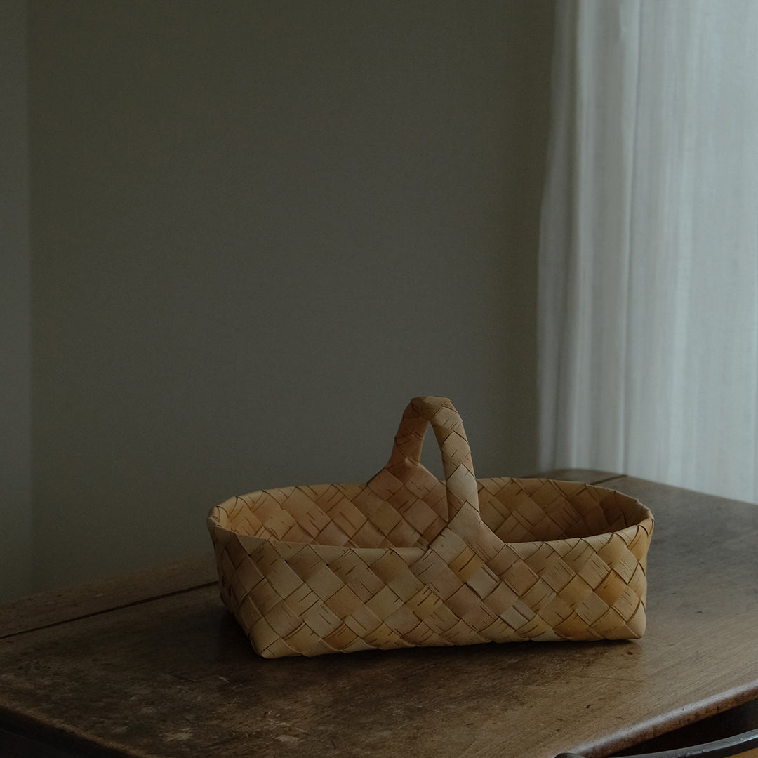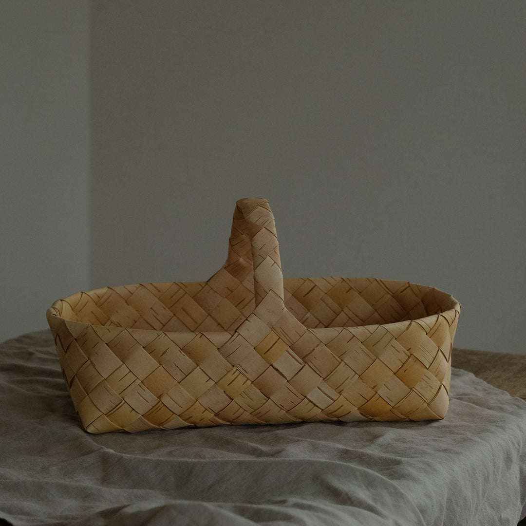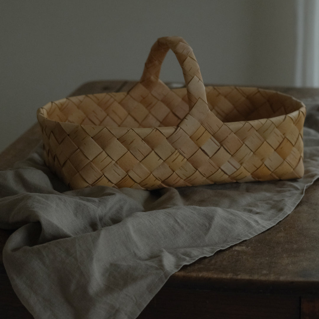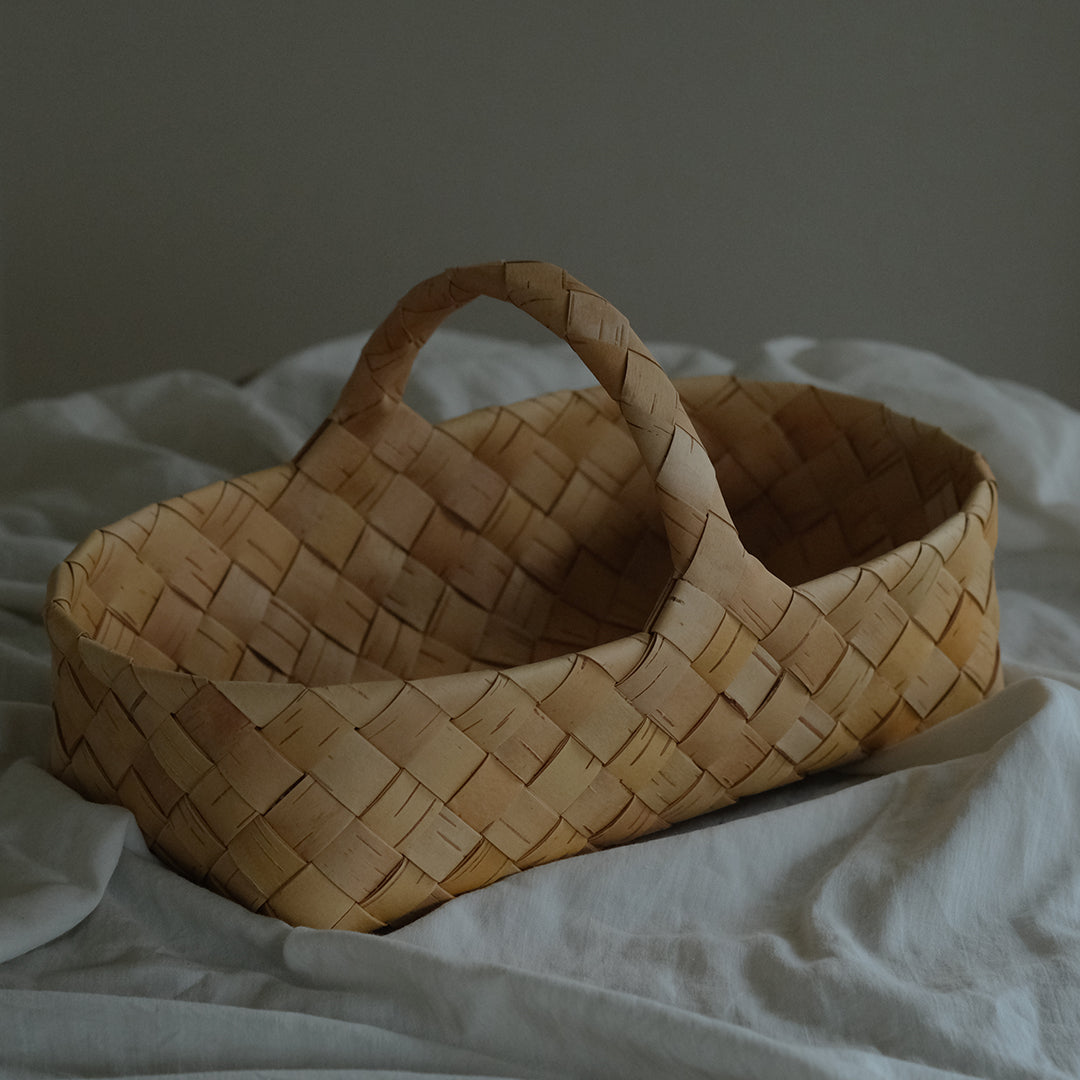 しなやかな白樺の木の皮でしっかりと編まれた白樺かごは、時間の経過をゆっくりと感じさせ、日常の一つひとつを丁寧に大切にしたくなるようなやさしい空気をまとっています。