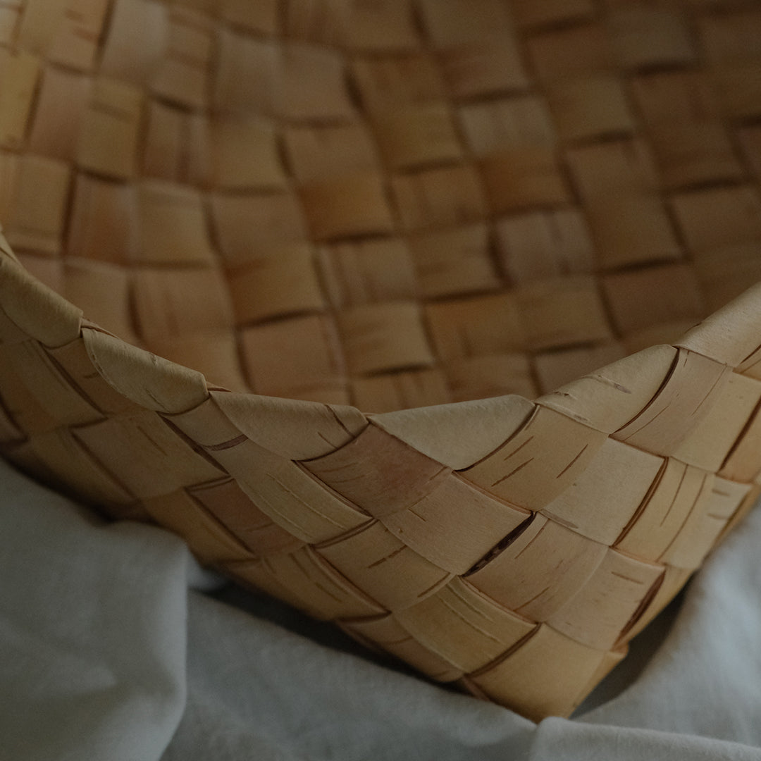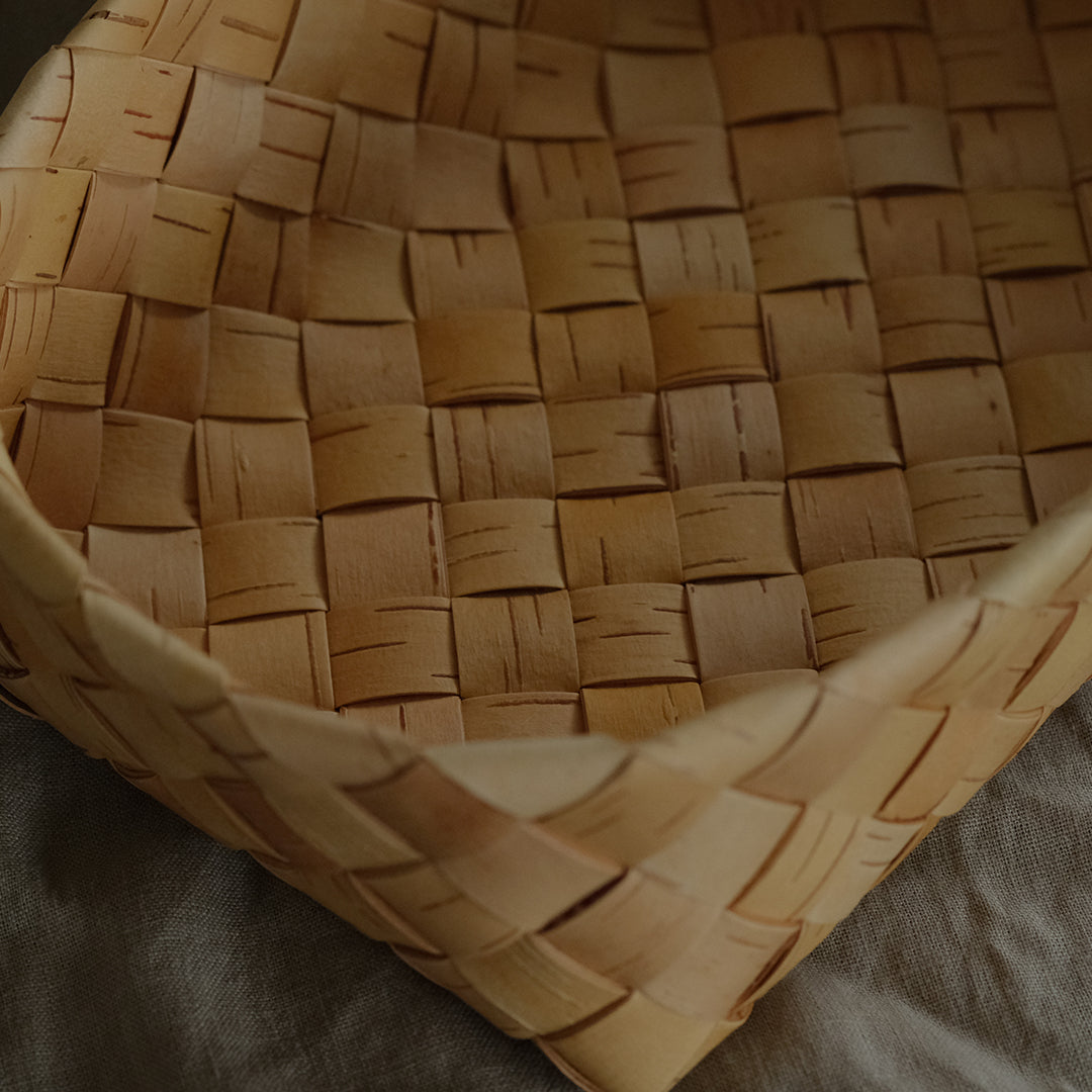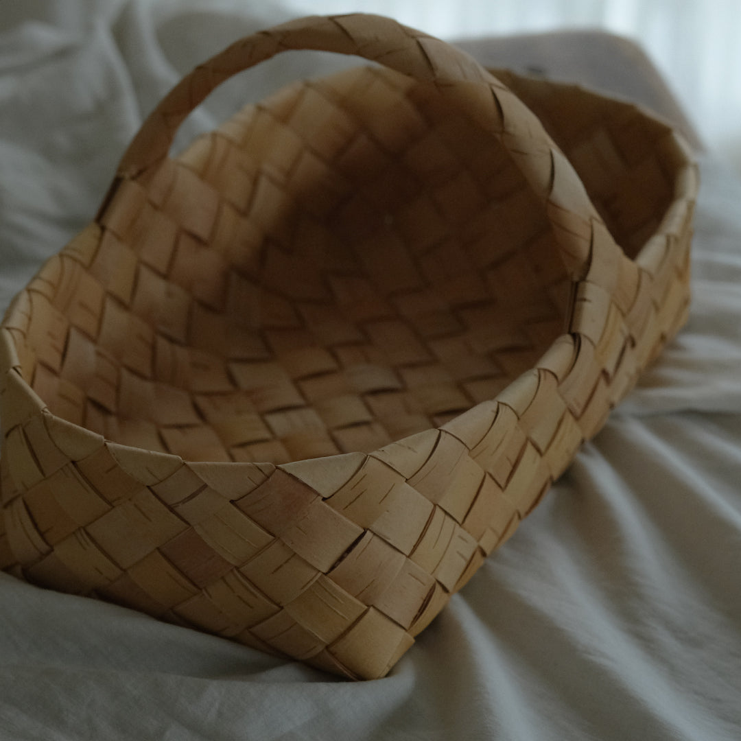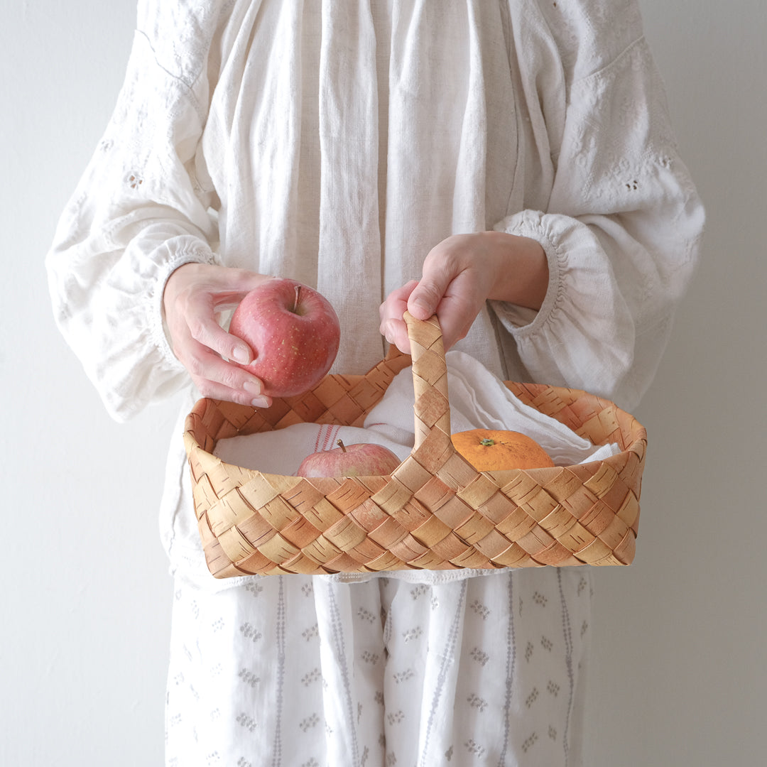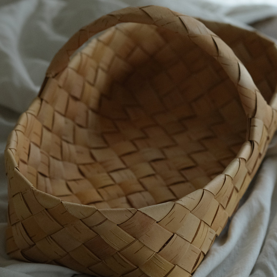 しなやかな白樺の木の皮でしっかりと編まれた白樺かごは、時間の経過をゆっくりと感じさせ、日常の一つひとつを丁寧に大切にしたくなるようなやさしい空気をまとっています。