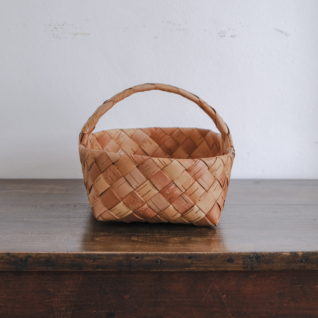 美しい編み目の白樺のかごは、ただそこに存在するだけで雰囲気があって絵になります。
