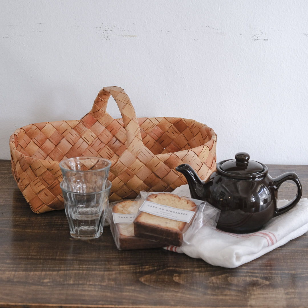 大きめのポットも難なくのせられ、ハンドル付きということから、気軽にピクニックに気軽にでかける機会がたくさん生まれそうなかごです。