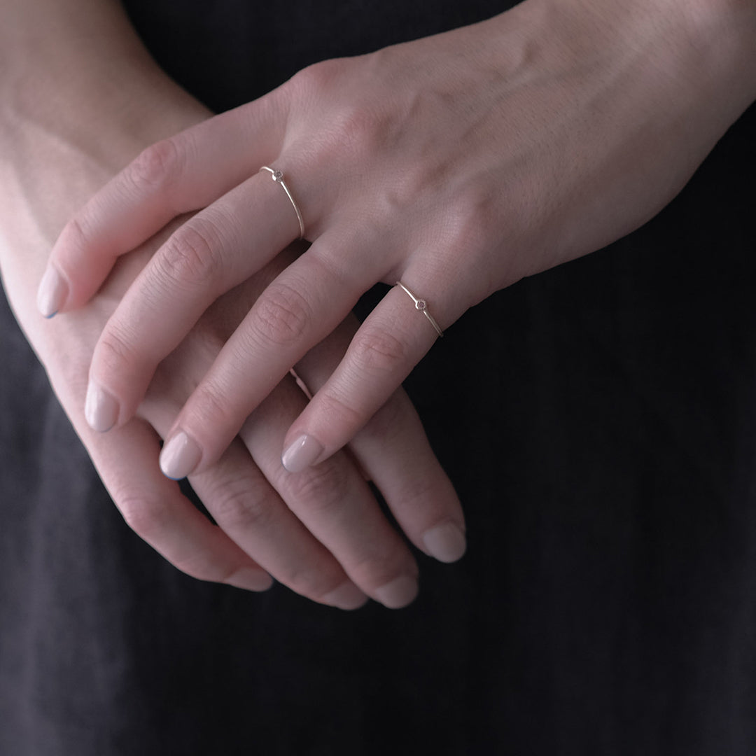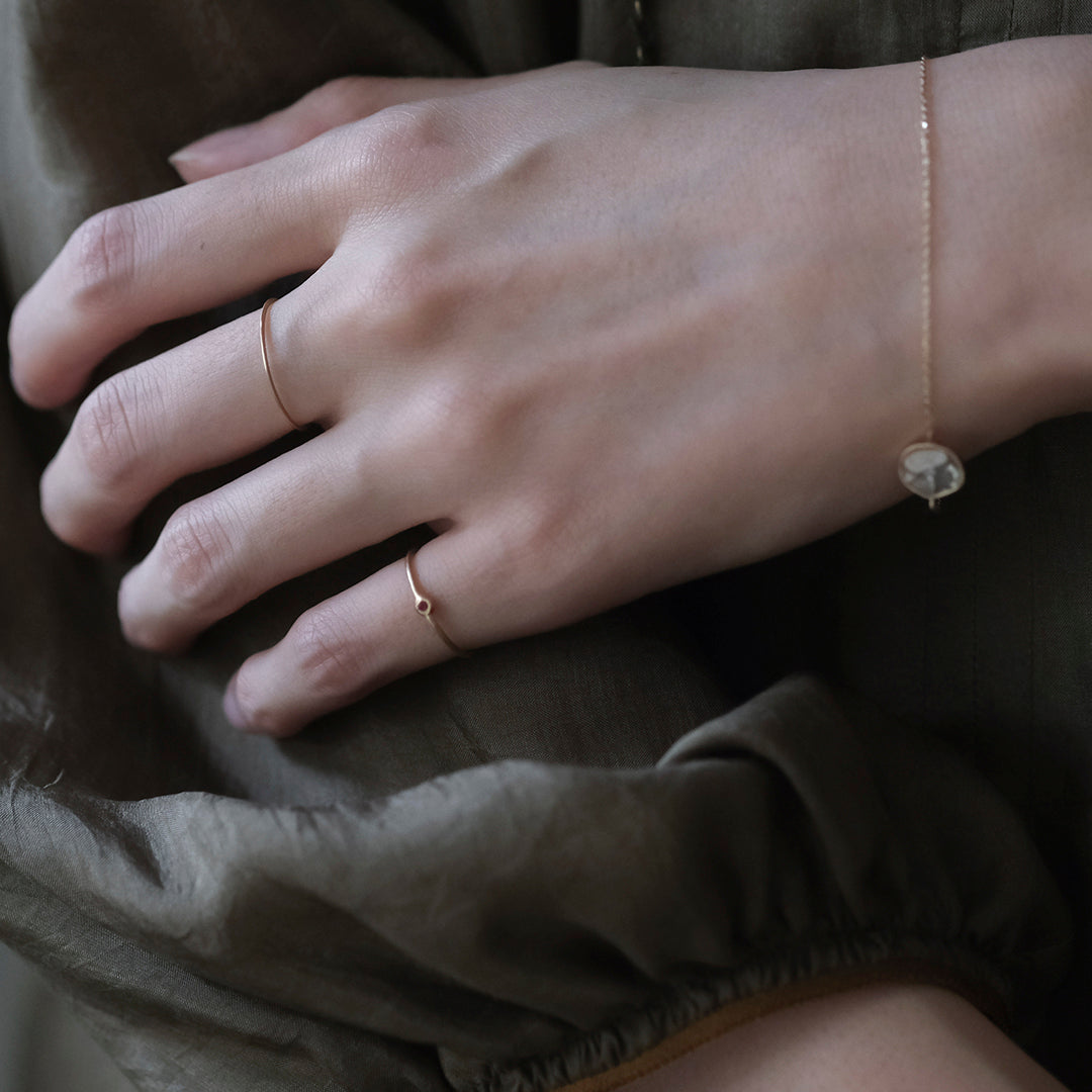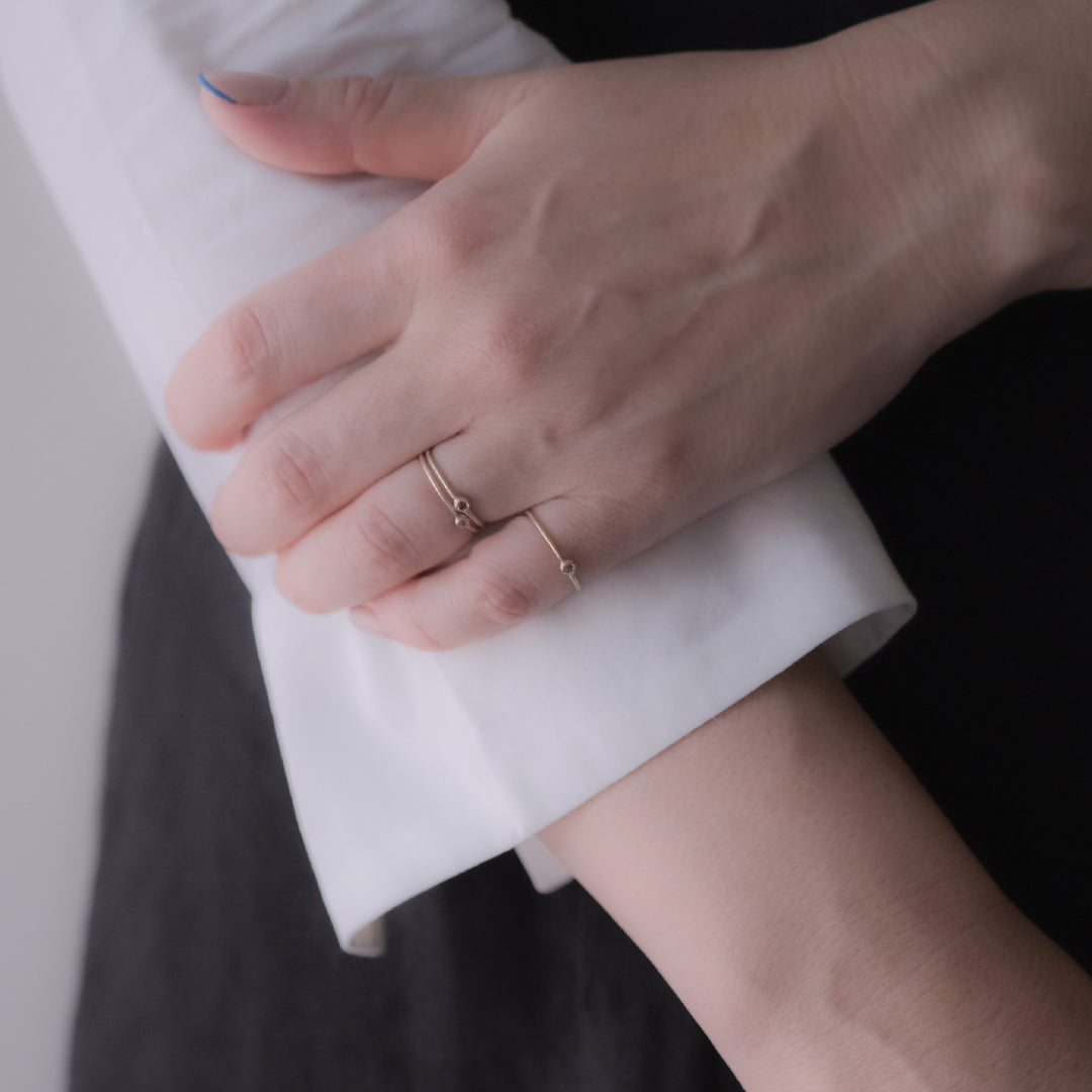 「手にして下さった方の日常に溶け込みながらも特別な存在として、永く身に着けて頂けるものになるように」そんな想いのもとつくられたジュエリーは、身に着けた時に美しく見えるように、身体の曲線に沿って肌になじみます。