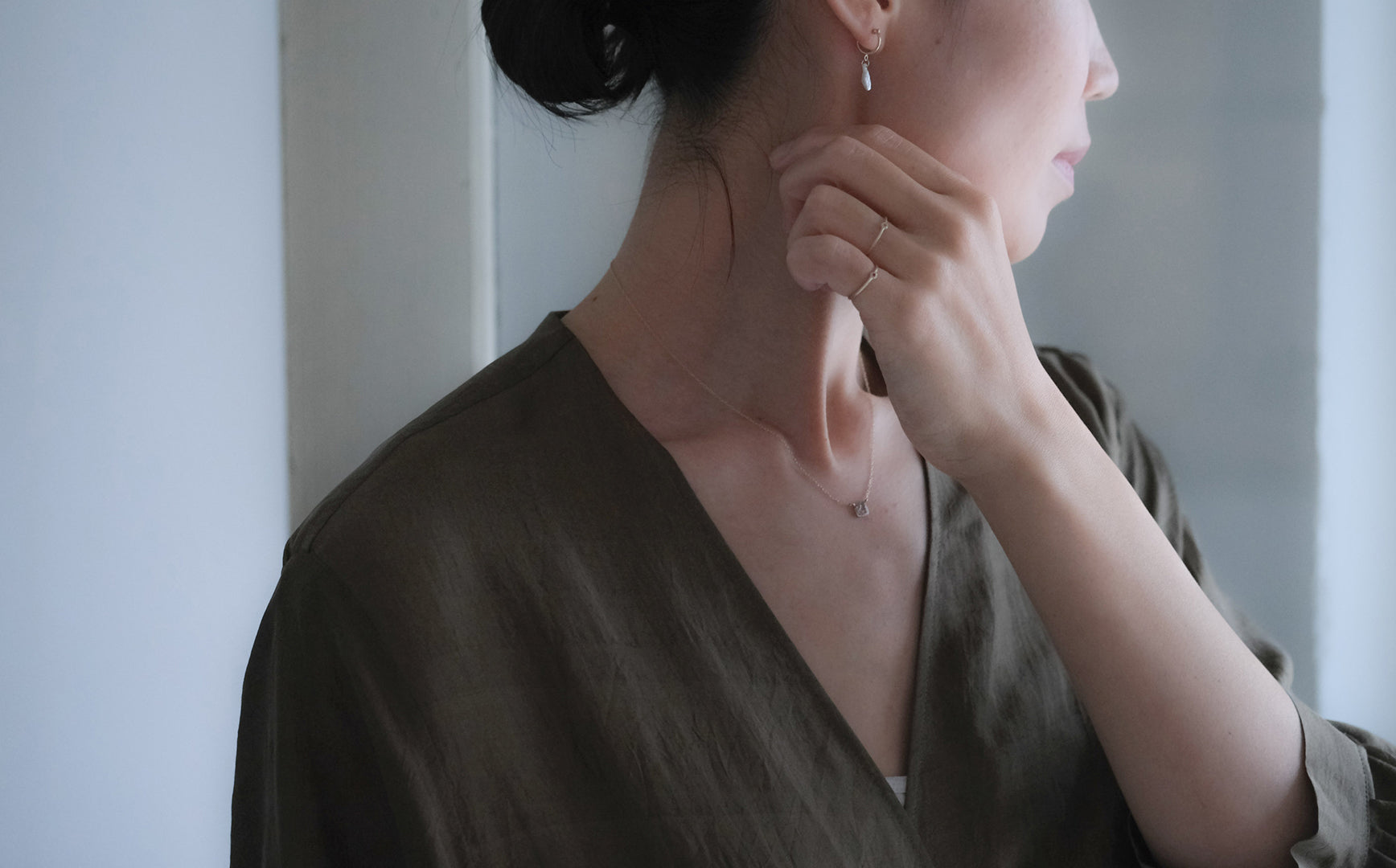 そんな想いのもとつくられたジュエリーは、身に着けた時に美しく見えるように、身体の曲線に沿って肌になじみます。