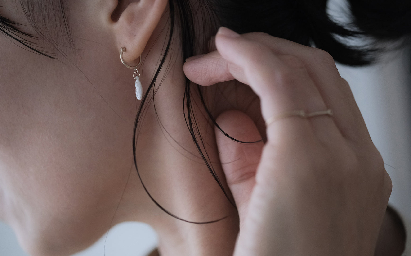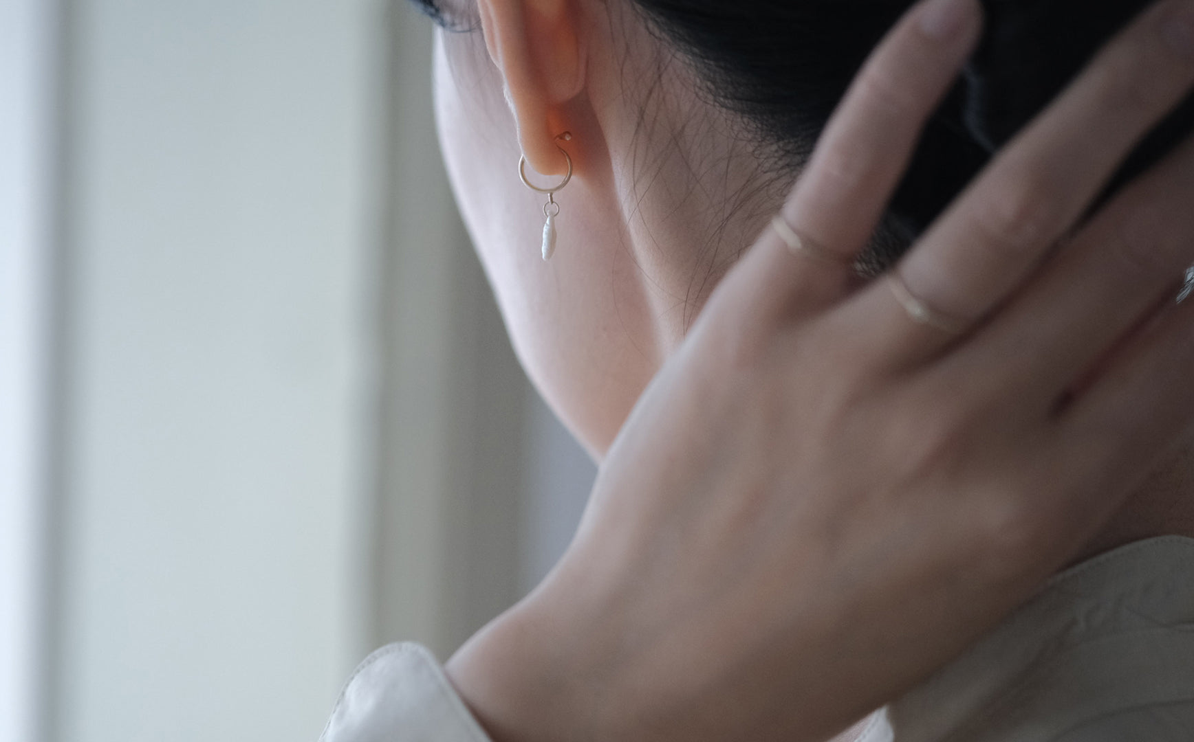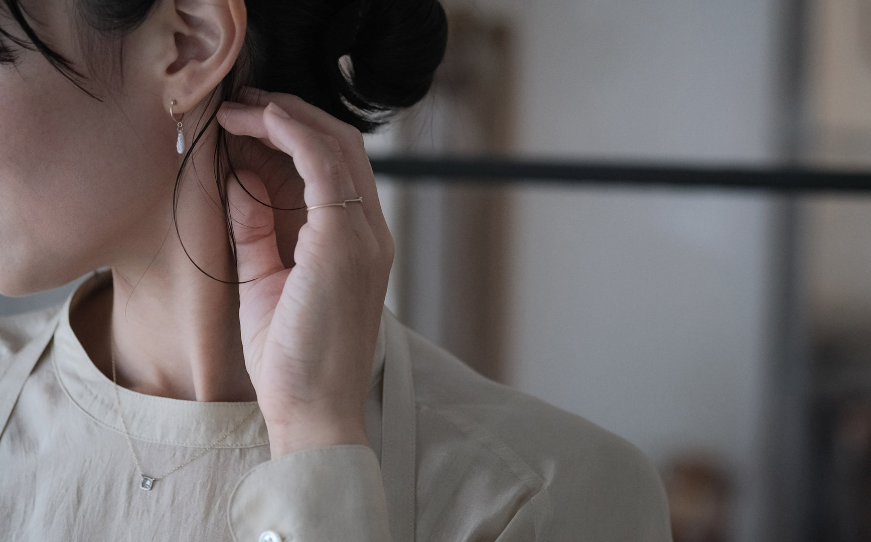 柔らかな質感と女性らしいラインを描いたAtelier el(アトリエエル)のブランド「Lys ligne」より、Dropパールイヤリングをご紹介します。雫型の淡水パールを主役にしたイヤリングは、ふとした動きとともに耳元で軽やかに揺れます。