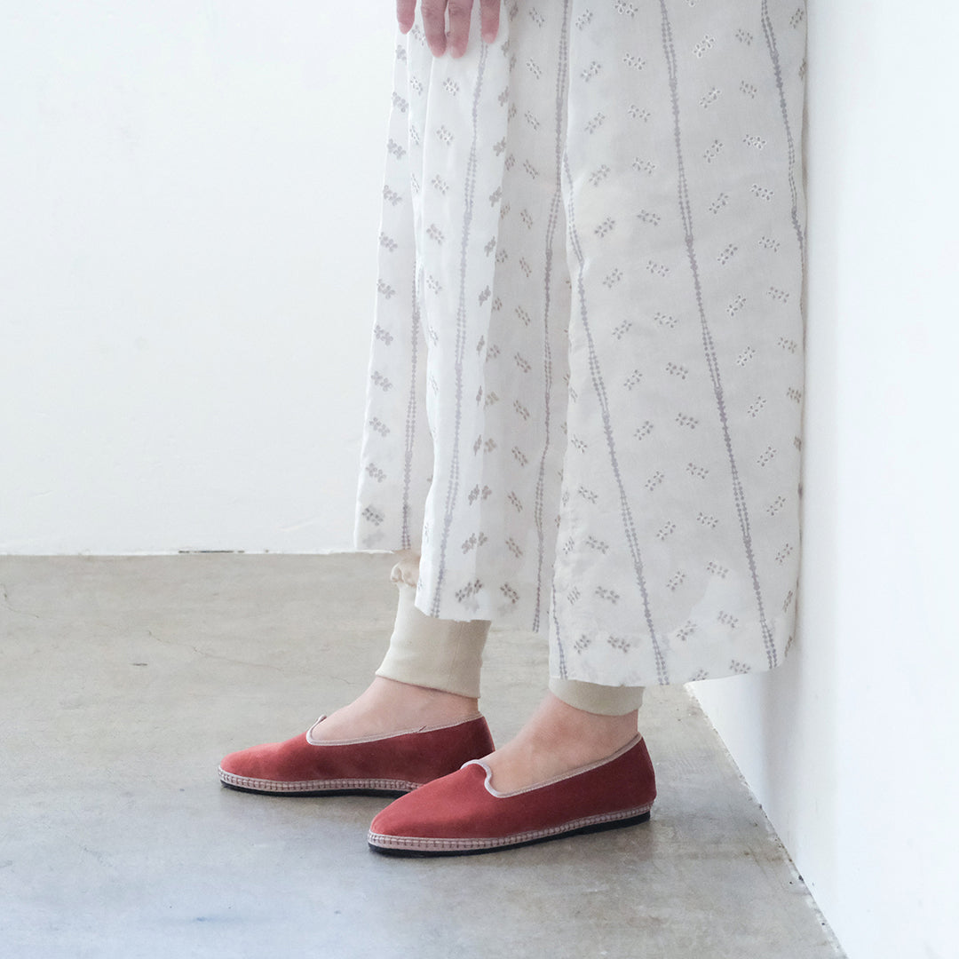 ベルベット素材のスリッポンシューズを足もとにプラスすると、いつものコーディネートが少しアップデートされた印象に。革靴よりも軽やかなベルベット素材は、カジュアル過ぎず、きちんと過ぎずちょうどよい存在です。今回エンベロープがセレクトしたのはCLASSIC BLACKとMARRON×ROSE PINKの2色。