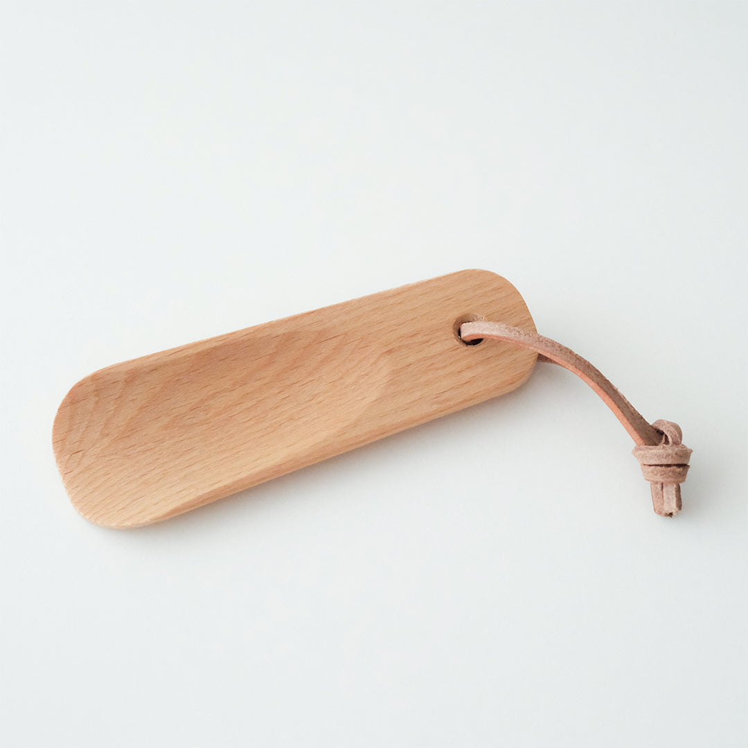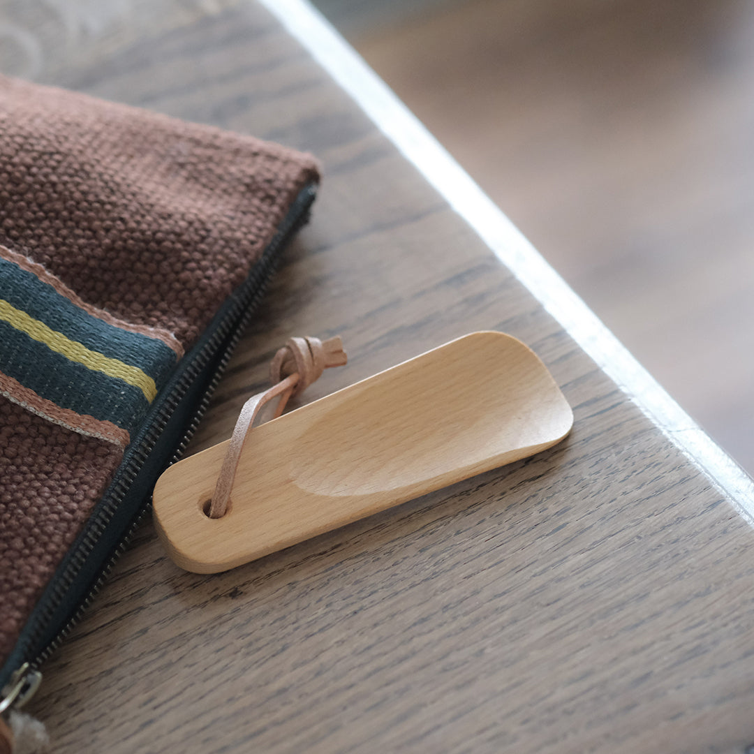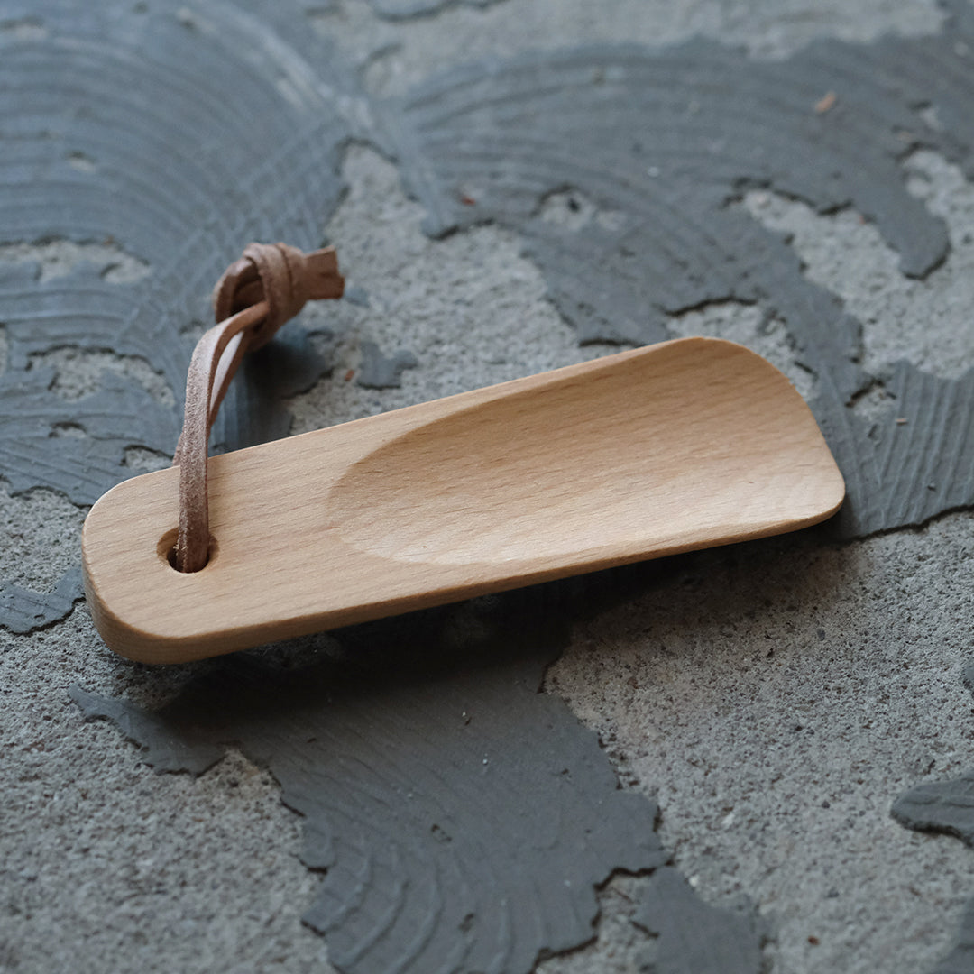 靴べらの素材は、ブナ。木の表情を活かした自然な仕上がりで、使っていくうちに深い色合いに変化していきます。