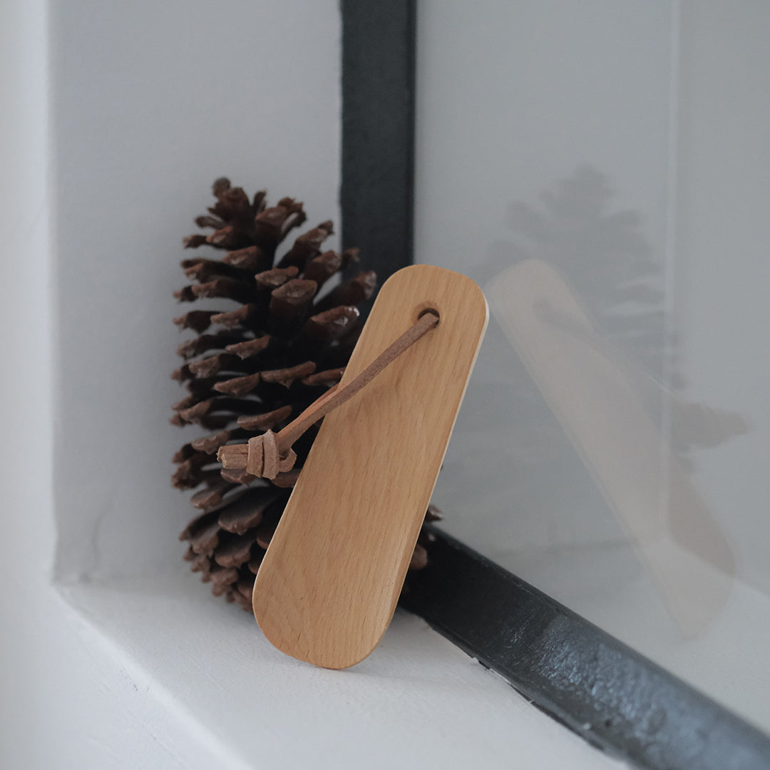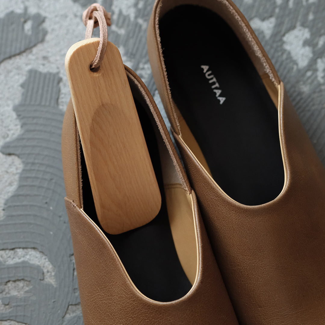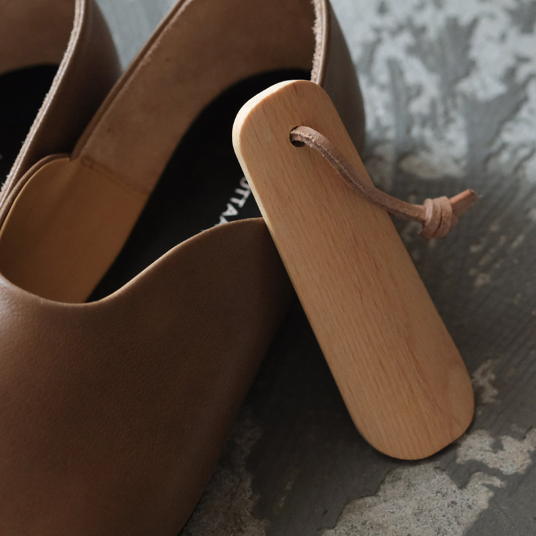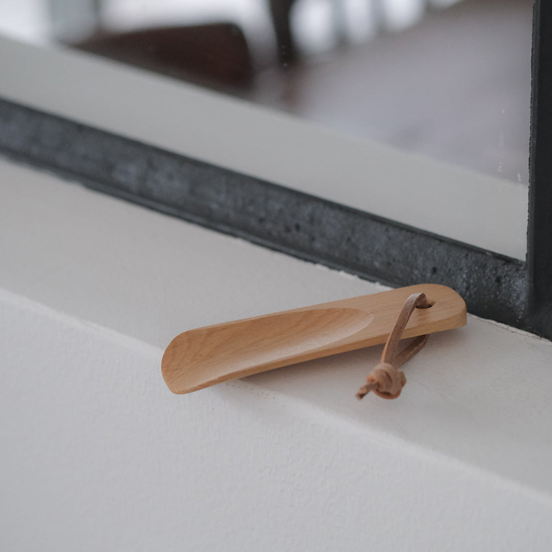 靴べらの素材は、ブナ。木の表情を活かした自然な仕上がりで、使っていくうちに深い色合いに変化していきます。