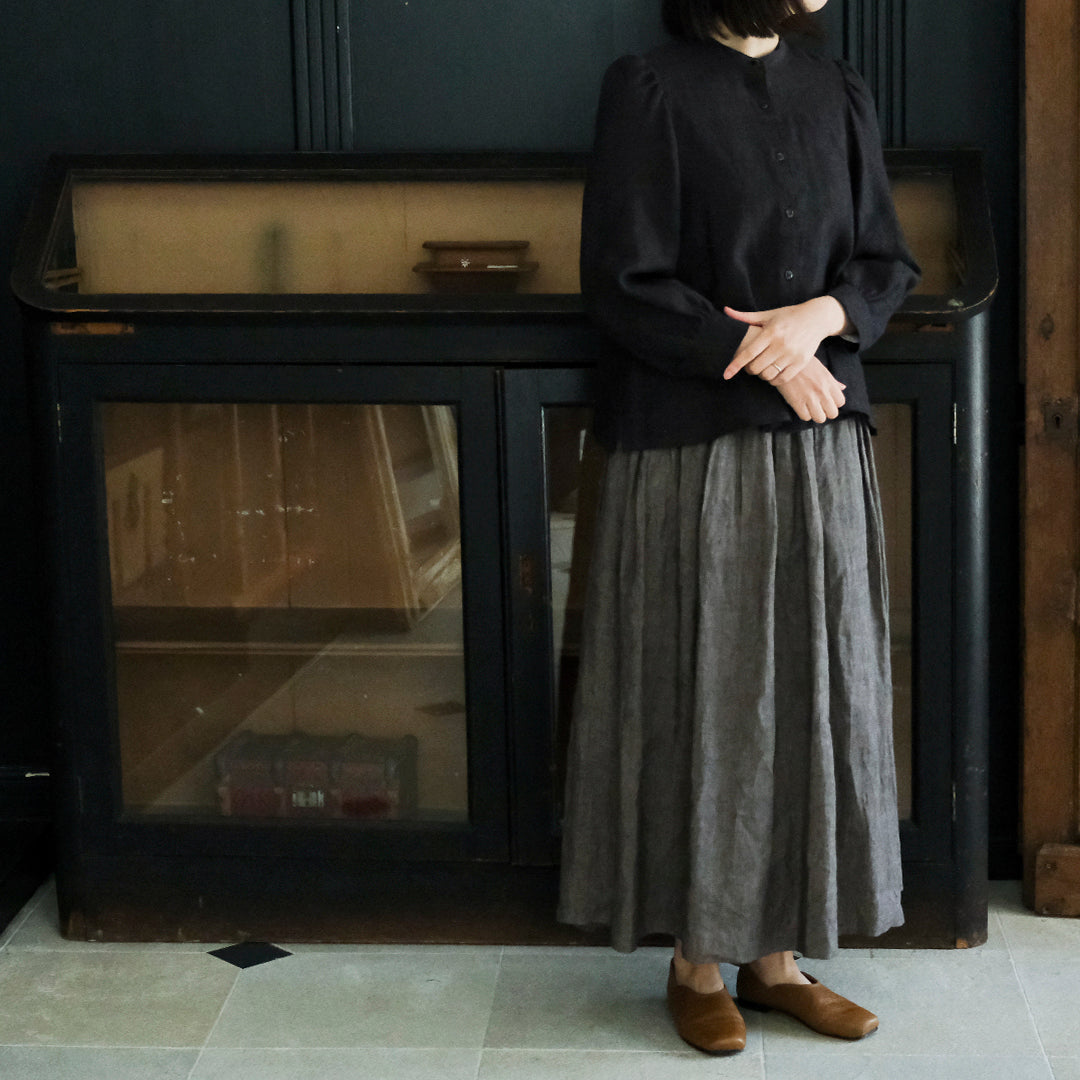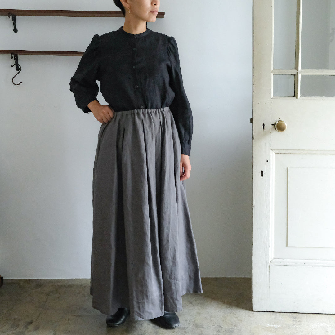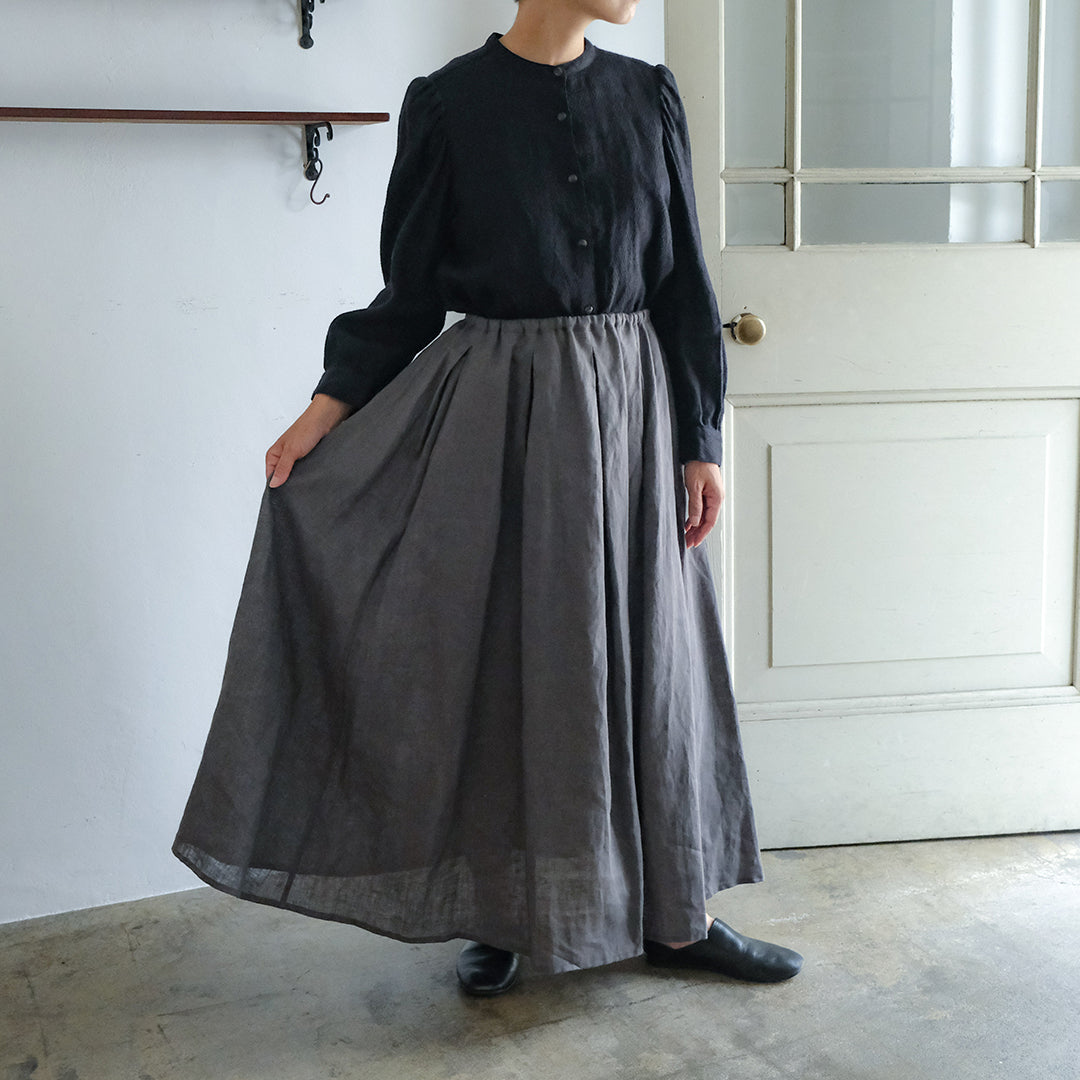 ▲スカート:[SALUÉ]リトアニアンリネンタックギャザースカート チャコールグレー(現在お取り扱いのないカラーです)
