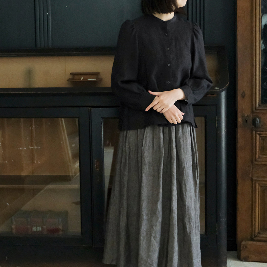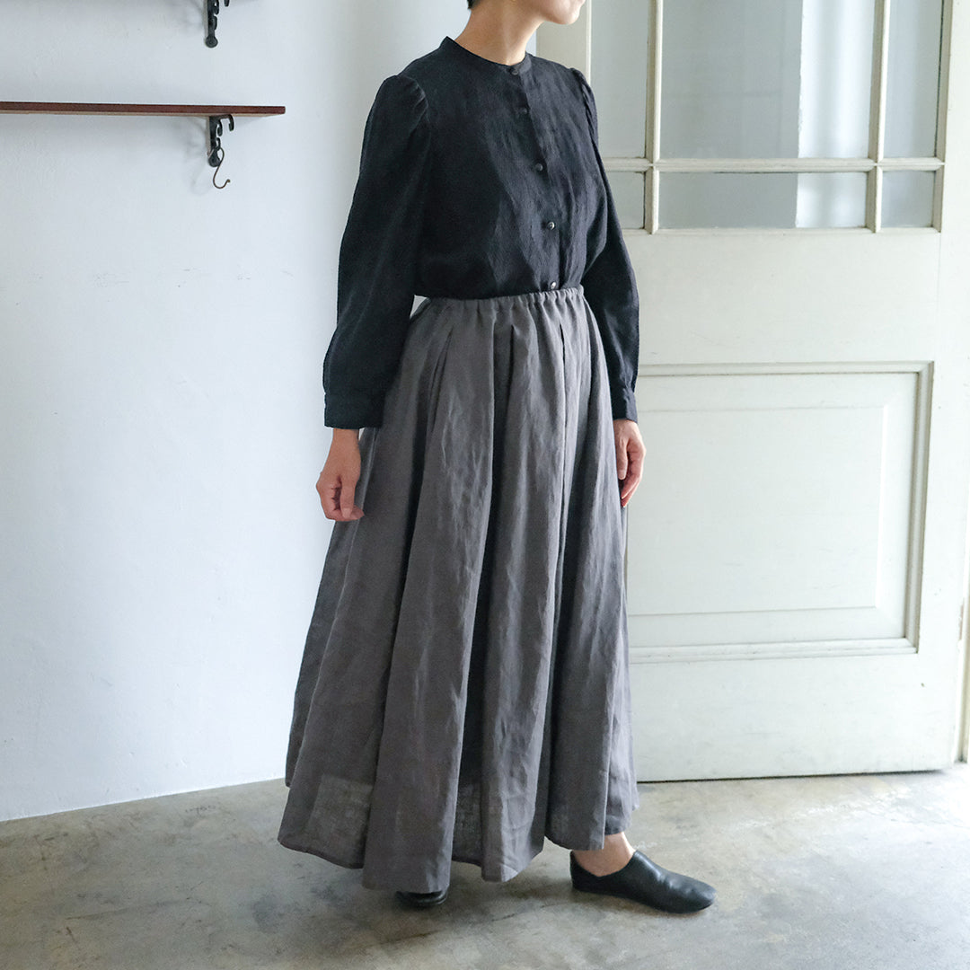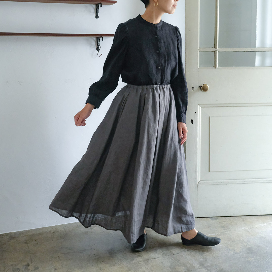 ▲スカート:[SALUÉ]リトアニアンリネンタックギャザースカート チャコールグレー(現在お取り扱いのないカラーです)