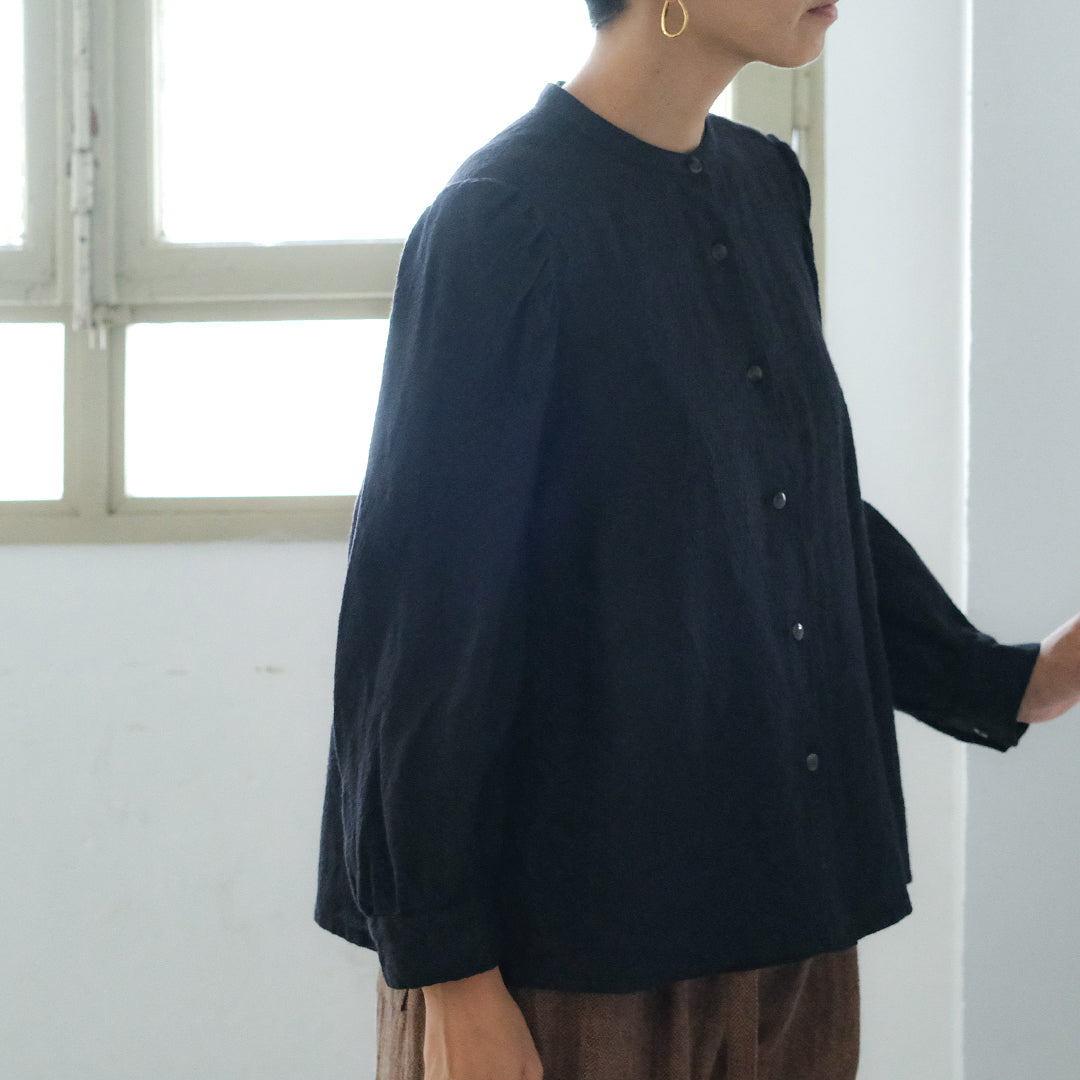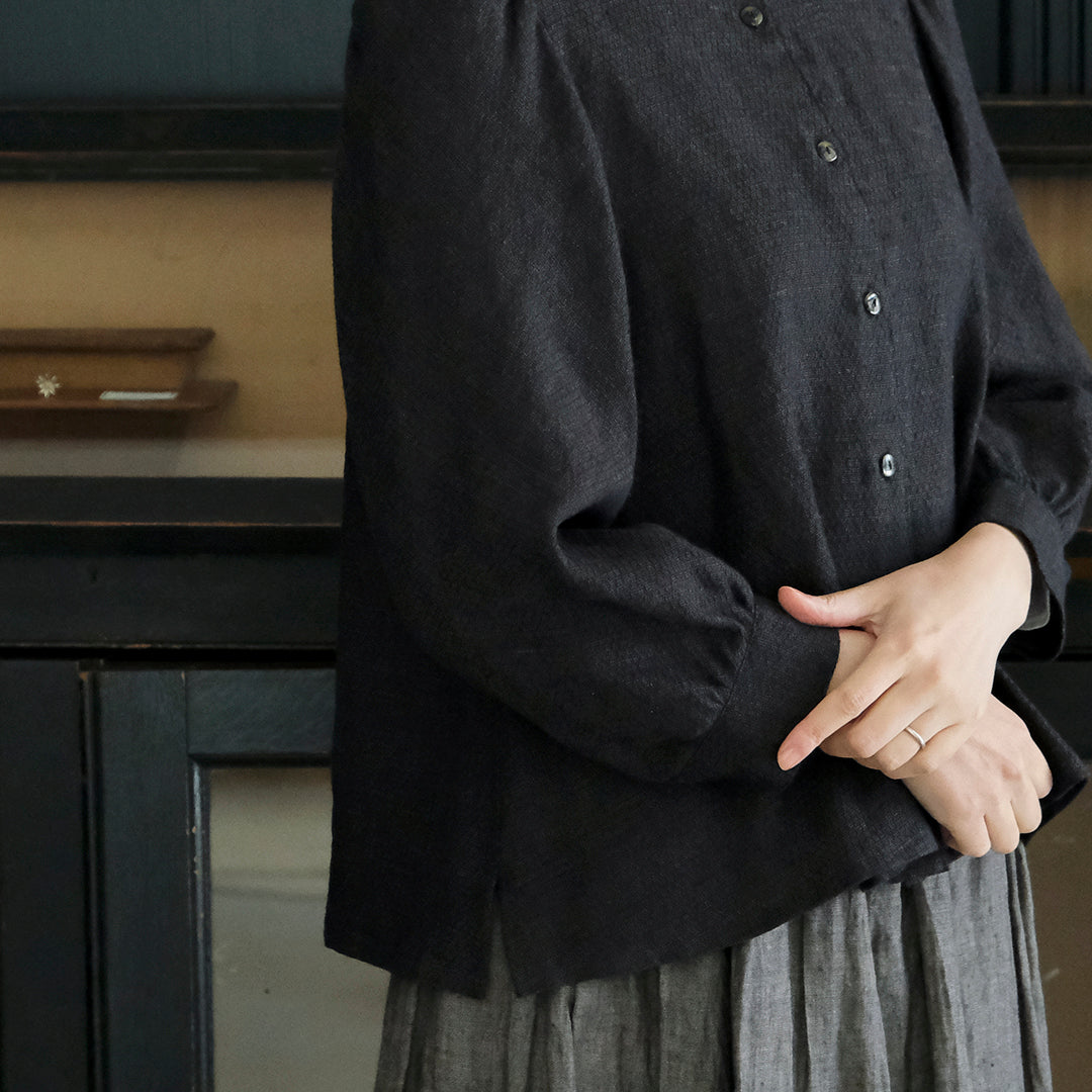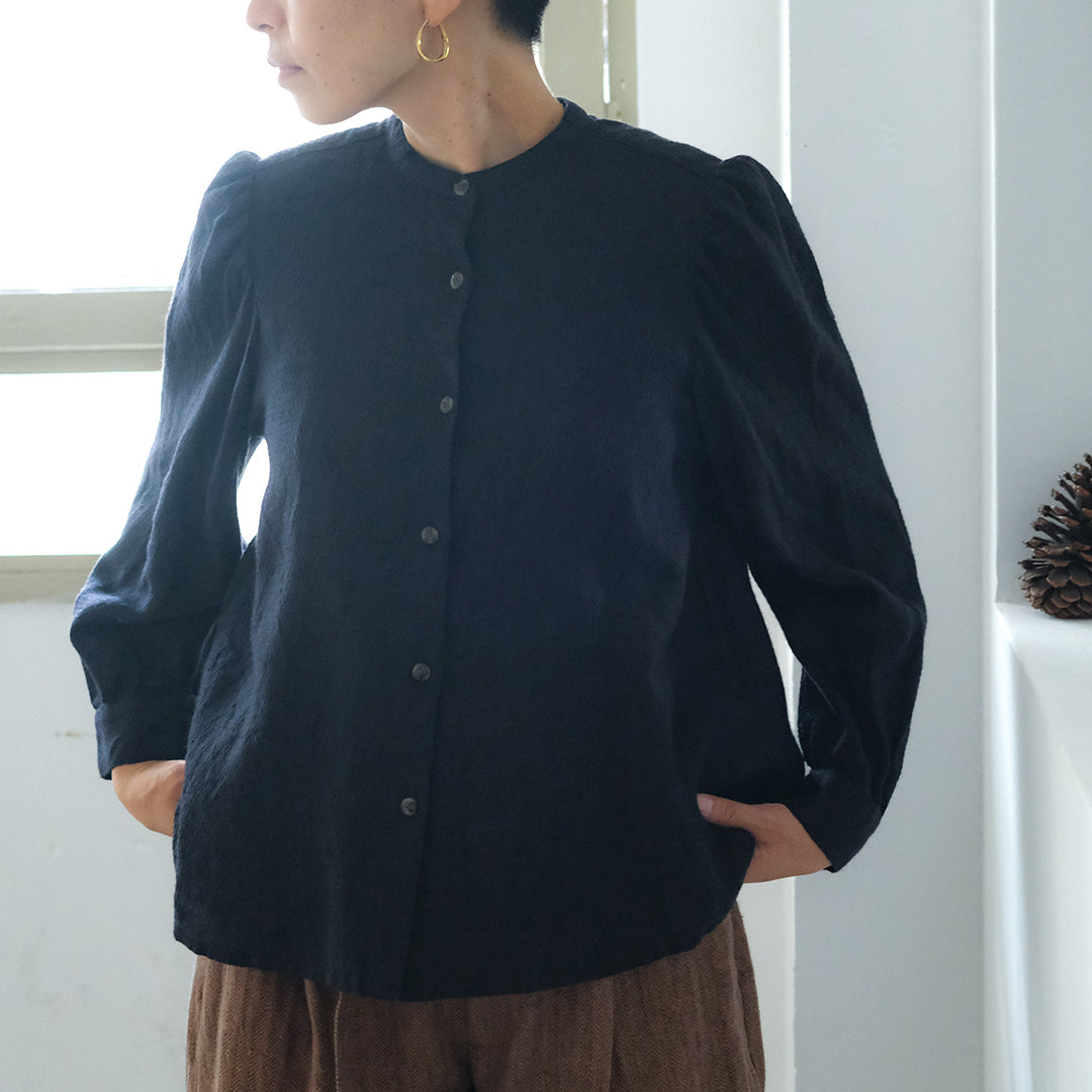 ・パフスリーブシャツは素材がリネン素材・コットン素材・ウールリネン素材と3種類あります。パターンはほぼ同じですが、リネンの方が素材の特性からやや大きめに感じられます。