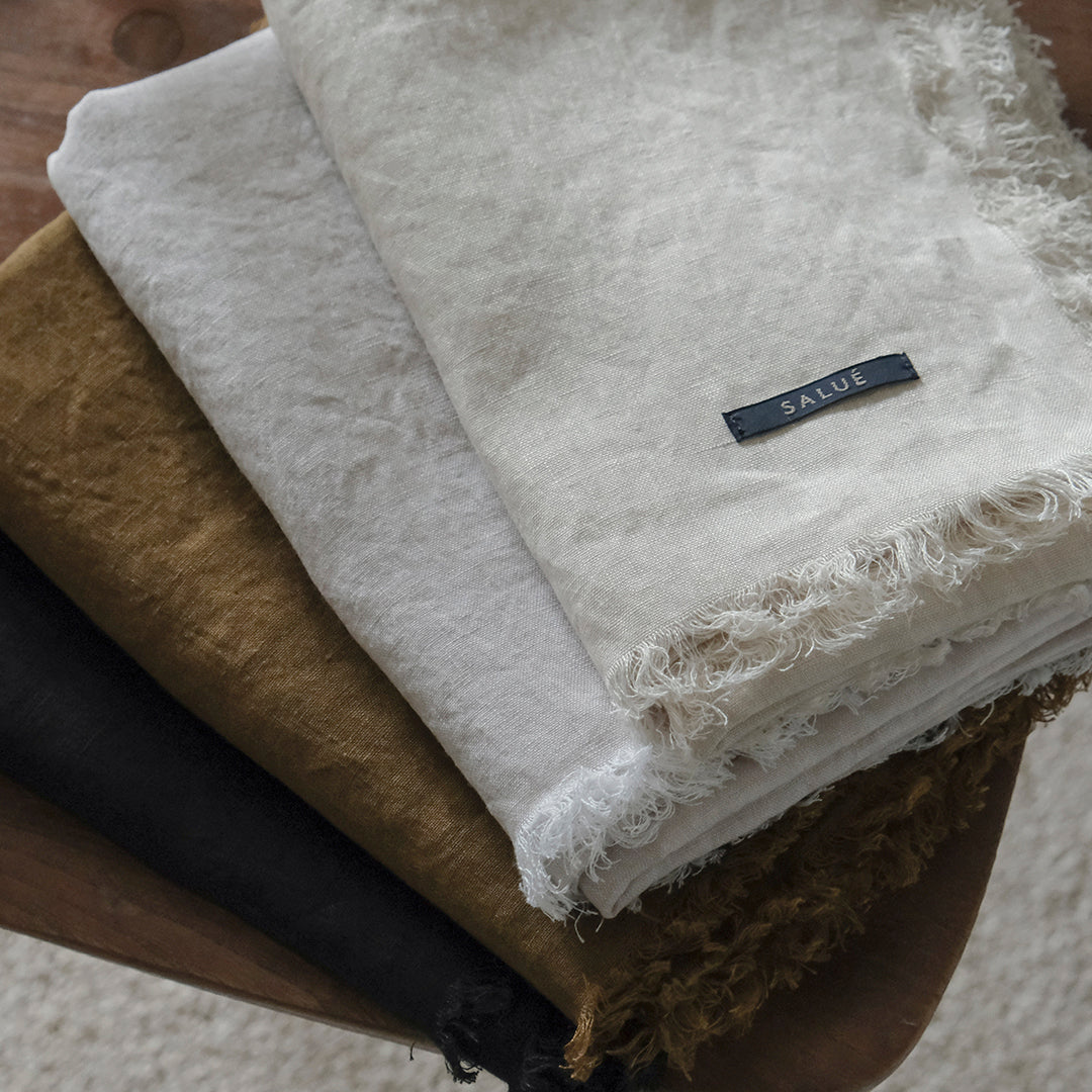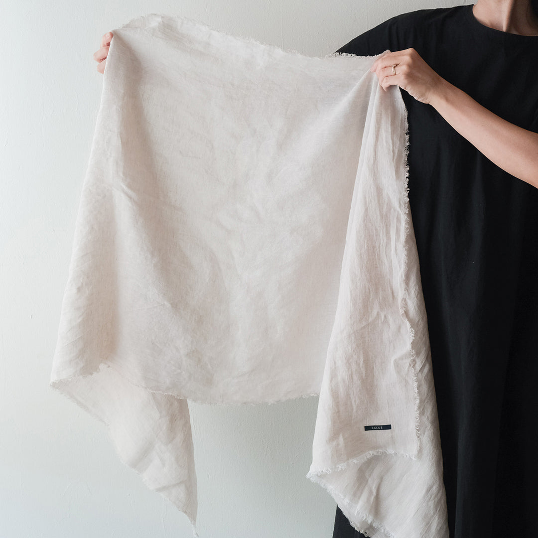 「SALUÉ(サルエ)」より、オリジナルのリネンで仕立てたストールをご紹介します。