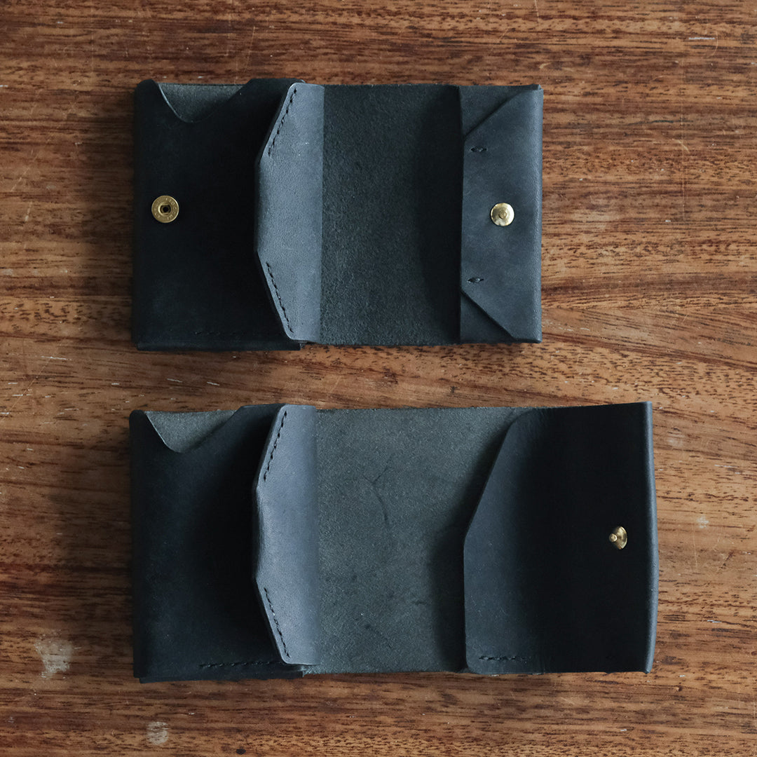 「薄さを追求し何枚の革が重なるかを重視、製作の合間に試作を繰り返しては使い心地を確認すること1年以上の時を経て完成となりました。