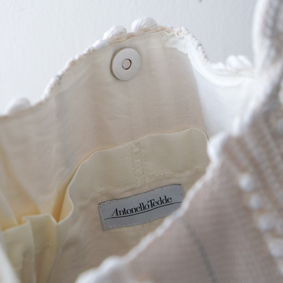 Antonello Tedde(アントネッロ テッデ)より、イタリア・サルデーニャ島でつくられる手織り生地を使ったバッグをご紹介します。旅先やお出かけ、ちょっとした場面のコーディネートに存在感を添えるミニバッグです。