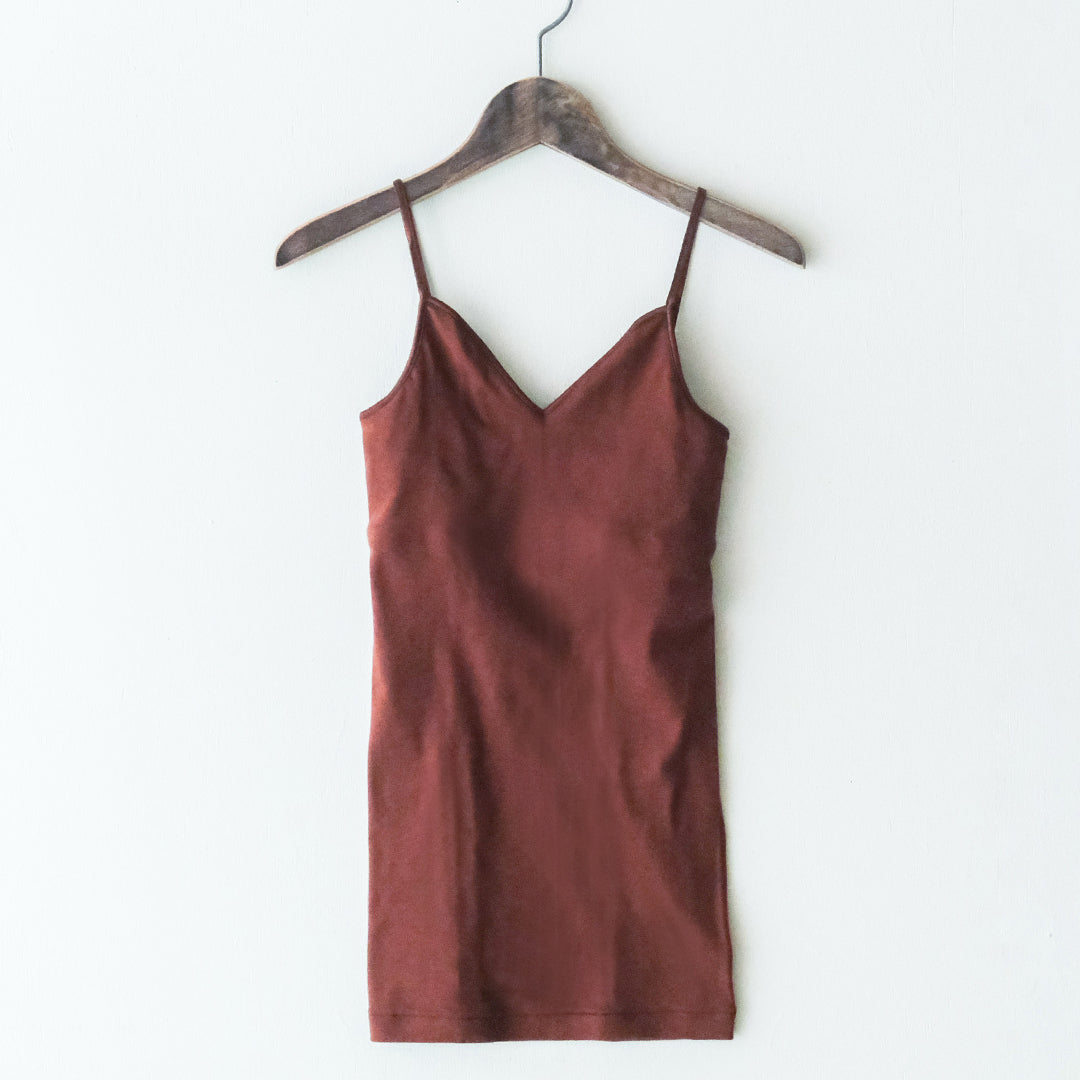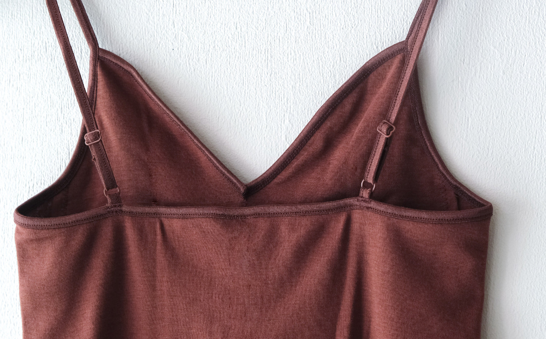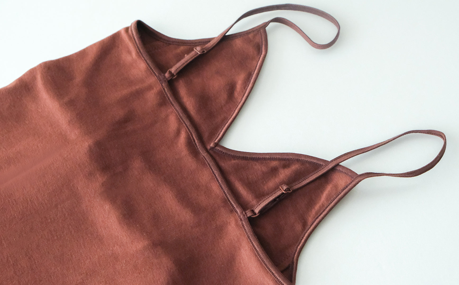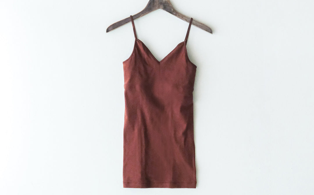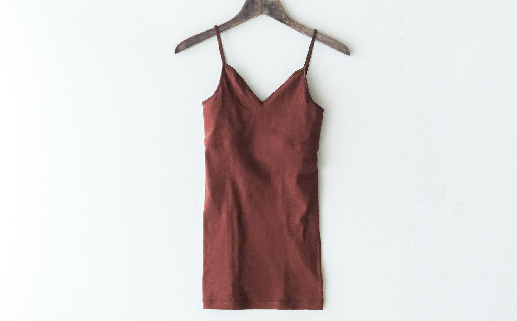 パッド入りのブラパッドキャミソールは1枚でインナーとして完結。夏の薄着になる場面でも、冬の重ね着が多くなる時期にも重宝します。