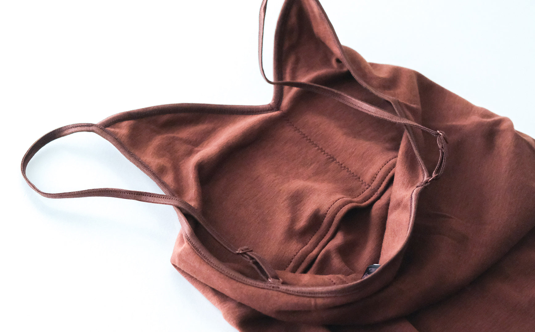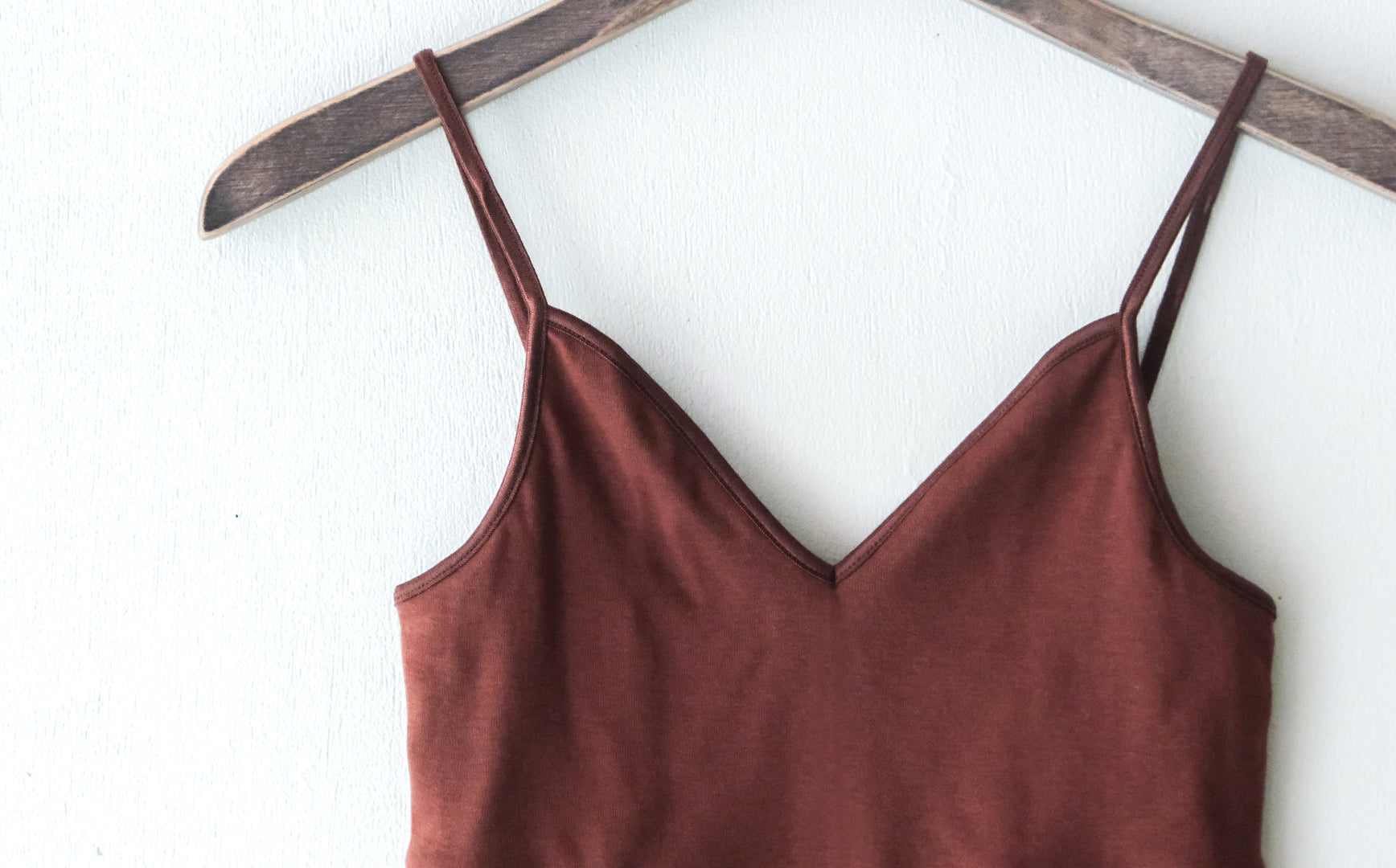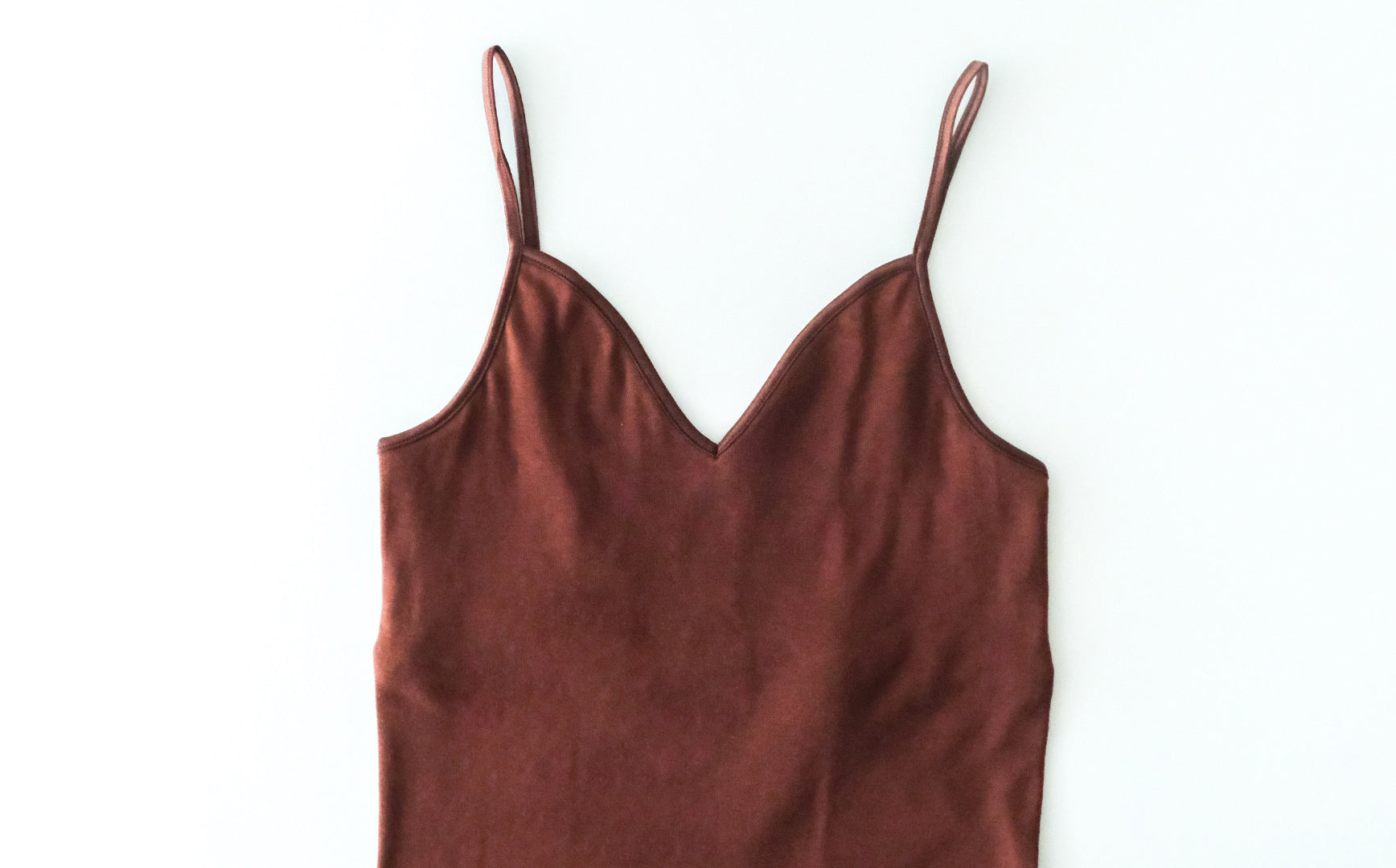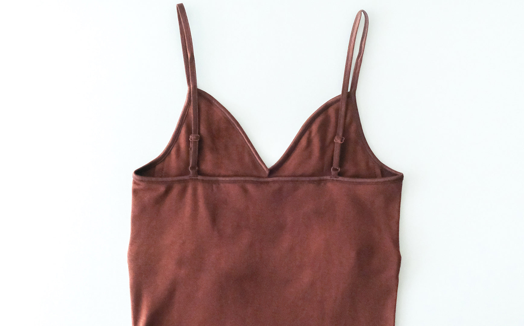 パッド入りのブラパッドキャミソールは1枚でインナーとして完結。夏の薄着になる場面でも、冬の重ね着が多くなる時期にも重宝します。