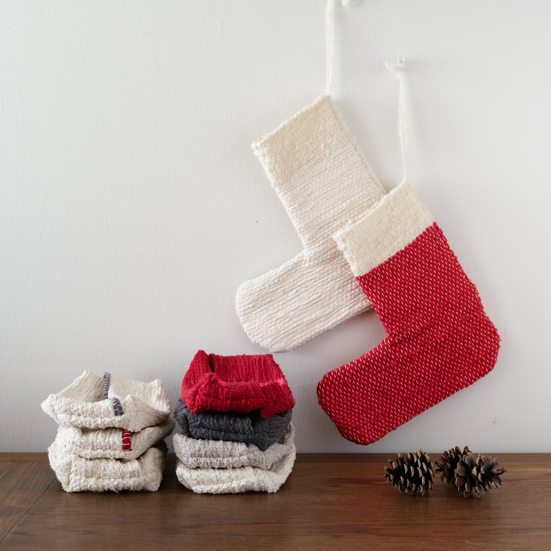 クリスマスと言えば、大きな靴下。tatetoyocoの裂きポコソックスは、クリスマスが待ち通しかった、なつかしい気持ちを思い出させてくれるアイテムかもしれません。