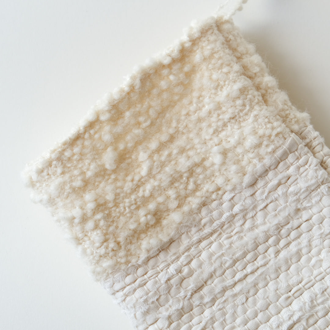 緯糸:ミルキーホワイトcotton100%、生成りポコ wool100 経糸:cotton100%