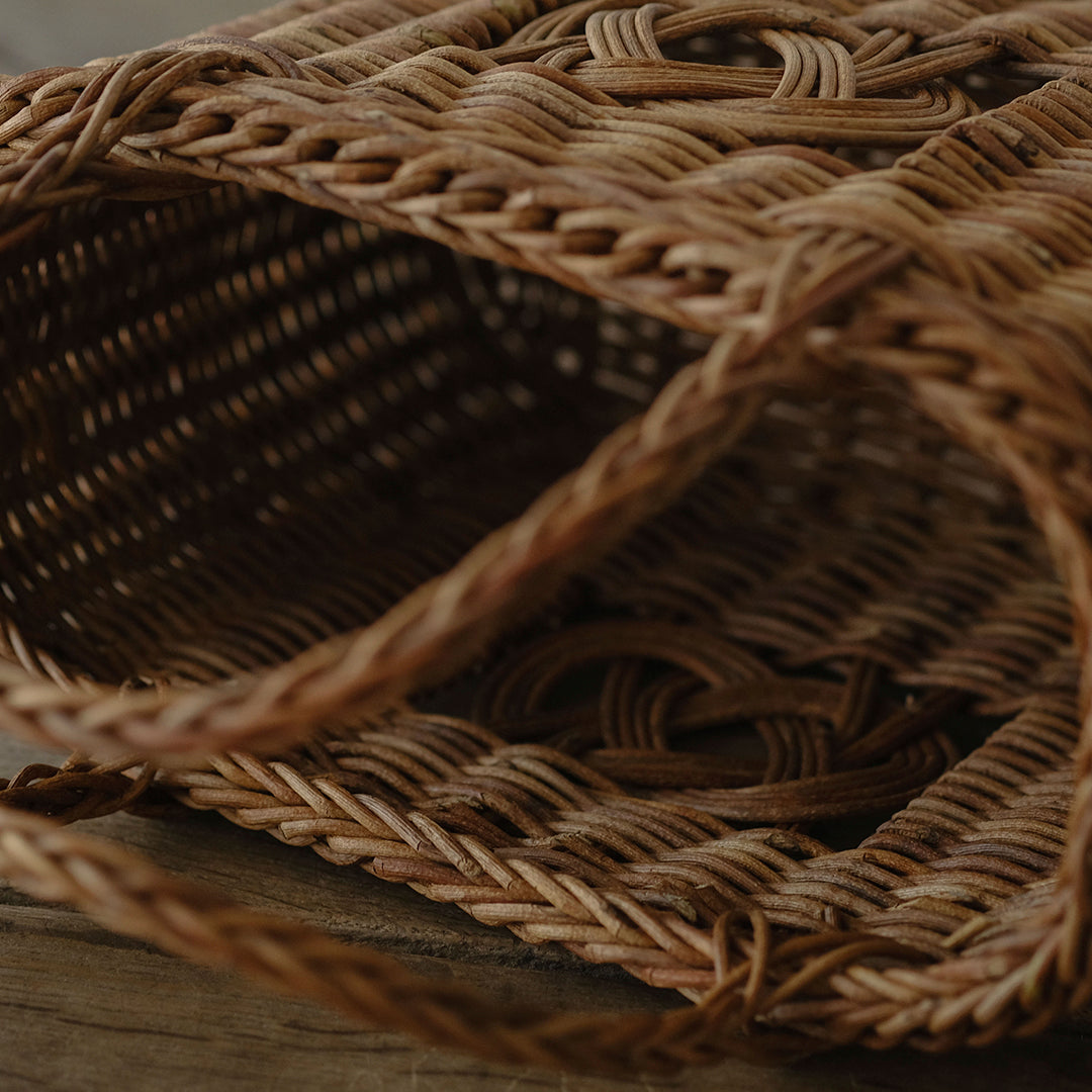 工程には長年培ってきた技術が詰まっており、素材を活かしたシンプルで上品なかごは親子何代にもわたってお使いいただけます。