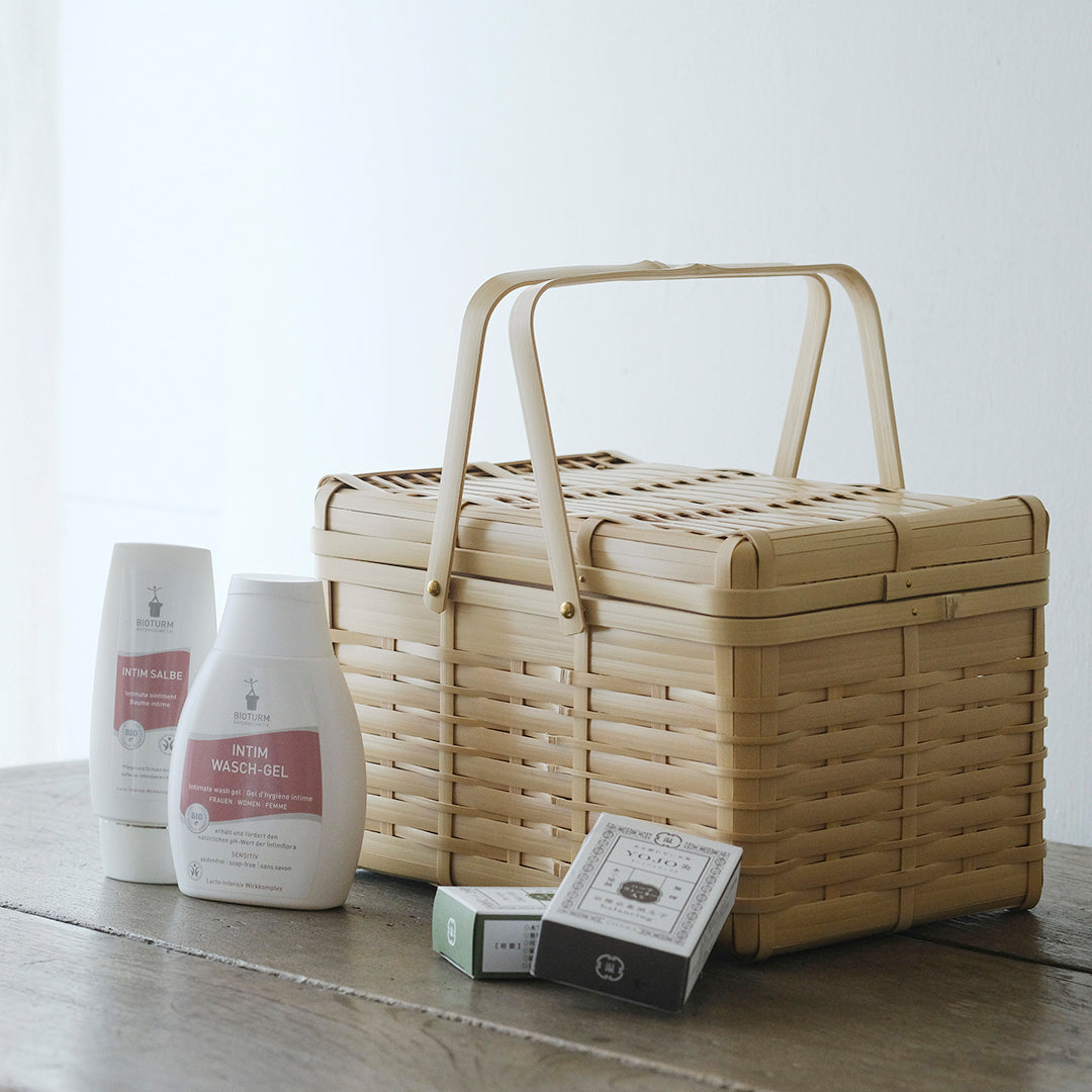 かごは水洗いもできるそうですが、その場合には水染みが残る可能性や形が丸みを帯びることがあります。また、水洗い後はよく乾かしていただくようお願いします。