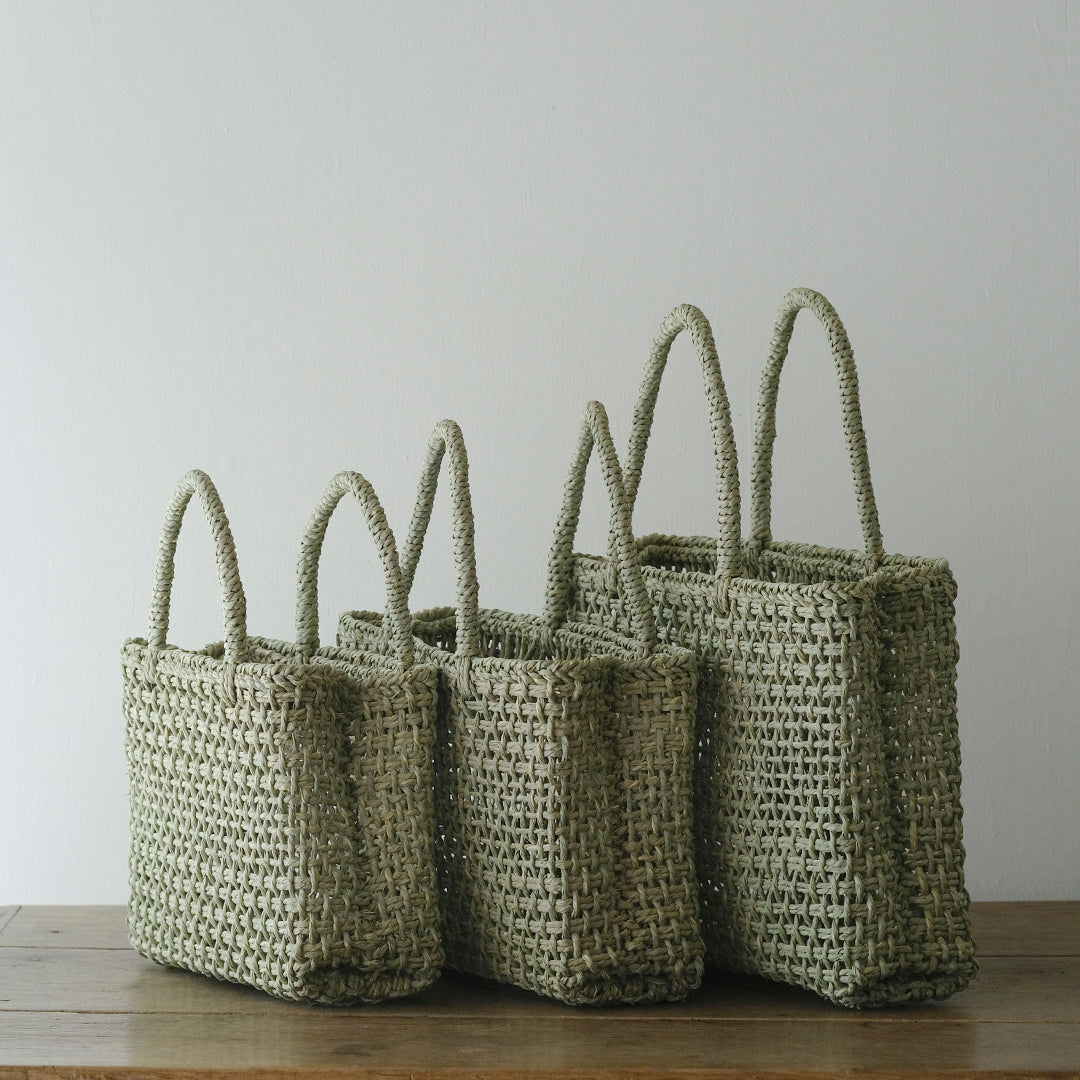 サイズ:大約W38×D10×H30cm(持ち手含むH約H48cm)、中約W33×D10×H27cm(持ち手含むH約44cm)、小約W30×D10×H23cm(持ち手含むH約37cm)