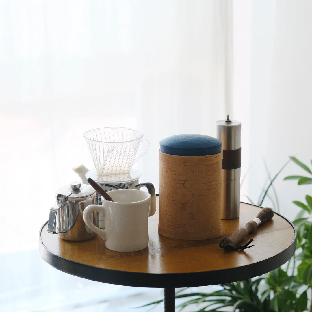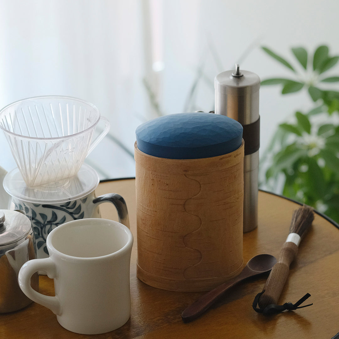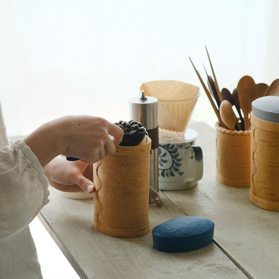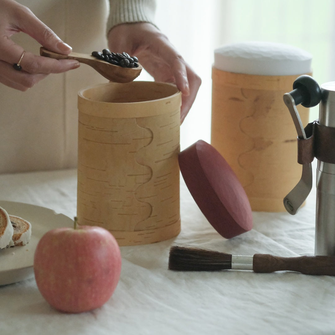 白樺は、抗菌性と湿気を通しにくい性質を持っています。しっかりと密閉されているキャニスターは、直接コーヒーやお砂糖、小麦粉などの粉物を入れてお使いいただけます。▲約200gのコーヒー豆がしっかりと入りました