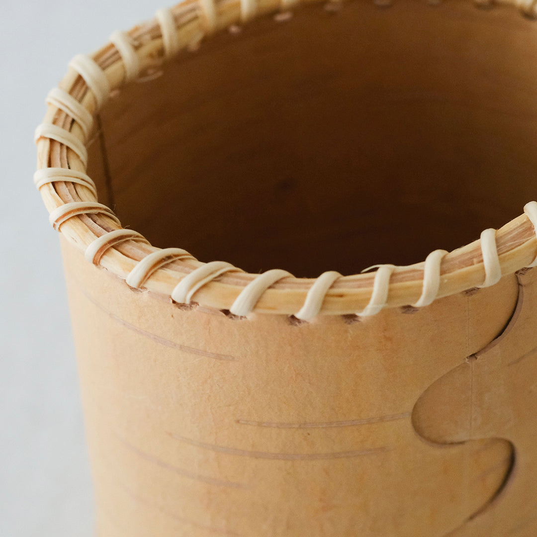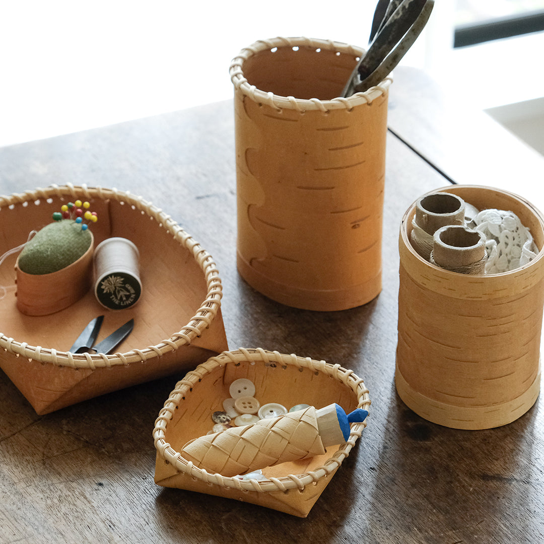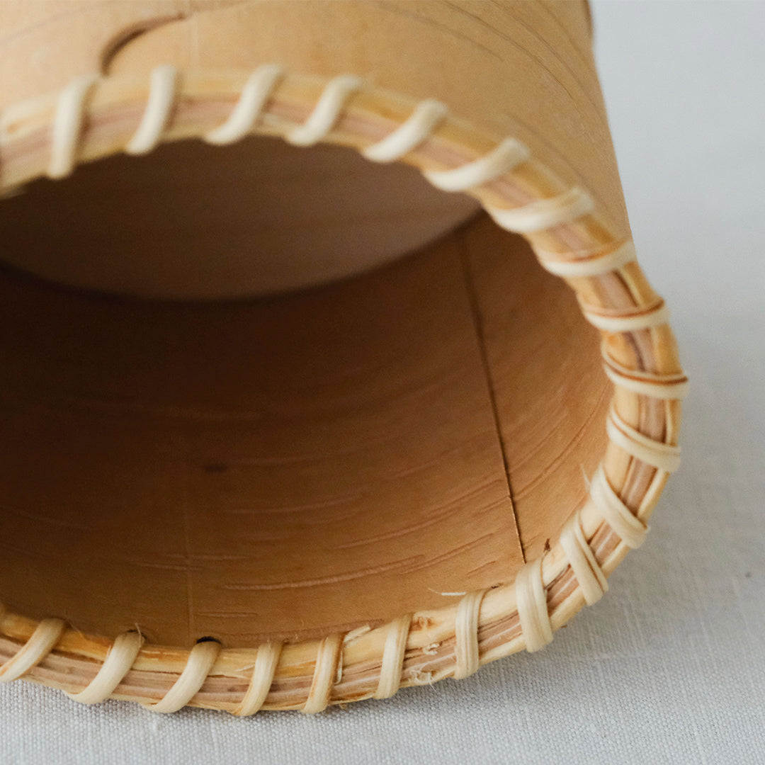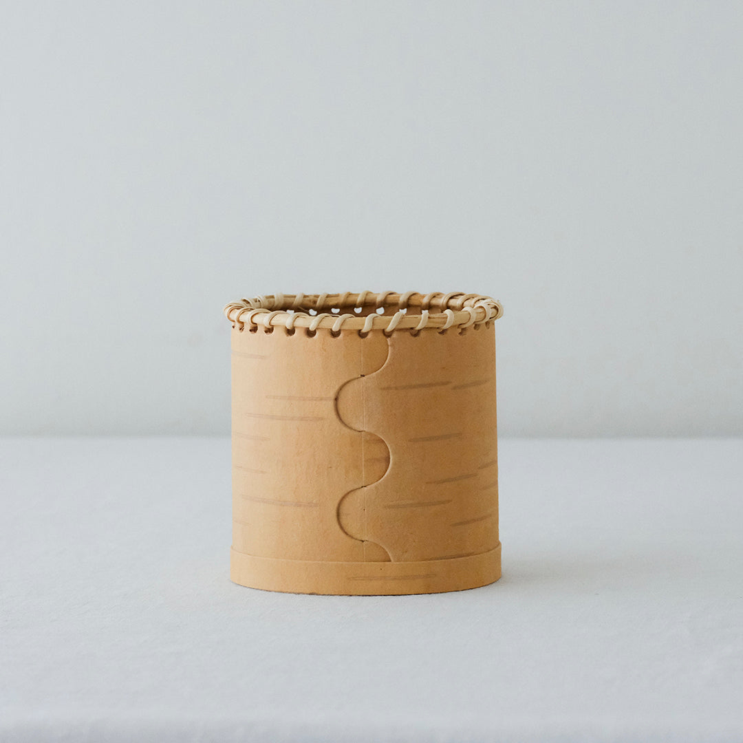 小さな動物がひょっこりと顔を出しそうな、白樺樹皮でつくられたやさしい雰囲気のお道具立て。森の中から借りてきたかのような自然の恵みが感じられます。▲中S