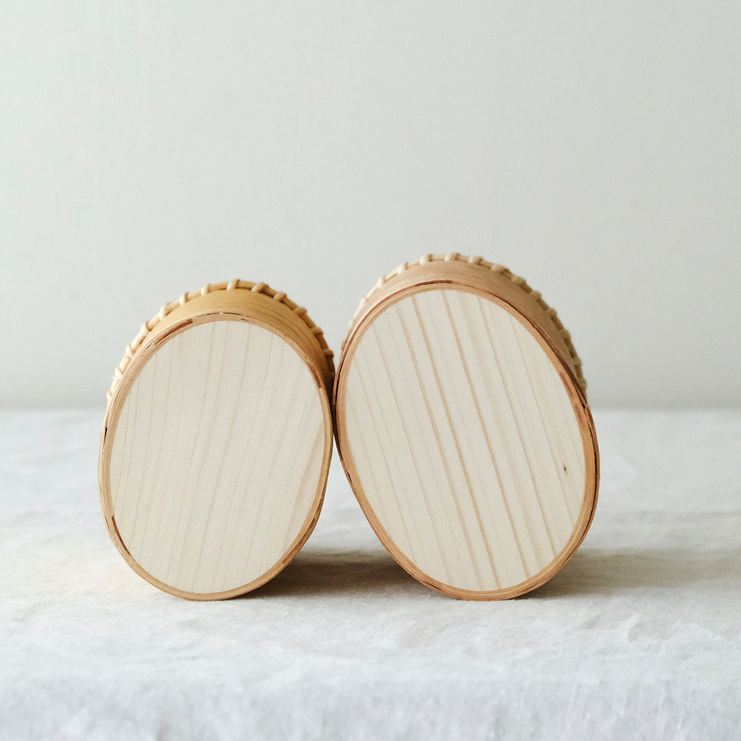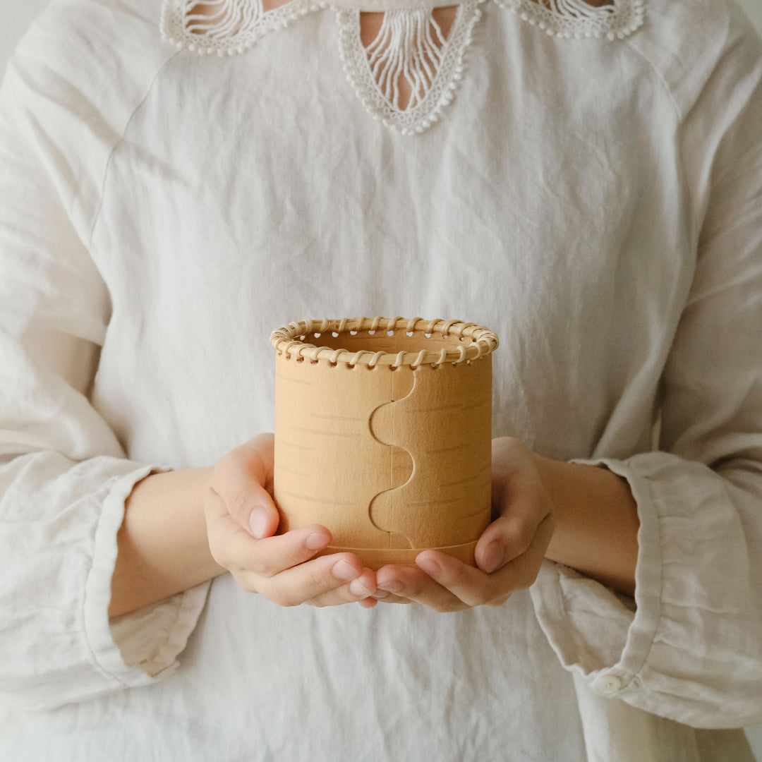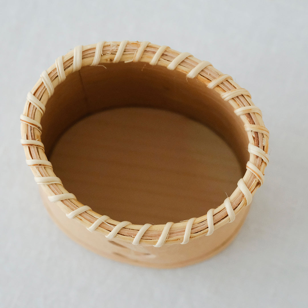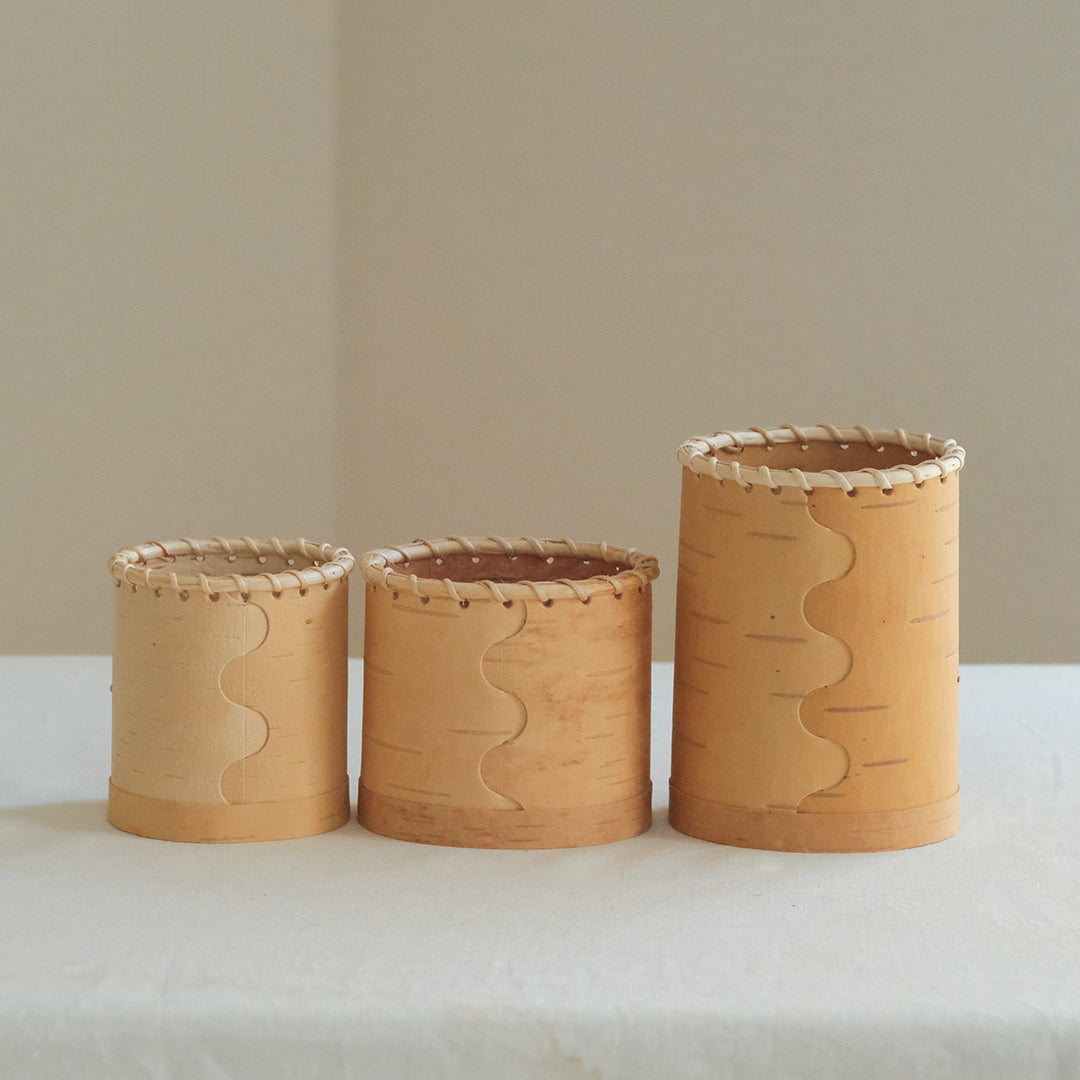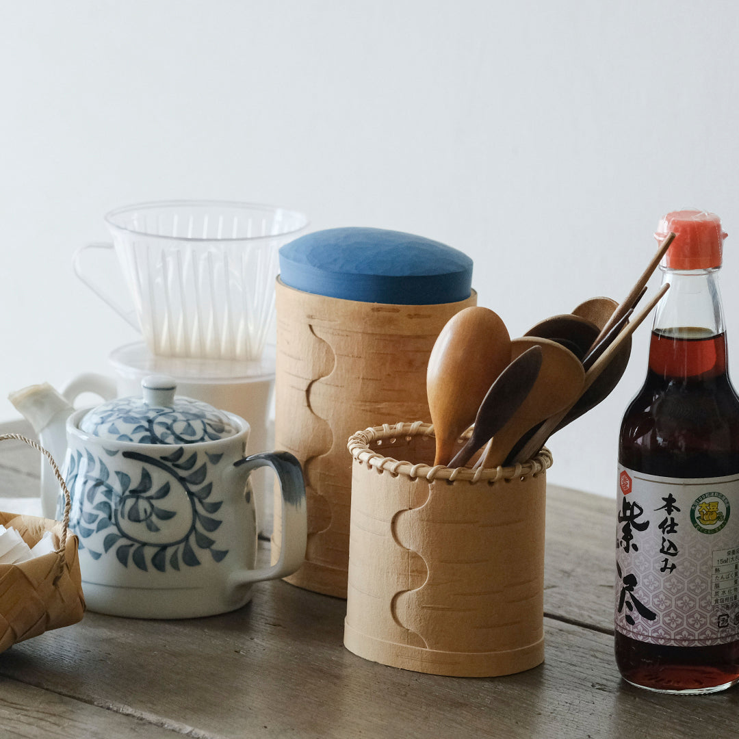 小さな動物がひょっこりと顔を出しそうな、白樺樹皮でつくられたやさしい雰囲気のお道具立て。森の中から借りてきたかのような自然の恵みが感じられます。▲中S